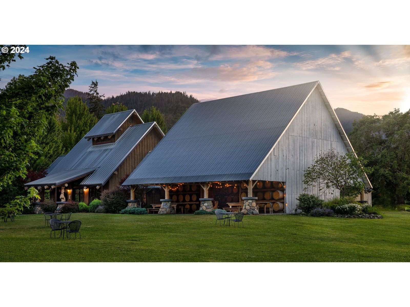 Welcome to Red Lily Vineyards, one of the most acclaimed vineyards in the esteemed Applegate Valley of Southern Oregon. Renowned for its exceptional wines and captivating scenery, Red Lily Vineyards presents an alluring mix of established wine and agri-business with great opportunities for event and hospitality expansion. It's not just a business; it's a gateway to an extraordinary experience and a haven for those seeking a rare and sought-after investment and lifestyle opportunity. This 255-acre ranch and estate boasts strong water rights, breathtaking river frontage, a state-of-the-art winery, mature vineyards, and an expanses of quality irrigated land for vineyard and agricultural expansion plus perhaps the most iconic and well-trafficked wine tasting experience in Southern Oregon. Nestled atop a secluded knoll, commanding picturesque views of the Applegate Valley, is the main residence, a quintessential American cedar shingle-style home boasting over 4,000 square feet of living space. The second home, known as the winemaker's house, is a delightful farmhouse that has been thoughtfully updated. With its well-established reputation and a wealth of infrastructure, Red Lily provides an excellent platform for business expansion. This includes options for expanding vineyard and agri-business operations, developing a hospitality business with a focus on events such as destination weddings, as well as on-site accommodations like bed and breakfast and cabin rentals. An additional estate dwelling and farm-to-consumer sales are also relevant opportunities. This rare gem offers an unparalleled setting with 3,300 feet of Applegate River frontage and convenient access to incredible outdoor activities. The phenomenal location is a short commute from all the conveniences of Jacksonville and Medford and is centrally located within Southern Oregon. The offering is a hybrid sale that includes the business, brand, and real estate. Owner terms may be available. Thank you!