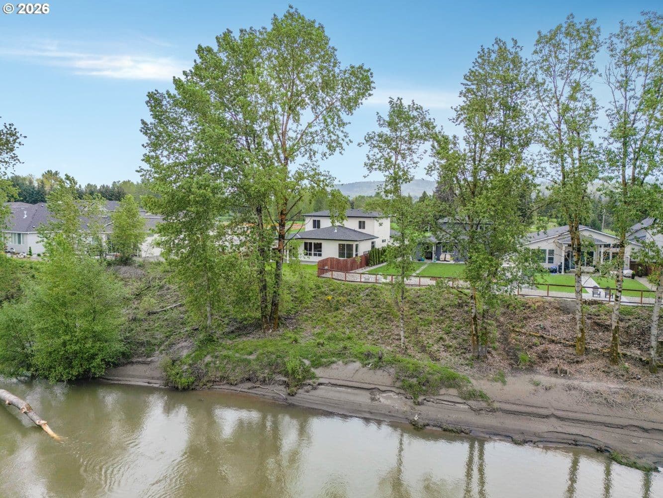 Set along the scenic banks of the Cowlitz River, this home offers a rare blend of luxury, comfort, and Pacific Northwest beauty. This exceptional riverfront property boasts direct access to the serene waterway and enjoys prime frontage along the picturesque Three Rivers Golf Course, creating a truly tranquil and private setting. Inside, the home is thoughtfully designed with both elegance and functionality in mind. The kitchen is a standout feature, showcasing beautiful custom cabinetry with built-in enhancements, a gas cooktop, micro-oven combo, and a convenient eat bar—perfect for both everyday living and entertaining. Subtle brass accents throughout add warmth and sophistication. The main level hosts a spacious primary suite, offering ease of living with a spa-like bathroom complete with an oversized walk-in shower and a luxurious soaking tub. An additional office space on the main floor provides flexibility for remote work or creative pursuits. The inviting living room features custom built-in shelving and a cozy gas fireplace, creating a welcoming atmosphere year-round. Dual laundry areas on both upper and lower levels add convenience for multi-generational living or guests. Step outside to a beautifully manicured backyard designed for relaxation and enjoyment. A covered patio provides the perfect space for outdoor dining or unwinding while taking in the peaceful surroundings, while the lush, well-maintained lawn enhances the home’s overall curb appeal. With its unique combination of river access, golf course frontage, and high-end interior features, this property offers a lifestyle that is both refined and effortlessly connected to nature.
