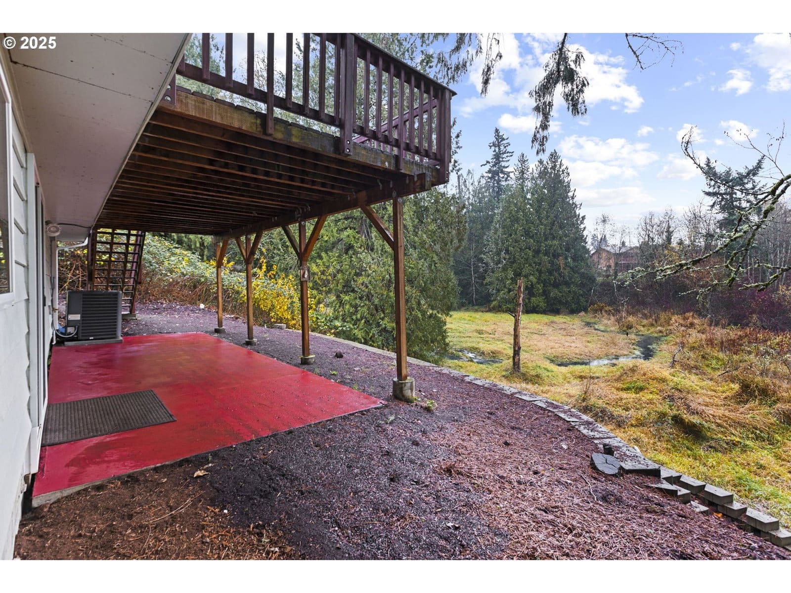 Discover serene living in this daylight ranch, perfectly situated at the end of a quiet cul-de-sac on over half an acre. This rare setting backs to a beautiful wooded natural area with a creek, abundant wildlife, and peaceful views in every season. Step inside to dynamic main-level living featuring a spacious family room, 2 bedrooms and 2 bathrooms, plus a bright kitchen and access to the expansive deck overlooking the trees. The daylight basement adds exceptional flexibility with a bonus room, 2 additional bedrooms, and a full bathroom—ideal for multi-generational living, guest quarters, supplemental family space, or potential short- or long-term rental income, including Airbnb. Enjoy effortless indoor-outdoor entertaining from either the main-level deck or the lower-level patio, both designed to take full advantage of the stunning natural backdrop. A hobbyist’s dream, the property includes an attached workshop with extensive storage and shelving, along with a detached full-size matching shed featuring dual entrances and abundant space for tools, equipment, or creative projects. Relax, unwind, and enjoy daily visits from birds and wildlife in this truly one-of-a-kind home & setting. [Home Energy Score = 4. HES Report at https://rpt.greenbuildingregistry.com/hes/OR10242843]