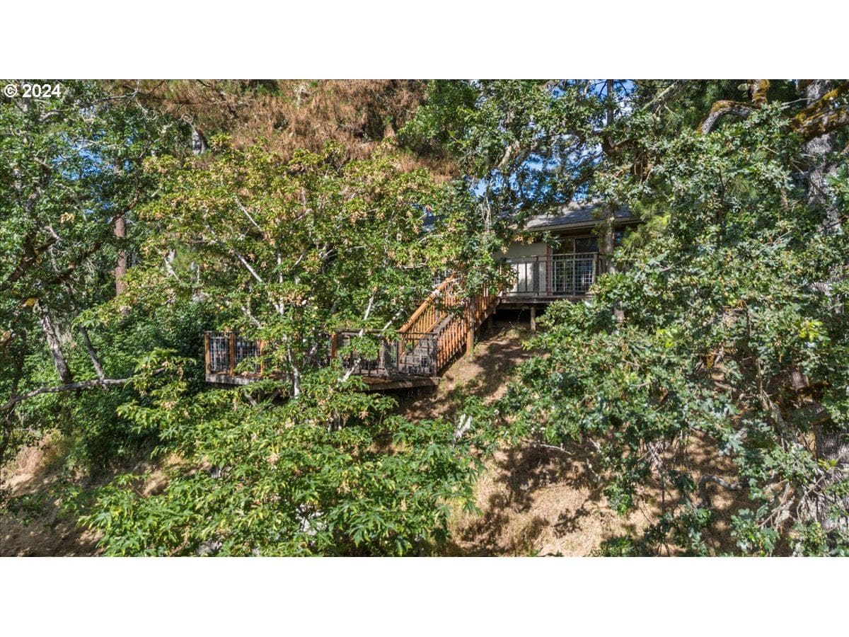 Gardener's Paradise with Stunning Views! 3 Bed + Office/2 Bath private retreat above the South Umpqua River! This beautifully updated ranch-style home sits on over 4 wooded acres filled with manicured gardens, terraced landscaping and peaceful walking trails — perfect for nature lovers, hobby gardeners, or those seeking tranquility. The interior boasts spacious and light-filled rooms with large windows and glass doors that bring the outdoors in. Gorgeous, updated kitchen with granite countertops and modern finishes. Multiple living spaces including Dining Room, Living Room with fireplace, Family Room with pellet stove, and a Great Room — ideal spaces for entertaining or spreading out. Phenomenal Primary Suite featuring heated floors, updated bath, and a slider to the private hot tub and gardens. A perfect setting for winding down at the end of a long day. Covered patio for year-round outdoor entertaining. The grounds offer extensive patios and decks to relax and soak in the peaceful surroundings. Woodshed, small workshop, and spaces available for expansion for your needs - a larger shop or animal enclosure possibly. Enjoy river views and the calming sound of nature all around you. Private and secluded, yet close to local amenities. High-speed fiber internet available through DFN. This home has been lovingly maintained and thoughtfully updated — you truly must see it in person to appreciate all it has to offer.