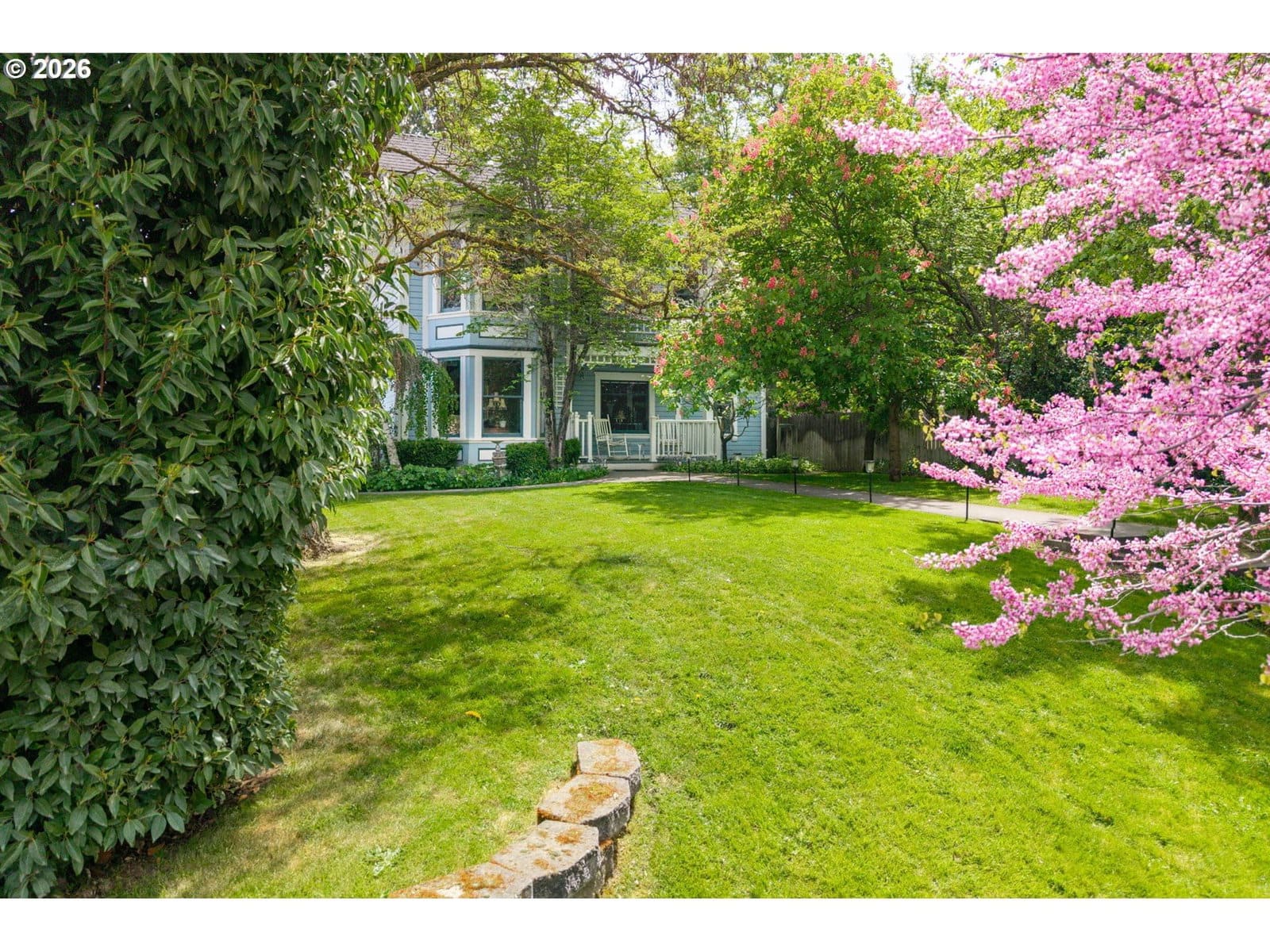Gorgeously remodeled Victorian blends historic charm with modern luxury in the heart of Ashland. R2 zoning offers versatile living: a gracious private residence, a home with Airbnb units, or a B&B with owner-occupied quarters. Once the beloved Midsummer Night's Dream B&B, it's now a private home with 2 vacation rentals in a stunning detached annex. The main house (2375 SF) features hardwood floors, a lovely living room with fireplace, parlor/game room, formal dining room, chef's kitchen, laundry room, & small office. Three luxurious suites are in the main home, with two more in the annex (1092 SF), each with a fireplace, spa bath, shower & a private deck. Expansive lush lawn with mature flowering trees & mountain views, creates a peaceful & picturesque setting. Unbeatable location near theaters, dining, & all that makes Ashland magical. Off street parking. Most furnishings included. An exceptional opportunity to live beautifully—and share it. Request income information & amenity list.
