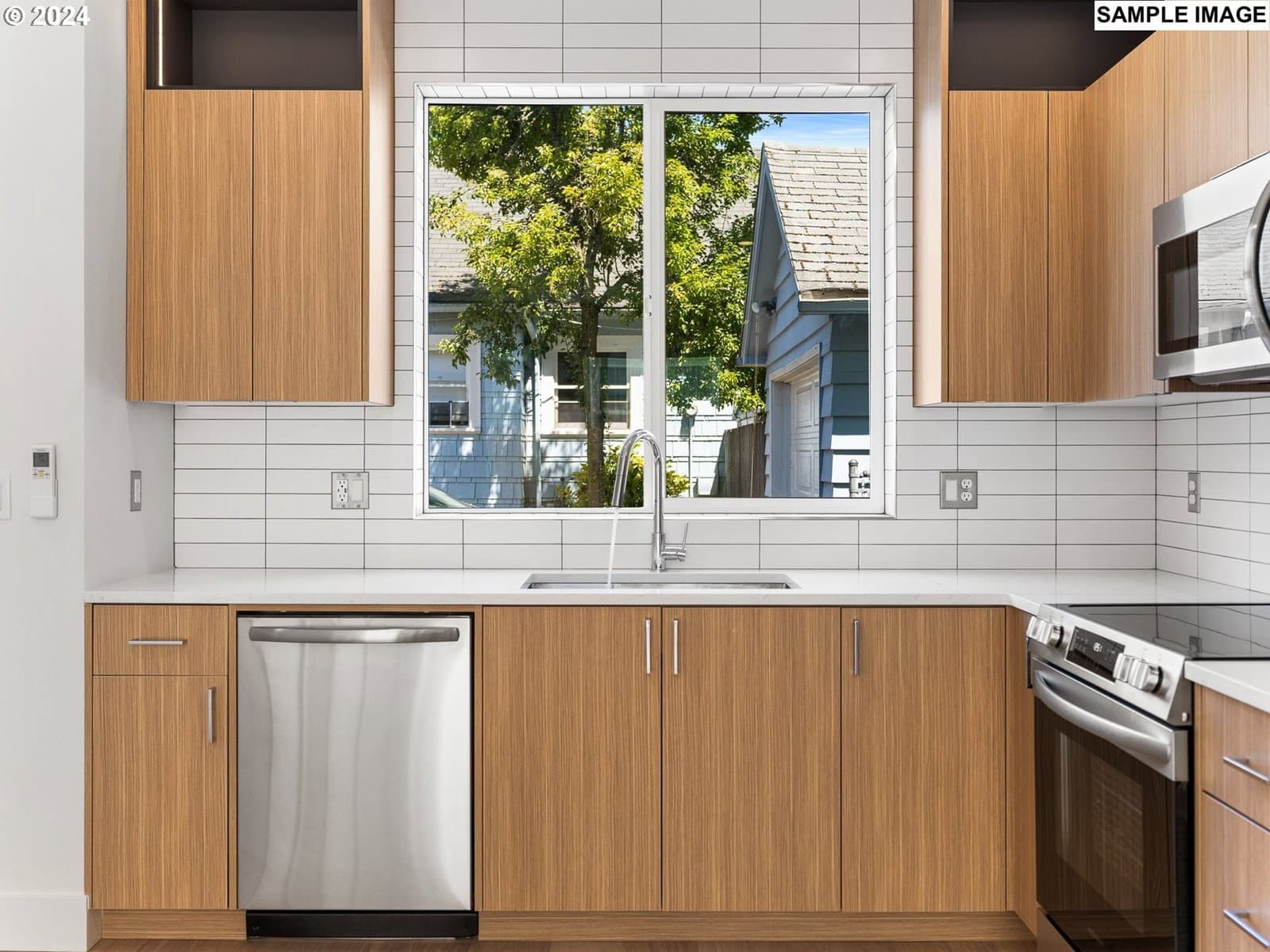 HOLTE available on this property - huge tax savings! Welcome to your dream home in a phenomenal location with a 92 BikeScore, just steps away from coffee shops, groceries, and more. This impeccably designed home captivates from the moment you enter. The kitchen is a chef's delight with warm cabinetry, intricate tilework, built-in features, and sparkling stainless steel appliances. The open concept floor plan seamlessly connects the kitchen to the dining and living areas, showcasing additional storage, a designer accent wall with built-ins, and ambient accent lighting. The lower level boasts a guest bath adorned in moody colors and exquisite tilework. Upstairs, the primary suite and spacious secondary bedroom feature perimeter lighting and are flooded with natural light through expansive windows and lofty ceilings. Outside, your private fenced yard with a patio invites relaxation and outdoor enjoyment. Located near Reed College and less than a mile from the popular Woodstock neighborhood, this home offers the perfect blend of modern luxury and convenience. Don't miss the opportunity to make this your own oasis in the heart of a vibrant community. Quality builder provides extended 2-10 warranty with sale! (List price is subject to the buyer qualifying for the Portland Housing Bureau HOLTE + System Development Charge exemption program to promote affordable housing in Portland, call for more info.)