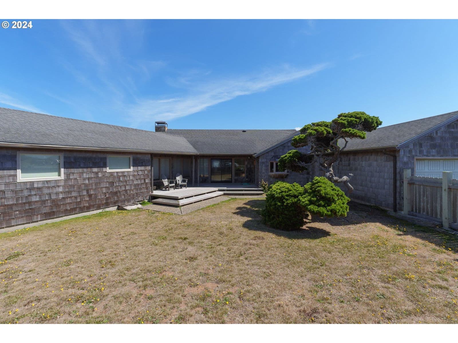 Step into your dream coastal home, where breathtaking views and luxurious comfort await. This exquisite 2174 square foot property with 3 BDR/2 BA features expansive floor-to-ceiling windows that frame the stunning coastline, allowing natural light to flood the spacious living areas and the primary bedroom. The cozy interior boasts a natural stone fireplace and rich wood paneling, and the kitchen flows effortlessly into the dining and living area, ideal for gatherings and daily living, a warm and inviting atmosphere perfect for both relaxing and entertaining. Indulge in your very own private sauna, offering an escape after a day at the beach or on the golf course. The home also includes a charming loft space, ideal for kids.Enjoy the convenience and privacy of a fenced-in side yard, perfect for outdoor activities, and a safe play area for pets and children. And wake up to the sound of waves and enjoy your morning coffee with a panoramic view of Bandon’s south jetty and Coquille River Lighthouse. Whether you’re hosting guests or seeking a peaceful retreat of your own, this home offers the perfect blend of comfort and elegance. Plus, Bandon Dunes Gold Resort is only a few miles north, and Old Town Bandon is just minutes away. Don’t miss out on this rare opportunity to own a piece of paradise.