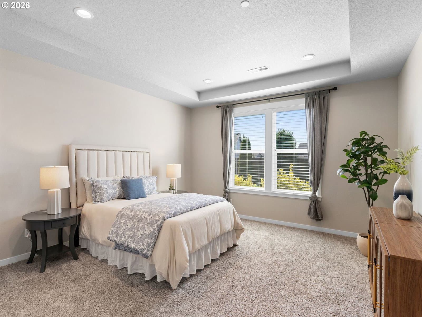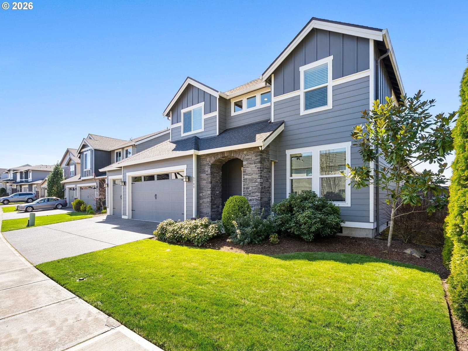 Beautifully maintained home in the charming community- Hills at Round Lake. Large corner lot, fully fenced with mature landscaping and sprinkler system. 4 bed, 2.5 bath, the open floor plan has oversized windows allowing natural light to pour inside and space for a full house. Den/office space, primary suite, and laundry are all conveniently located on the main level. Large primary suite bathroom boasts modern neutral tile, quartz counters and a soaker tub. Stainless steel appliances in the large open kitchen, along with quartz countertops and an oversized island. Upstairs has the remaining bedrooms along with great flexible space for you to make it your own. Trees and privacy in the large backyard, and a concrete patio for hosting family and friends for out door gatherings. This property is impeccably clean and has seen minimal use, making it a very attractive option for anyone looking for move-in-ready home.