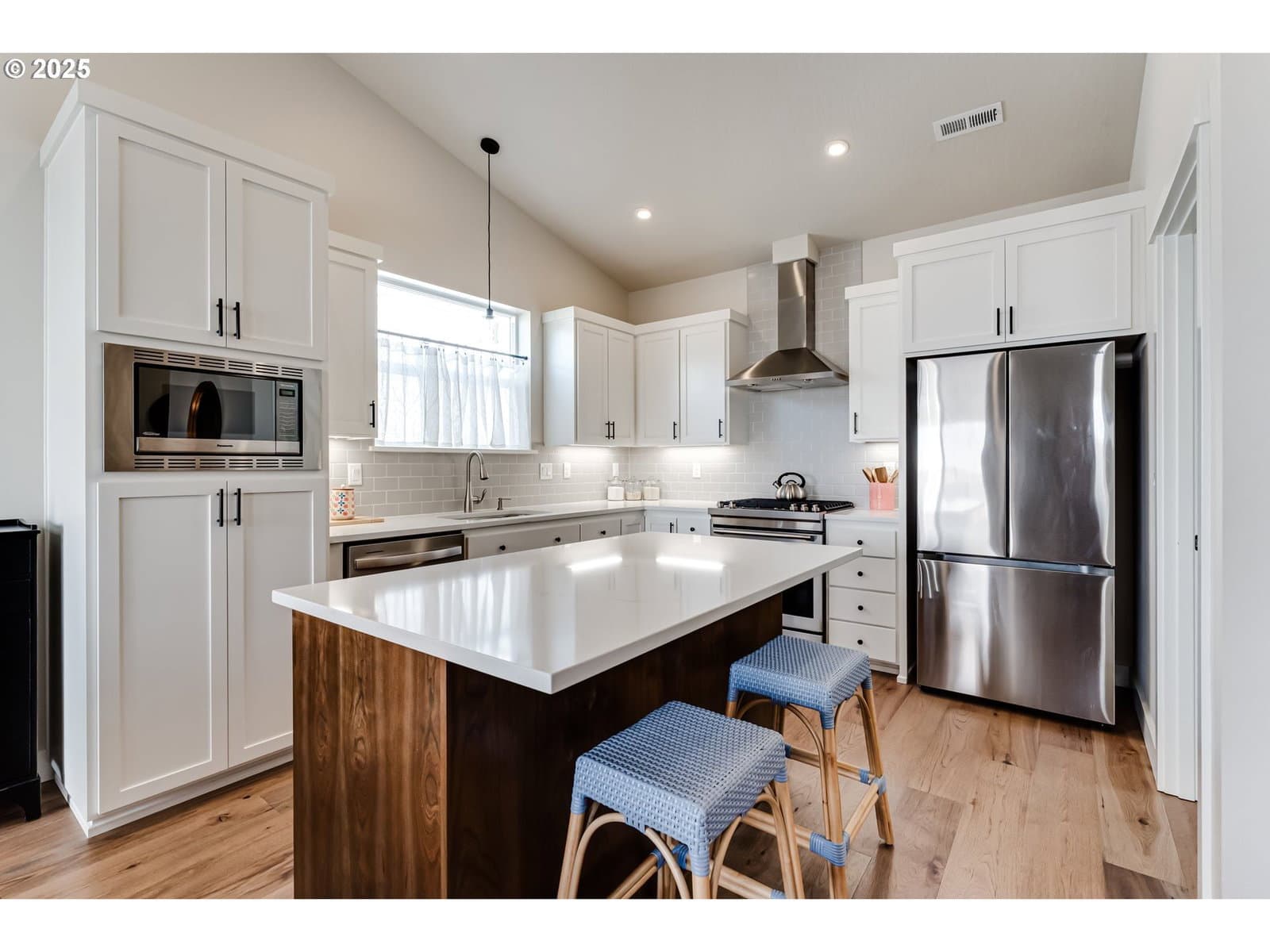 Welcome to this immaculate, move in ready, single level Bruce Weichert home located in the sought after Mountainvale Subdivision, ready for you to make it your own. Nestled on a quiet dead end street, this home offers peace, privacy, and a strong sense of community. You're welcomed by a charming covered front patio, perfect for enjoying your morning coffee.Step inside to soaring vaulted ceilings, warm pecan flooring, and an abundance of natural light that fills every corner of the home. The well appointed kitchen is thoughtfully designed with quartz countertops, stainless steel appliances, a gas range with an upgraded hood, and a large center island, ideal for cooking, hosting, and everyday living.The open concept living room includes a cozy gas fireplace, creating the perfect setting for entertaining or relaxing. The spacious primary suite features a walk in closet and a luxurious en suite bath with a fully tiled walk in shower. Two additional bedrooms, a full hallway bath, and a convenient indoor laundry room provide comfortable everyday functionality.Step out back to enjoy a covered patio equipped with a gas stub, perfect for year round grilling and outdoor living. The backyard offers low maintenance landscaping and an underground sprinkler system.Located within walking distance of Douglas Gardens Park, Jasper Road Trailhead, and Mill Race Path where you can enjoy nature and the outdoors with walks, hiking, or bike rides. It doesn’t get better than this, the perfect blend of comfort, style, and location.