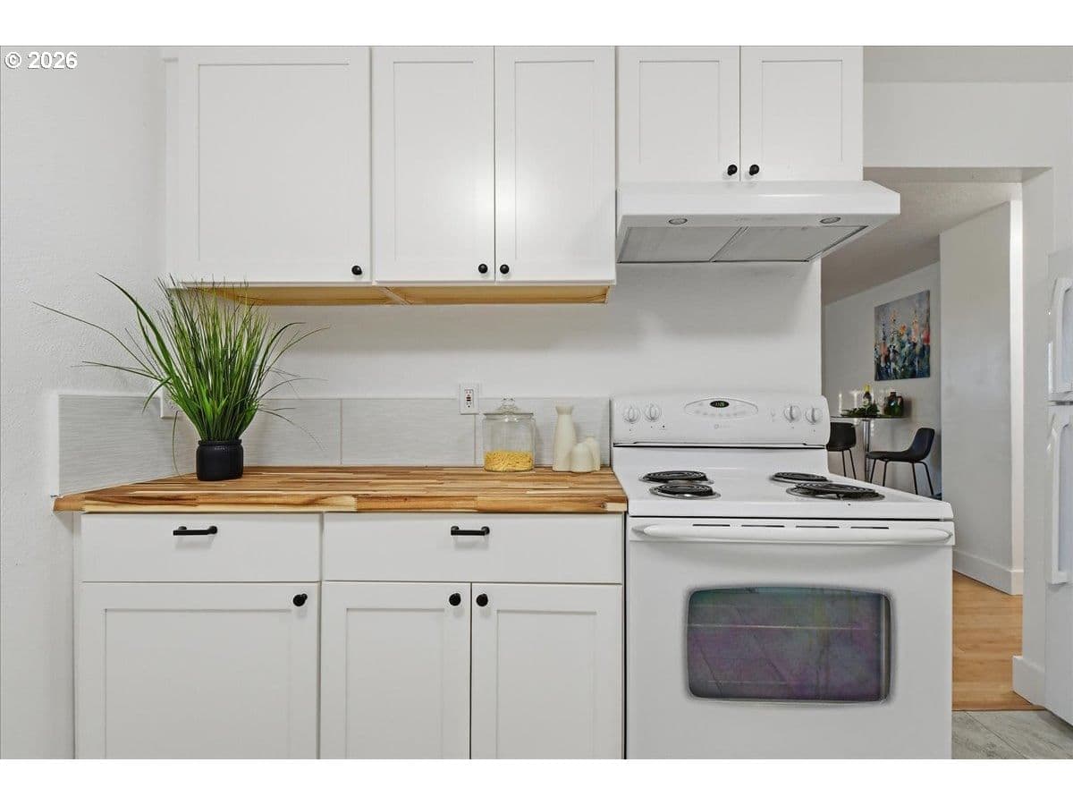 Sweetheart alert in Harney Heights! Updated & move-in ready, this 2-bed, 1-bath home on a .10 acre lot is cute as a button & fresh as spring. Upgrades include vinyl windows, bamboo flooring, & contemporary bath fixtures. A mini-split for heating & cooling in the living room will keep you comfy all year round. In the kitchen, new butcher block counters, NEW LVP Floors in Kitchen & clean cabinet finishes tap into this home's classic character. Outside, you'll find an exterior living space to brag about! RV parking & a fully-fenced yard are just the start...the backyard features a detached workshop, art studio, or garden room w/ south-facing windows & a breezeway connected to the kitchen. A brick patio on the upper terrace lends versatility to your landscape design & outdoor entertaining plans. The backyard shed is ideal for extra storage, a chicken coop, or both! Take a tour & see: Inside & out, this delightful home is big on charm, value & reasons to fall in love. View of Mt St Helens from your living room.