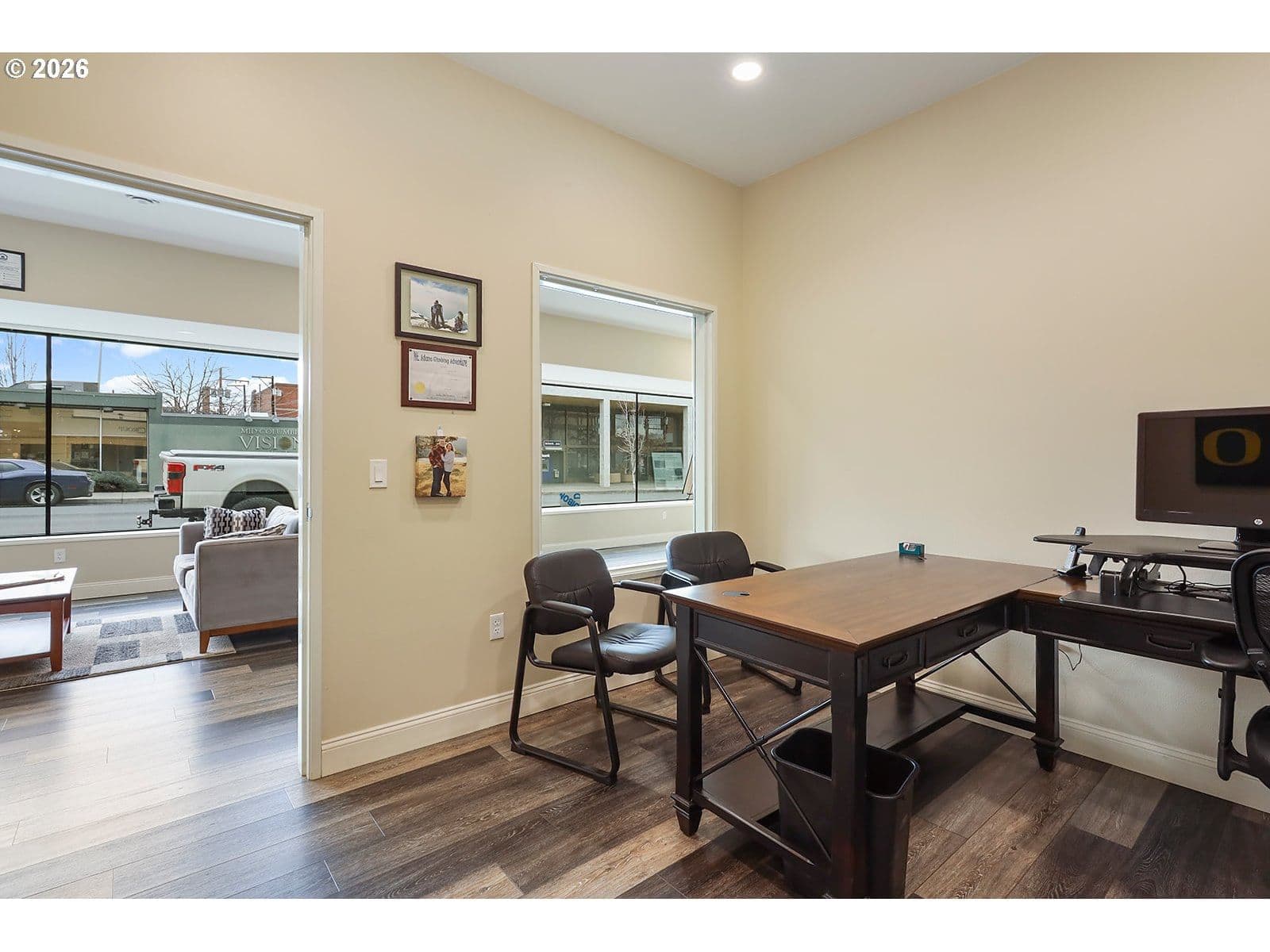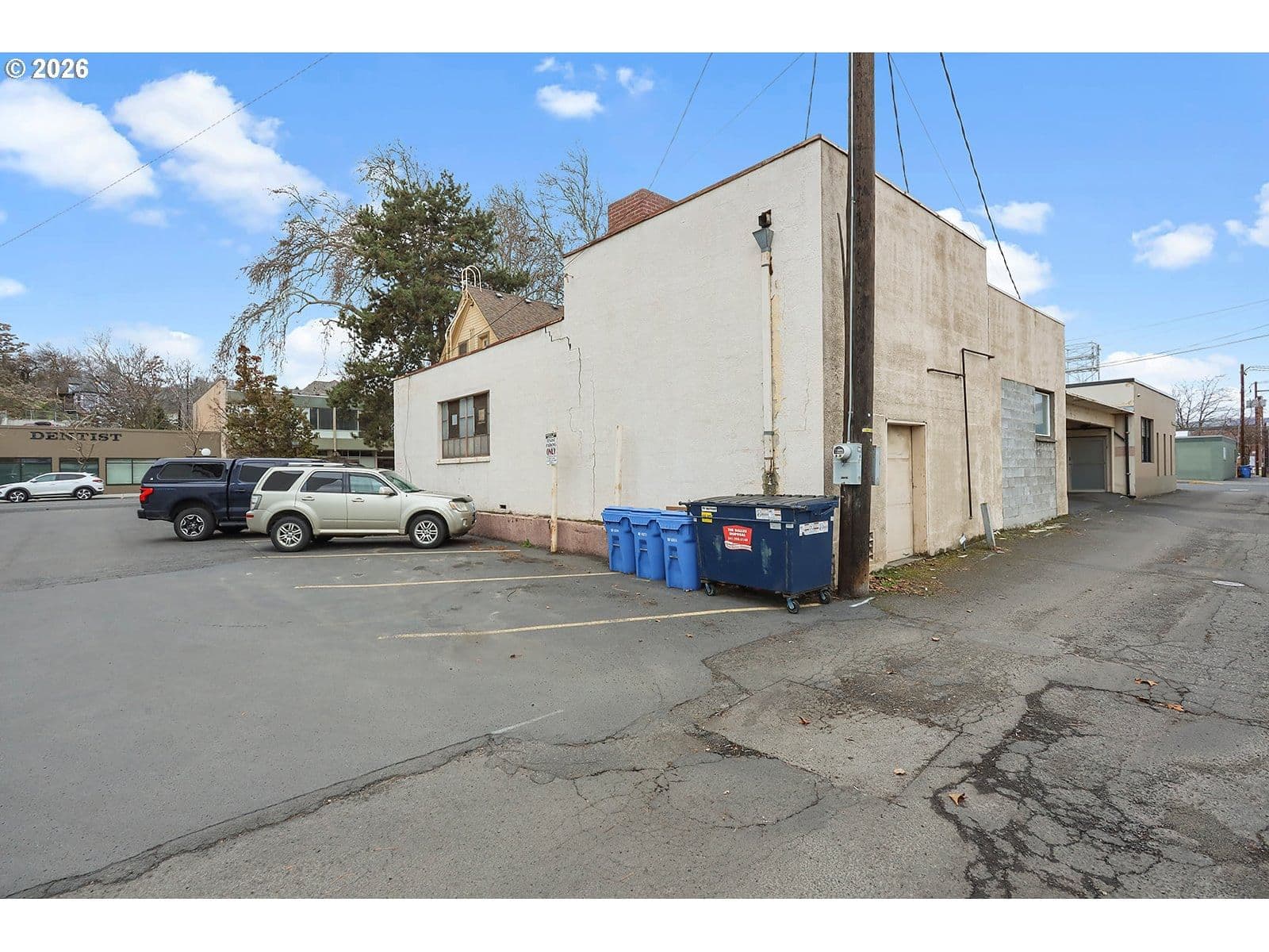 Incredible price reduction on a recently remodeled commercial building in the heart of The Dalles Business district. This can be used in the current office space setting (5 offices) or converted to a business showroom or a retail store. Great alley access with private 4 vehicle parking. There is also an additional 1300+- building that needs a roof replacement ( or could be torn down, city has approved) and can be used for storage. There is a full bathroom with shower and a small kitchenette. The building should be worry free for years to come. Updates: electrical, plumbing, HVAC, newer roof on main building, flooring, sheetrock and interior exterior paint. It is basically a new building. Liberal CBC Zoning allows for a broad range of business opportunities. Clean Phase 2 on file, all items have been removed from the storage building.