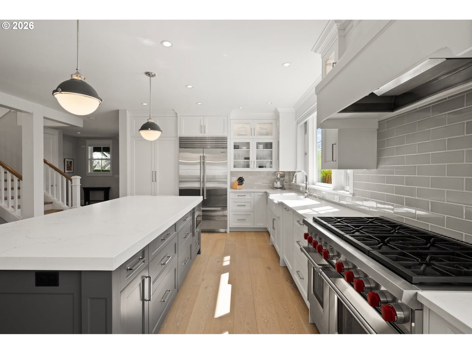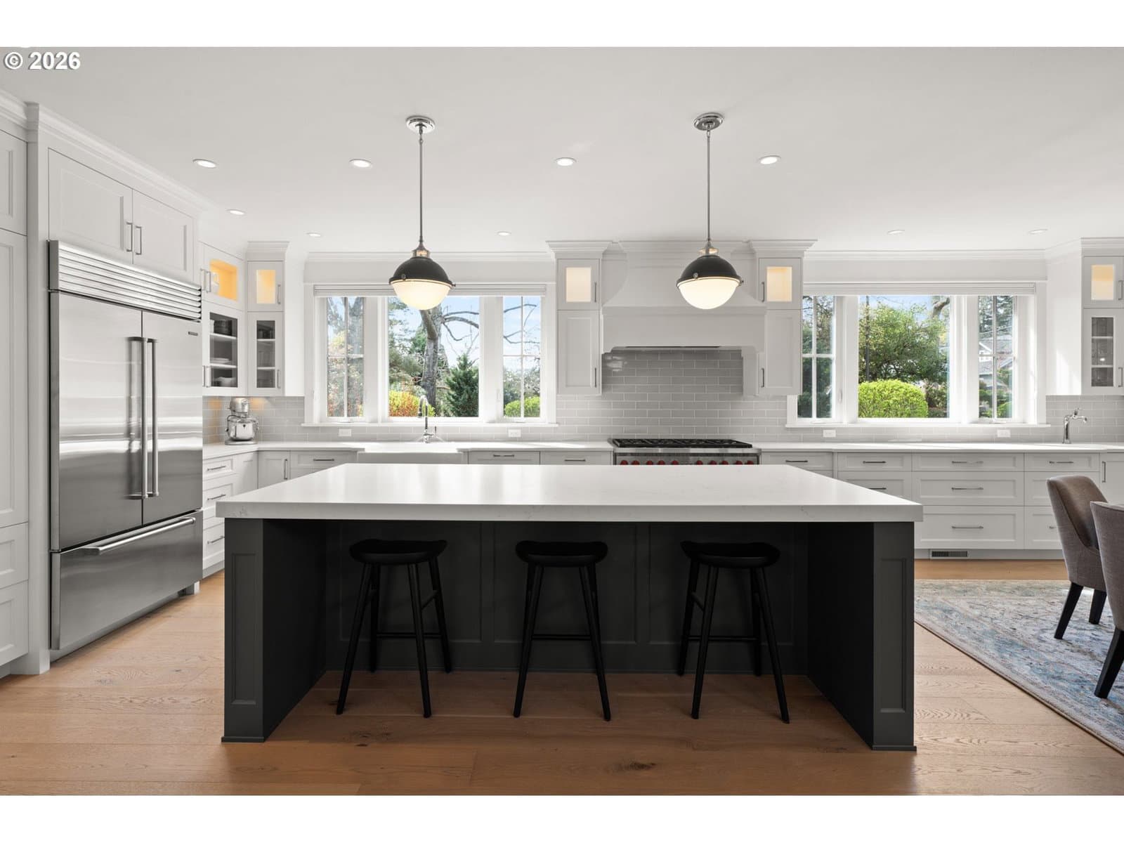 A rare blend of timeless character, modern comfort, and premier walkability, this south-facing corner lot custom home by Stoneridge Custom Development anchors one of First Addition's most desirable settings. Just steps from the Lake Oswego Public Library and downtown amenities, the location offers both convenience and a true neighborhood feel. Designed for entertaining, the wide-open floor plan is something you truly have to see to believe. White oak floors lead into a light-filled layout with a quartz island, Sub-Zero refrigerator, Wolf 48-inch gas range, wet bar, and seamless flow into the vaulted great room with shiplap ceilings, built-ins, and a gas fireplace. The home offers outdoor living where you can enjoy the covered front patio overlooking the spacious lawn, or retreat to the more private side patio with a gas fireplace, barbecue, and ample seating. Upstairs features a vaulted primary suite with an attached office and a spa-like bath with soaking tub, walk-in shower, double vanity, and walk-in closet. Two additional bedrooms, a full bath, and a laundry room with sink and storage complete the upper level. Smart features include a whole-home smart system with Nest thermostat and security. Opportunities like this in First Addition are few and far between. Schedule your private showing and see it for yourself.