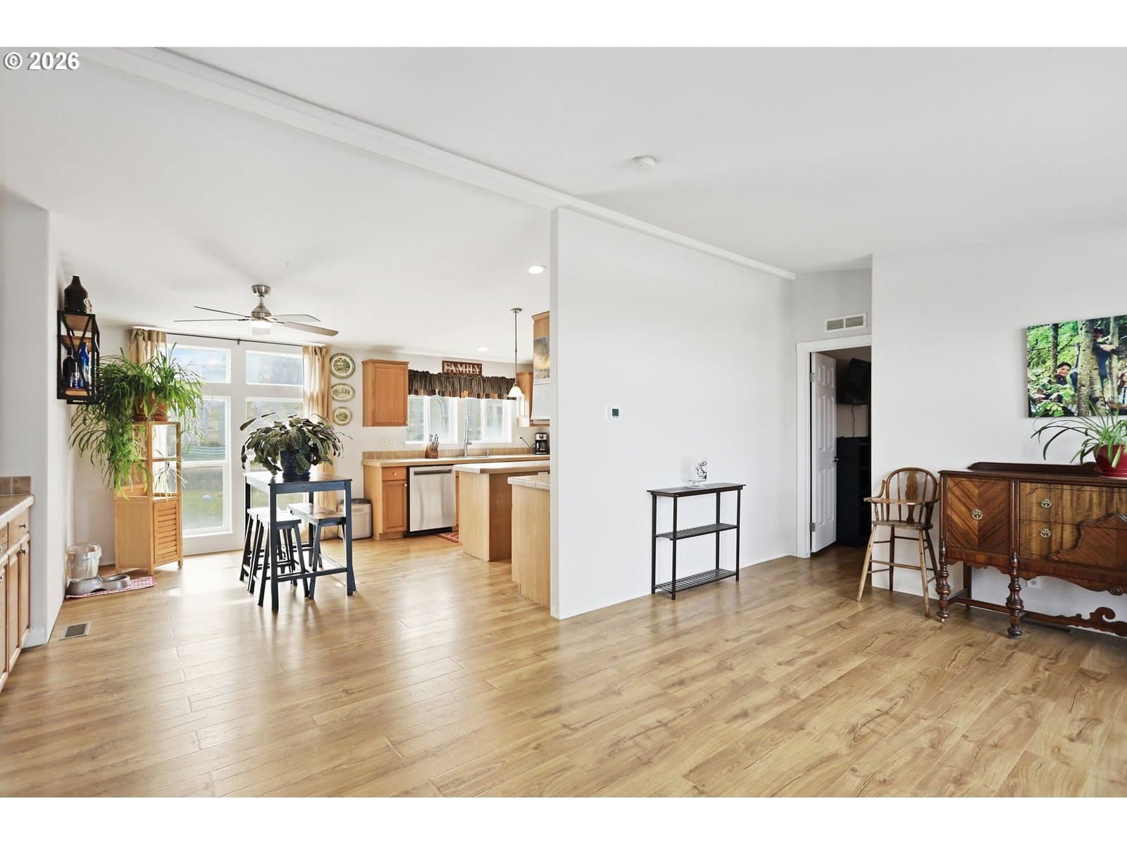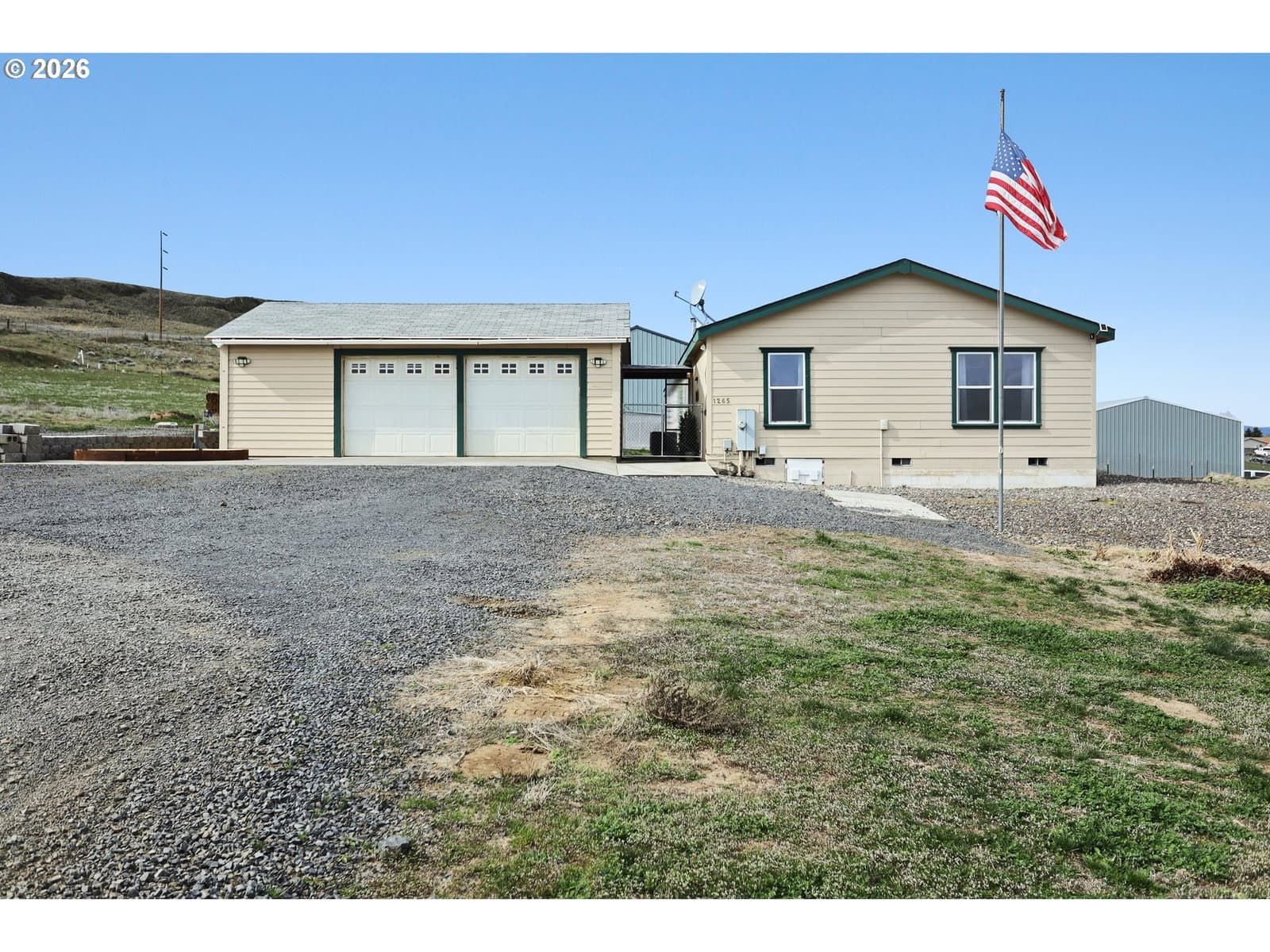 1265 Wright Road in Arlington is a spacious manufactured home sitting on more than half an acre with a fantastic layout and view!This well cared for home has an open concept layout with three bedrooms and two full baths. The primary bedroom has its own en suite with a generous sized tub and separate shower. Two additional bedrooms provide versatility for guests, a home office, or hobby rooms! This property also includes a detached two car garage and a fenced yard space! Room to spread out and close to the golf course!Recent updates include all new flooring, interior paint, light fixtures, toilets, sinks, faucets, kitchen appliances, water softener and whole house filter system and more! SELLERS WILL PAY FOR A HOME WARRANTY!