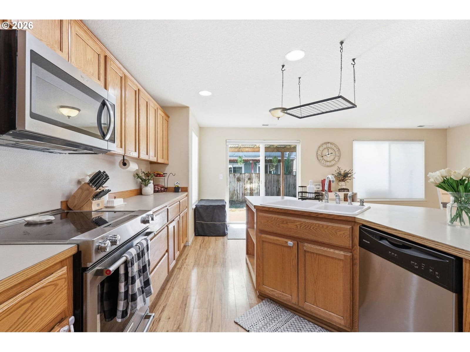 Gas Water Heater, Dishwasher, Disposal, Free-Standing Range, Microwave, Plumbed For Ice Maker, Range Hood