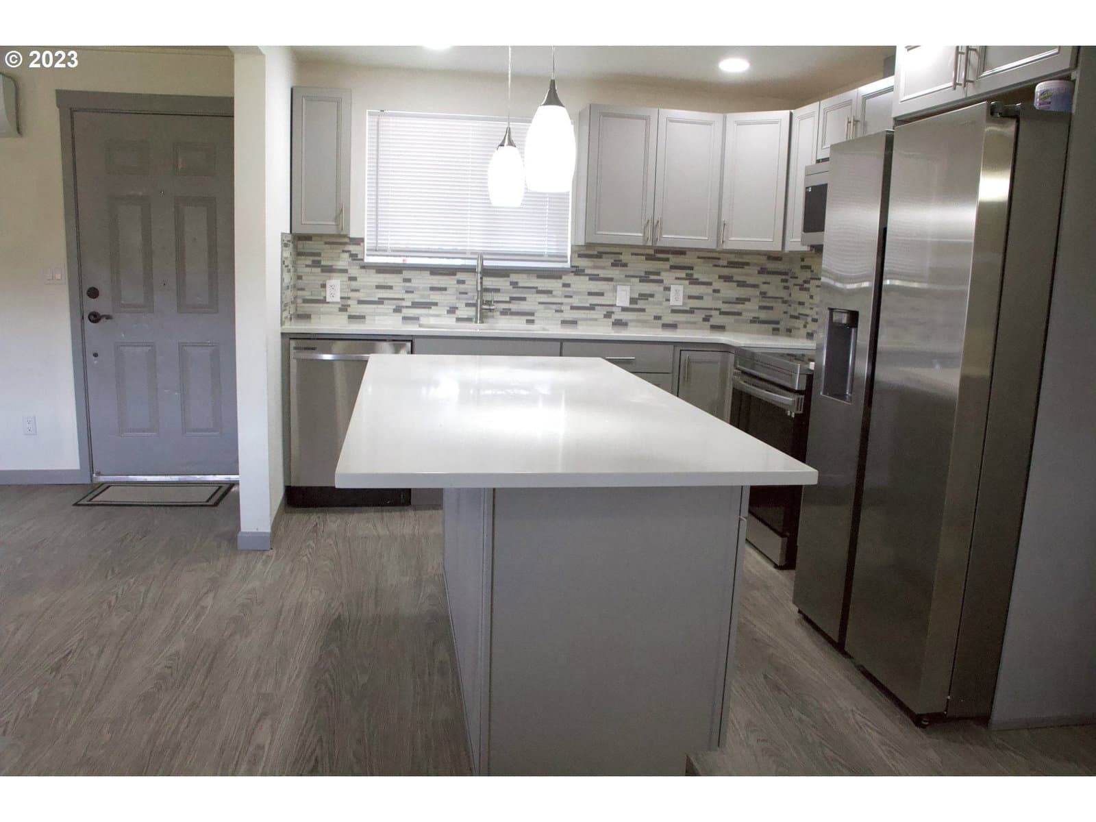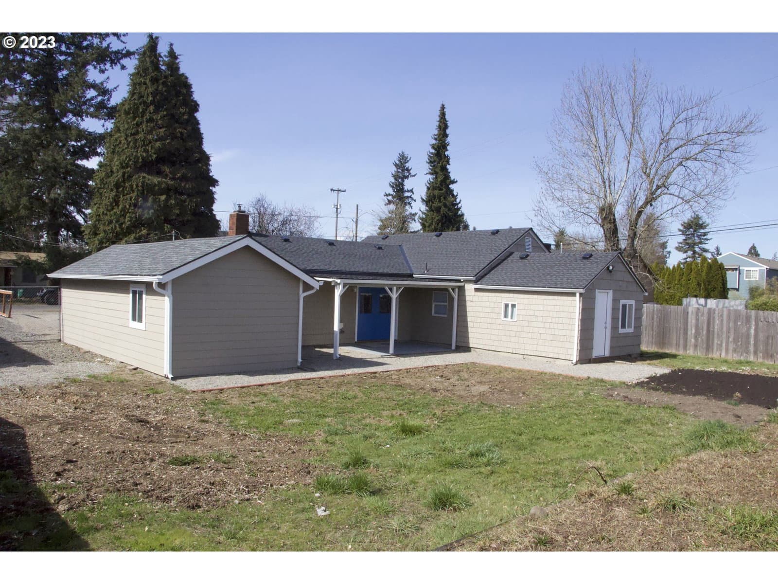 Beautifully Remodeled 3 Bed - 1 Bath 1-Story Home on Almost a Quarter Acre! Tons of RV Parking, large, fenced back yard, Covered Patio, Nice Front Porch, Completely Remodeled in 2022 (Please see attached list of upgrades): Kitchen & Bathroom, Stainless Steel Appliances, Washer/Dryer, Siding Front of House and All Garage, Garage Roof, And Gutters. Ideal for first time homebuyers. Also - perfect for Investment Rental Property ... nothing to do but find your renters, and start collecting rent! Garage has been converted to ADU/STUDIO: 2 Bedrooms, 1 Bathroom, Kitchen, with Private Entrance, Its Own Hot Water Heater, and Wall Heaters. (Not permitted, but installed up to code by Seller, who is Licensed Contractor). Great place to live and work - and plenty of parking for your work vehicles! Take advantage of this opportunity today. [Home Energy Score = 8. HES Report at https://rpt.greenbuildingregistry.com/hes/OR10213608]