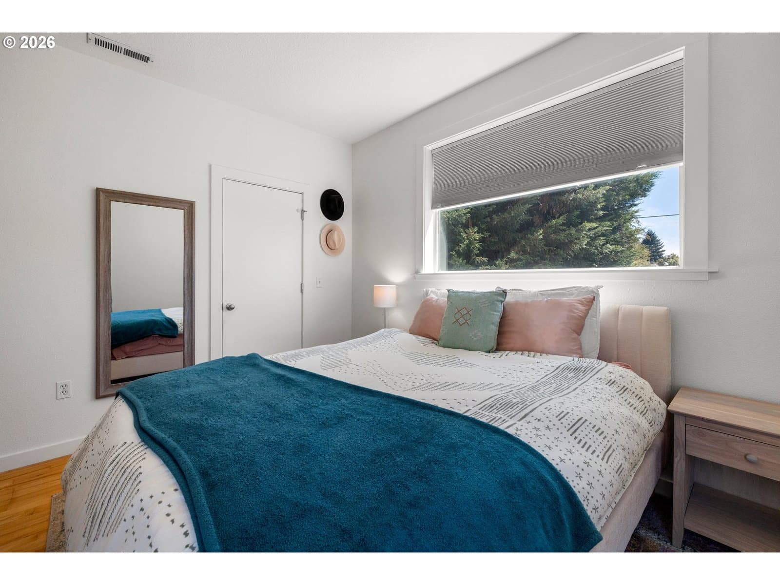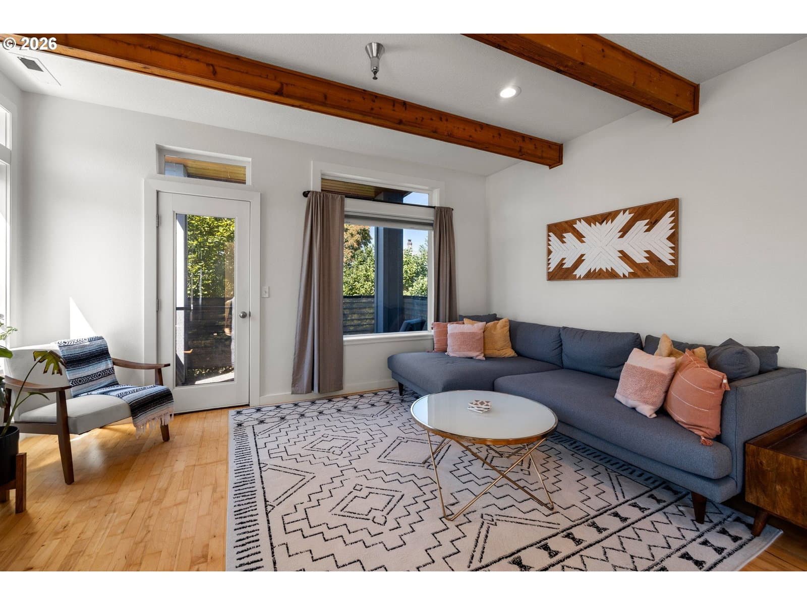 Wonderfully quiet inside and out! Minutes from popular Mississippi Neighborhood shops, restaurants, bars and Alberta Arts District and Overlook Park! Beautiful contemporary home that shows as well in person as the photos! Open floorplan with wood floors, open beam high ceilings, large windows with lots of natural light and nice views. Good sized deck with lots of privacy and space to relax. Kitchen has gorgeous cabinetry, granite counters, newer stainless appliances, gas range and island. Good sized primary bedroom with large walk-in closet. Bathroom with granite counter, solid surface tub surround. A/C, in unit laundry, lots of storage and more!