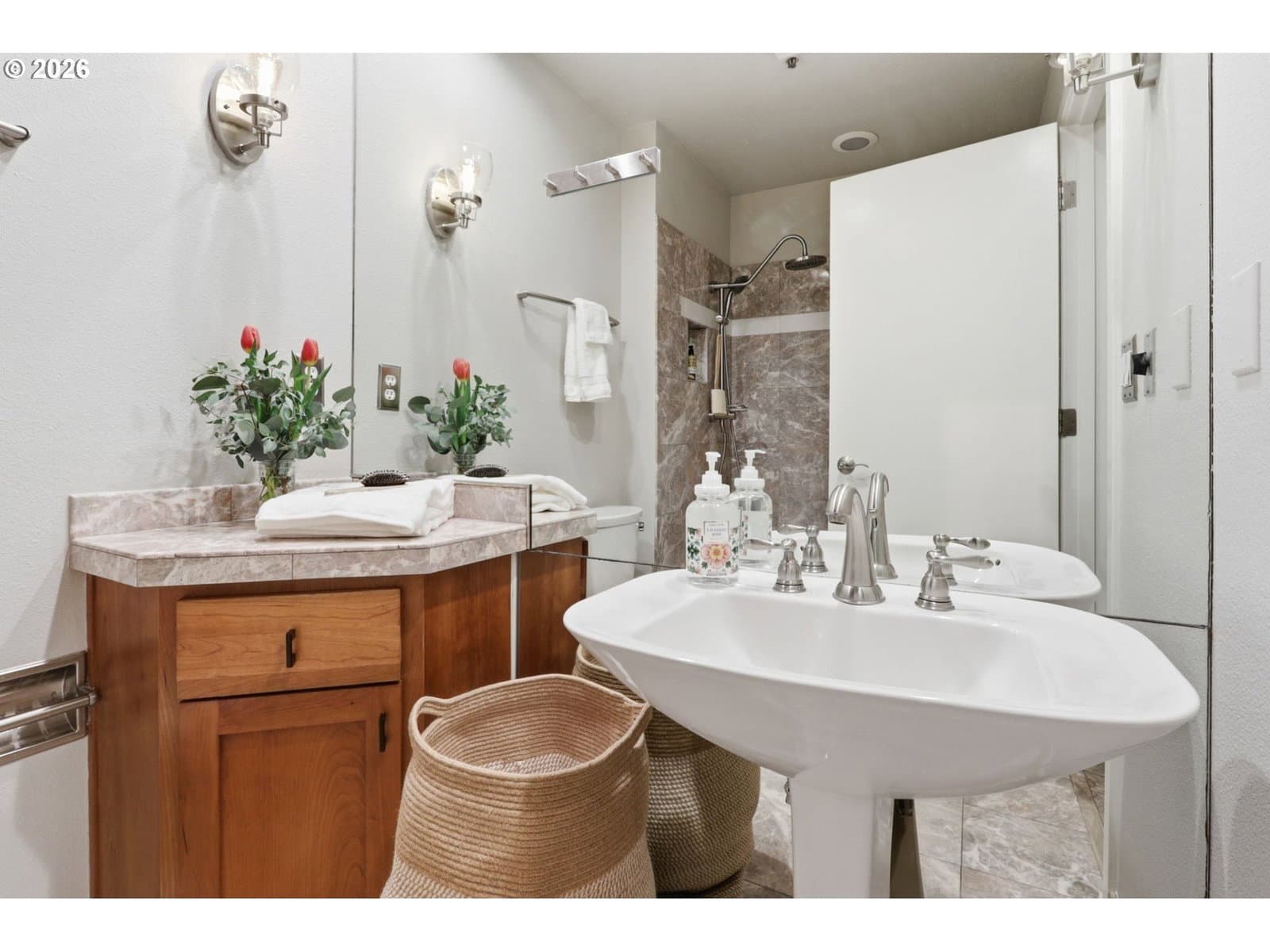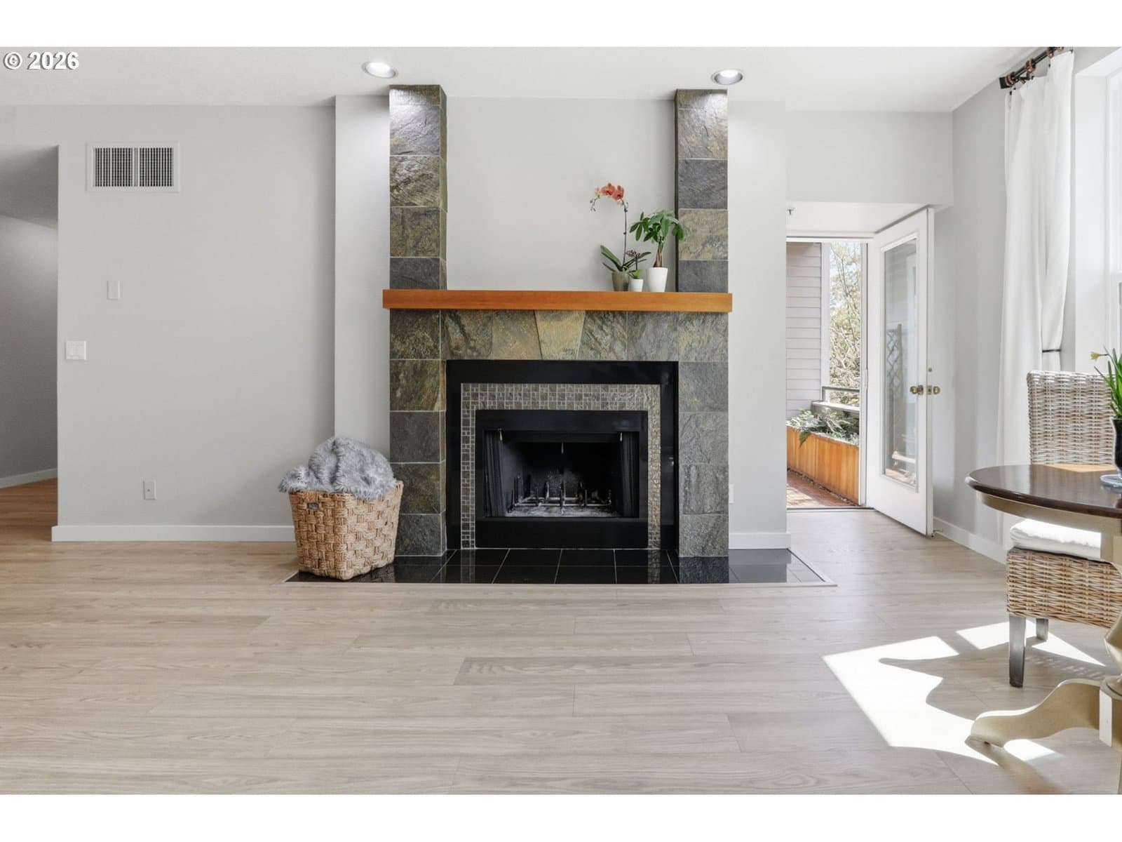 Wonderful upper-floor condo in one of Portland’s most desirable waterfront communities! This newly painted, move-in ready residence offers a spacious, light-filled layout with thoughtful finishes throughout. The living room features a cozy wood-burning fireplace with a striking slate surround, creating the perfect space to relax or entertain. The kitchen is both stylish and functional, showcasing quartz countertops and a contemporary design, while open to the living room, ideal for everyday living. The primary bedroom provides a comfortable retreat with double closets, built-in storage, and sliding doors that lead to your private deck. Enjoy an unbeatable location just steps from the marina, scenic walking and biking trails, and a vibrant mix of restaurants, shops, and entertainment. With convenient transit access nearby, commuting and exploring the city is effortless. Don’t miss the opportunity to experience refined urban waterfront living in one of Portland’s most sought-after communities!
