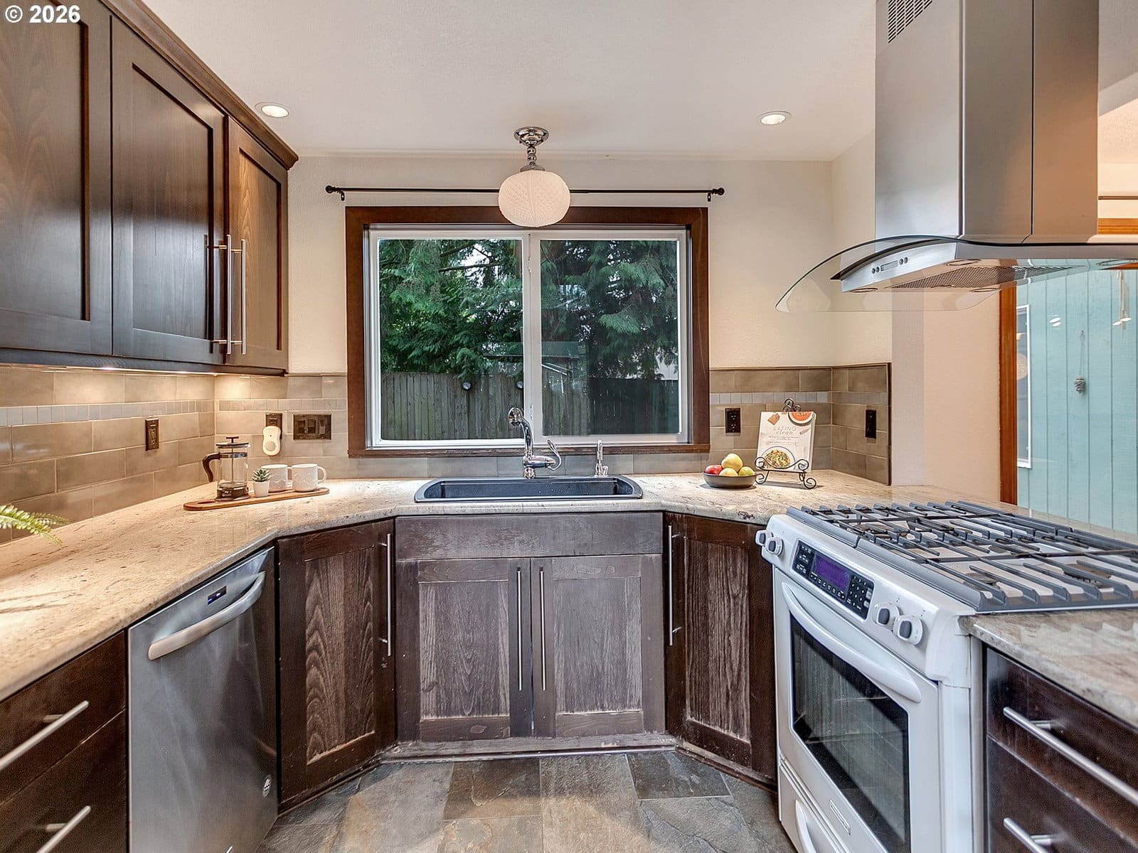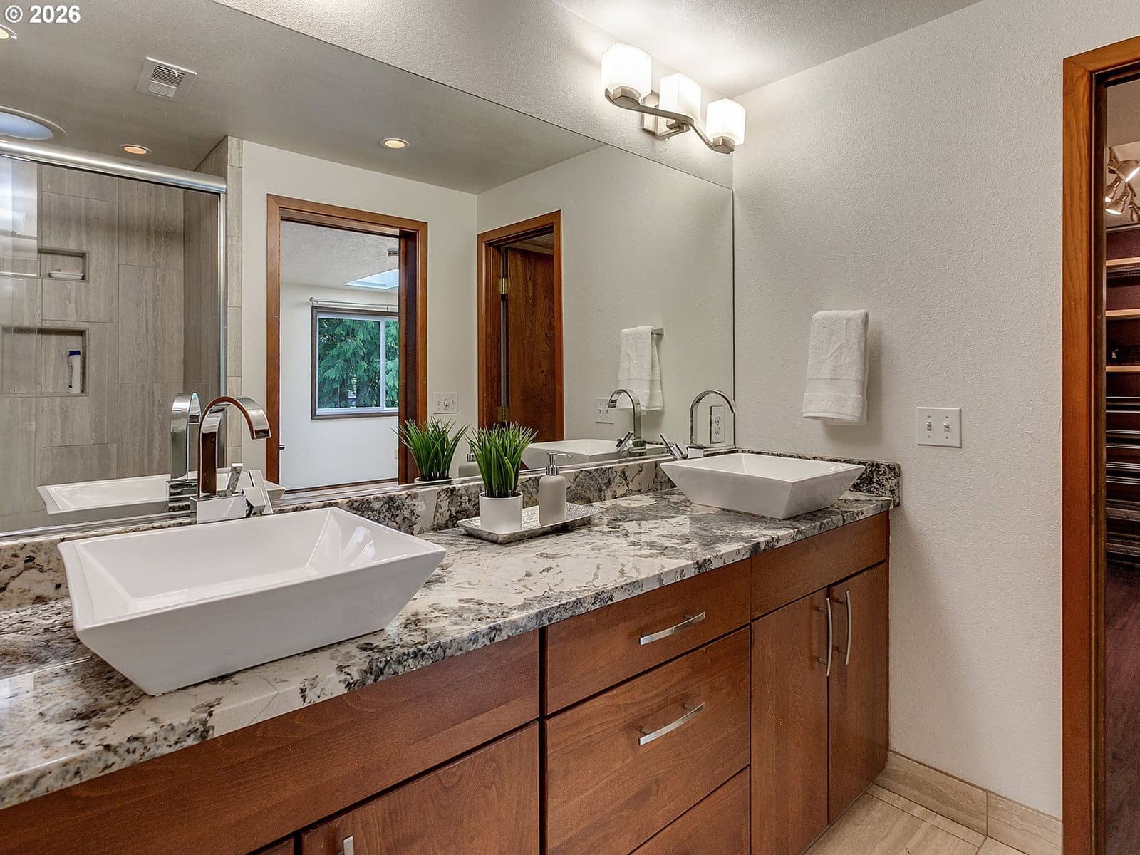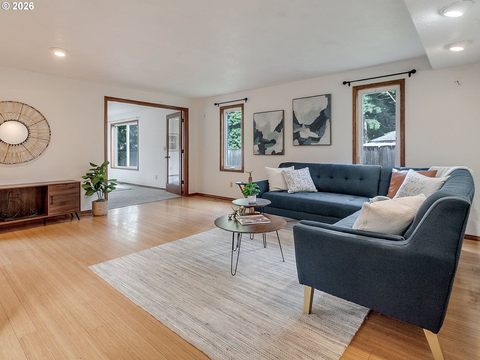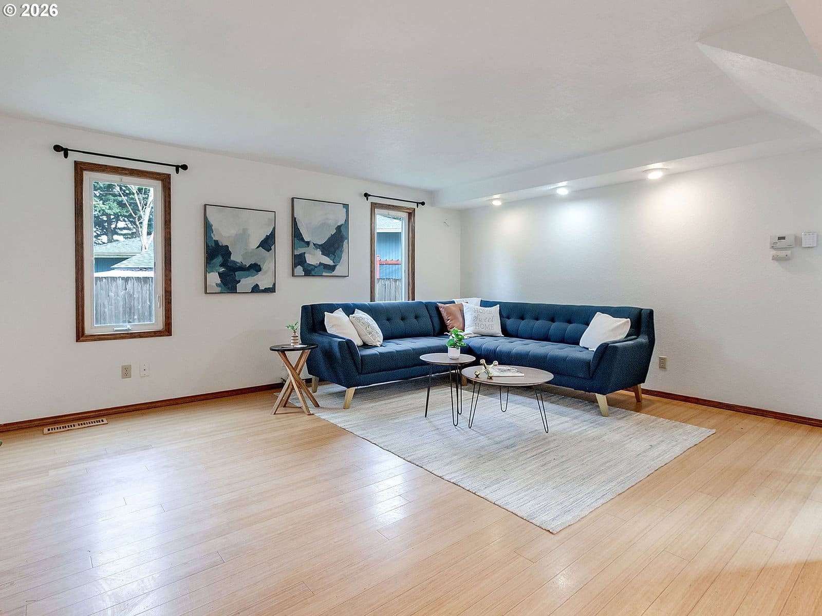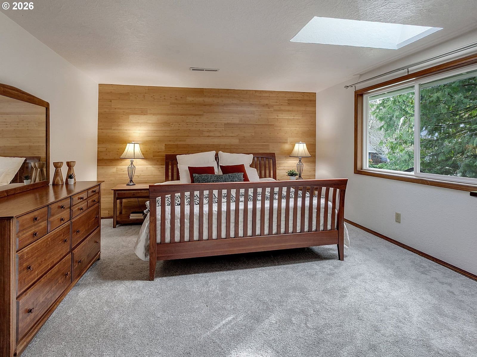 Architecturally distinctive and updated, this 4 bedroom, 2.5 bath Tualatin home offers a spacious and versatile layout designed for everyday living. Select areas feature elevated and partial vaulted ceilings, along with expansive windows and hard surface flooring that invite natural light and create an open, welcoming feel throughout the main level.The updated kitchen showcases rich wood cabinetry, stainless steel appliances, slab countertops, and generous storage, while seamlessly connecting to gathering spaces, courtyard and backyard access for effortless entertaining.A dedicated main level office with glass double doors provides ideal flexibility for remote work, hobbies, or guest space.Upstairs, the primary suite offers privacy and comfort with its own bath featuring beautiful finishes, a walk in closet, and a skylight, bringing soft natural light into the retreat. Additional bedrooms and a bonus sitting area create room to spread out.A fully fenced yard, covered entry, and attached garage round out this great find, ideally positioned near parks, schools, and everyday amenities.Seller has completed a professional home inspection prior to listing, available upon request. Recent improvements include a new furnace in 2024, new roof in 2025, new sump pump system in 2025, and fresh interior paint with new carpeting throughout in 2026, offering meaningful system and cosmetic updates for the next owner.