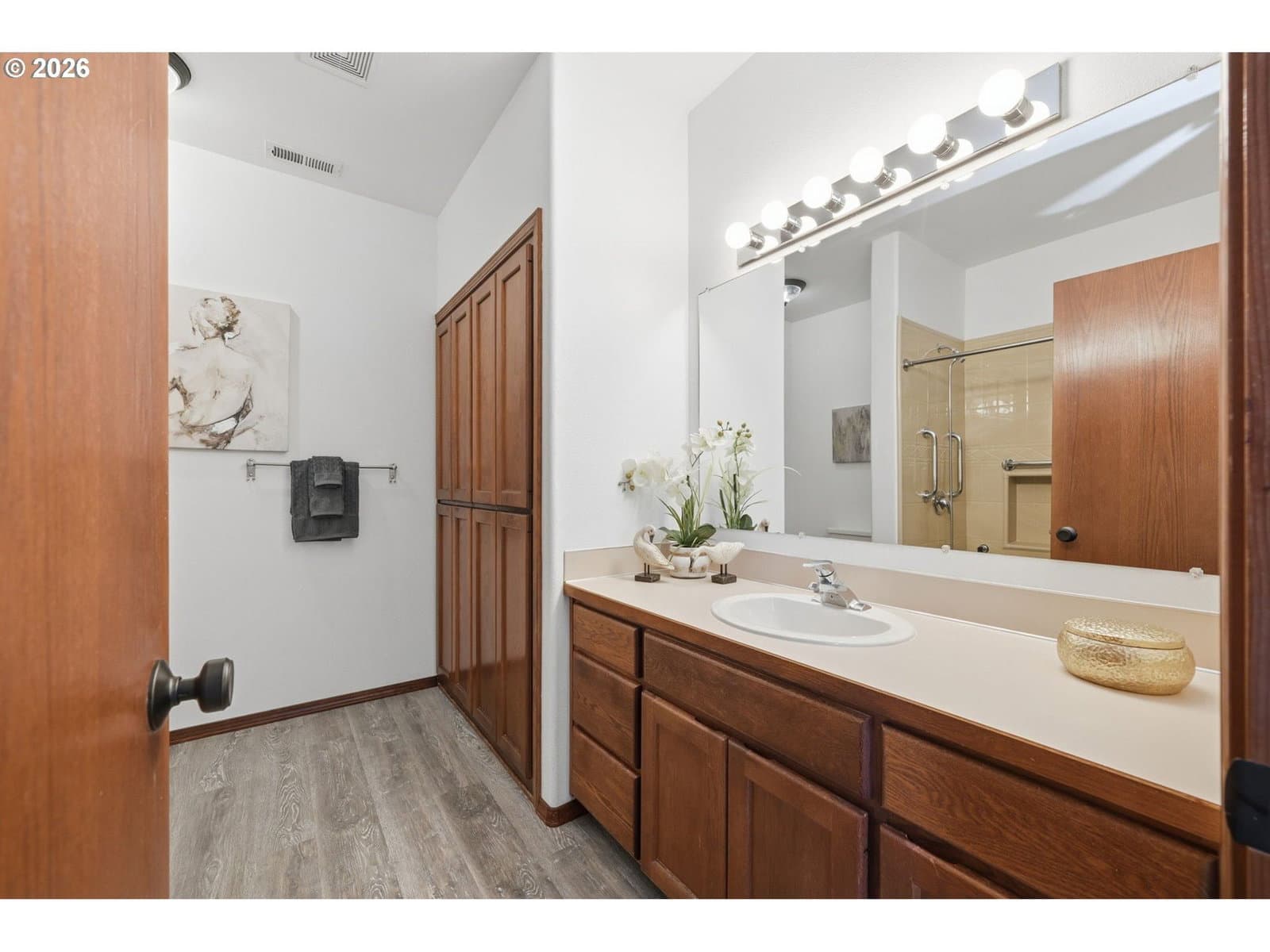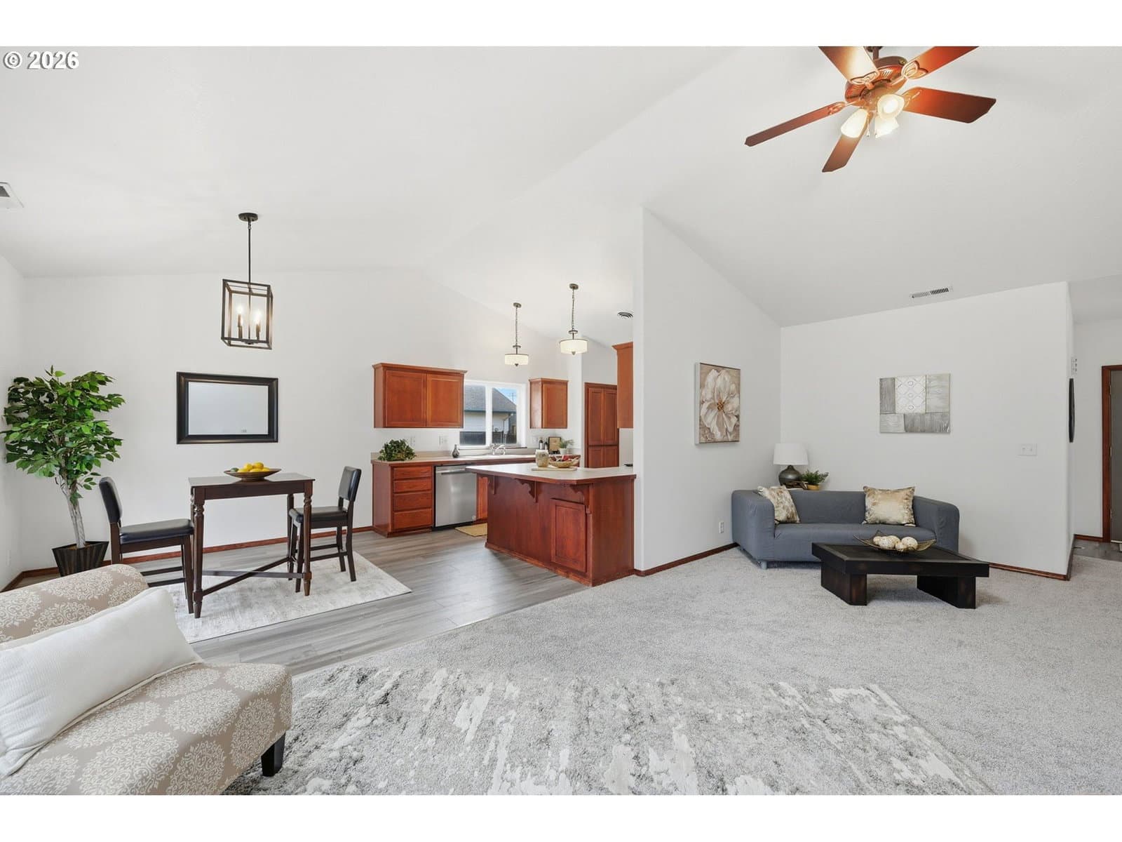 Well-maintained 1996 single-level home located at the end of a quiet dead-end street next to Ferndale Park. This 3-bedroom, 2-bath home features high ceilings and a comfortable, open feel throughout. The primary ensuite offers a roll-in shower and large walk-in closet, providing both convenience and accessibility. The kitchen includes stainless steel appliances, and the living area is anchored by a cozy gas fireplace. Major upgrades include a new roof and HVAC in 2022, and a gas generator installed in 2023 for added peace of mind. Enjoy privacy and outdoor living on the covered back patio, ideal for barbecuing and relaxing.
