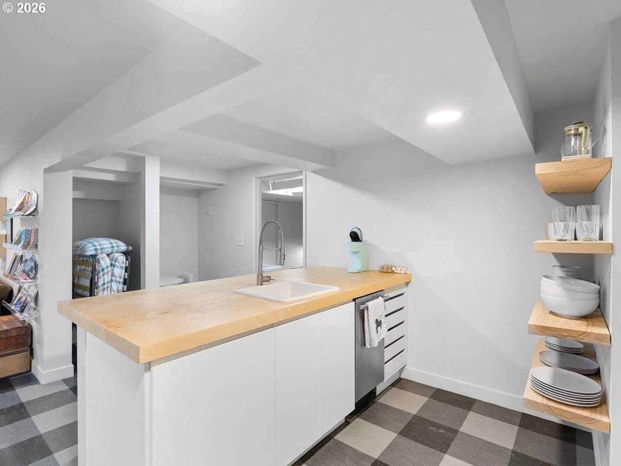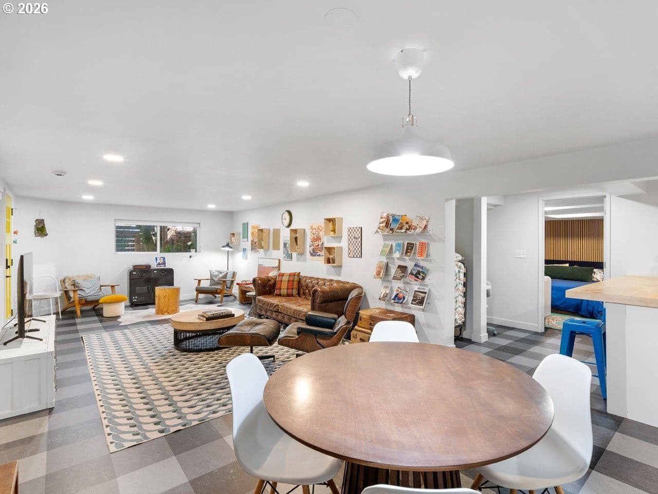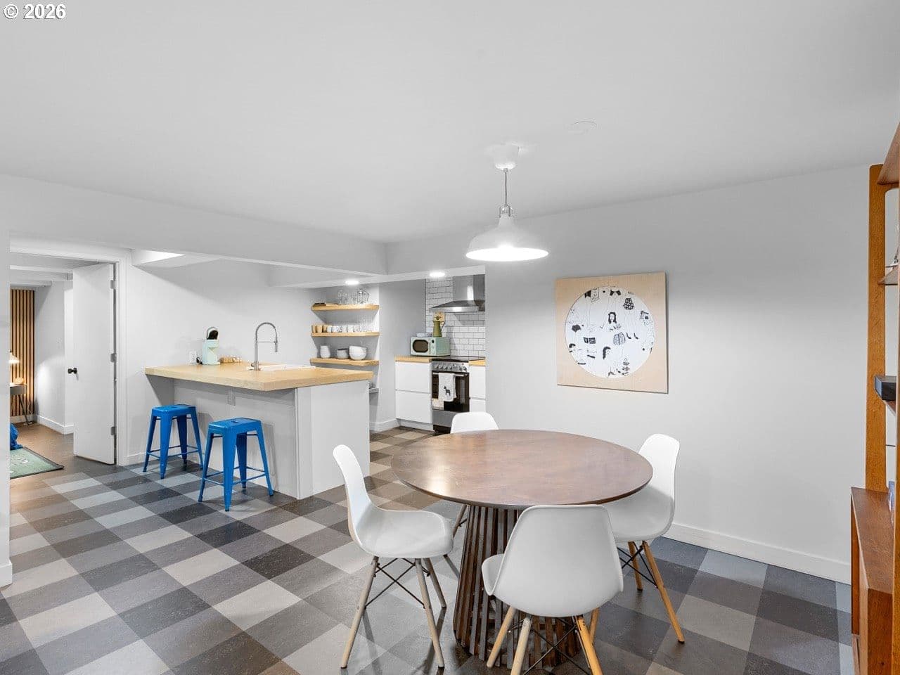 Rare opportunity to own a masterfully re-imagined Mid-Century Modern home in the prestigious Eastmoreland Neighborhood. This 2021 "to-the-studs" renovation seamlessly blends minimalist high-design with the functionality required for a modern lifestyle. No detail was overlooked, resulting in a turnkey sanctuary that feels new while honoring its architectural heritage. The open concept main floor has at its heart a true Chef’s culinary suite, featuring custom-milled walnut cabinetry, sleek quartz countertops, and a premium Jenn-Air appliance package, including a convection steam oven for the serious gourmet. The living room is centered on a custom brick fireplace, vaulted ceiling, large windows, and designer furniture that make staying home a treat instead of a convenience. The primary retreat is a masterclass in functional luxury, centered by king size bed with a wrap-around walnut walk-through closet. The spa-inspired ensuite offers a white marble surround, dual vanities, soaking tub, and a breathtaking custom circular skylight. Two generous bedrooms and a second full bath with two arched vanities and a large tub/shower complete this level. The lower level offers incredible versatility. A fully permitted, legal ADU/In-Law suite features a private exterior entrance, full kitchen, and dedicated laundry. Currently operating as a highly successful Airbnb, it averages $15,000/year in passive income, ideal for multi-generational living or offsetting your mortgage in style. For the hobbyist and At-home worker, the lower level includes a media room, a dedicated home gym and enclosed woodworking shop (partitioned in the garage), and a bedroom sized den/office with its own full bath. With an oversized garage capable of parking 2 vehicles, enough storage for all your tools and sports equipment, and nearly 50’ driveway, you will never need more space. All-new systems: Tankless water heaters, energy efficient windows, updated electrical/plumbing, and radiant flooring. No HOA.