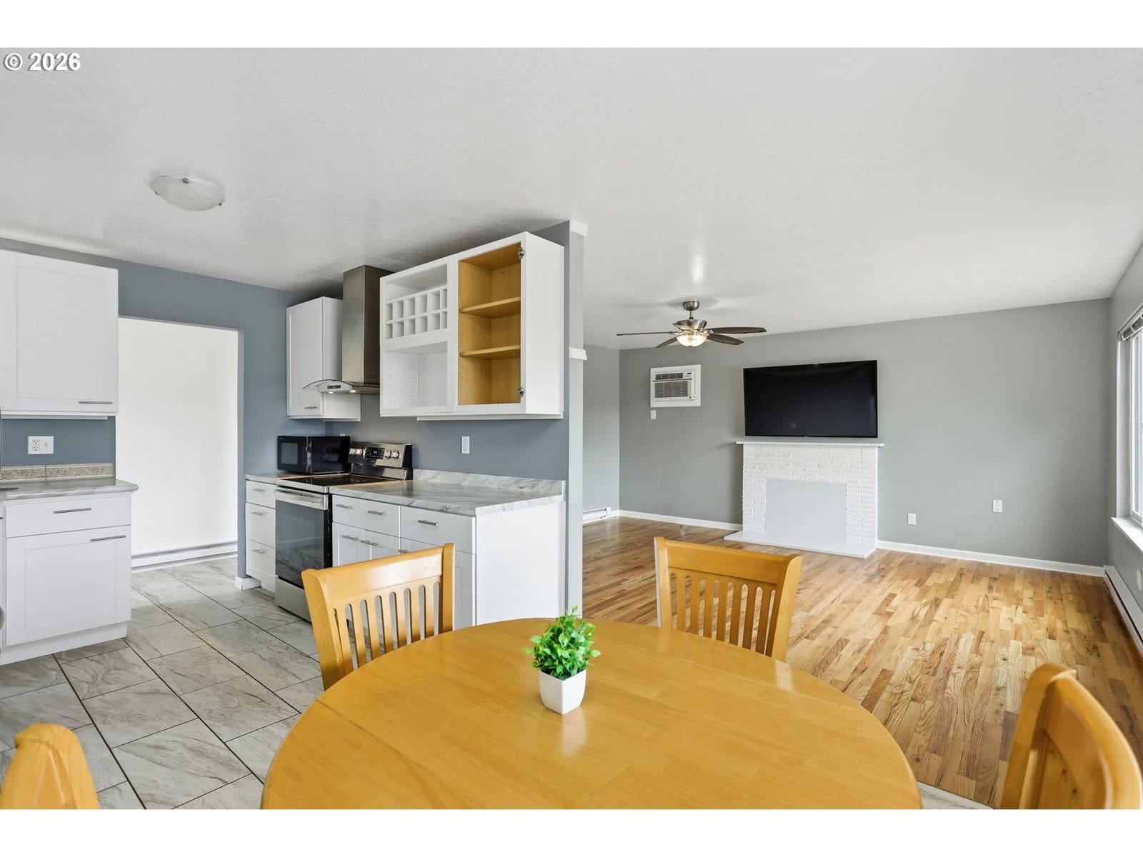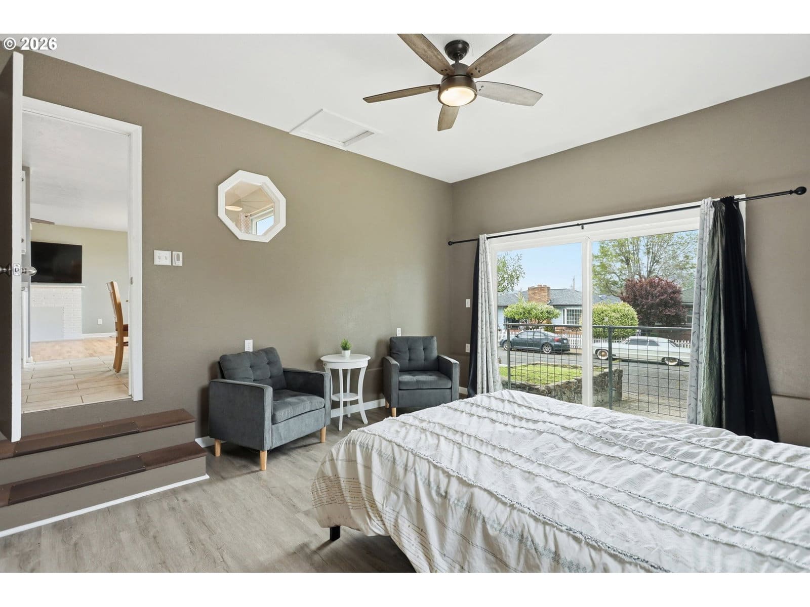 Updated 3 bed, 2 bath home offering 1,649 SQFT of comfortable living space. Beautiful hardwood floors and a large picture window fill the living room with natural light. Updated, functional kitchen features tile flooring and stainless steel appliances. Spacious bonus/family room with sliding glass door provides great flex space for entertaining or relaxing. Primary suite includes a private bathroom. Exterior has a sprinkler system, patio in backyard and a private yard space.