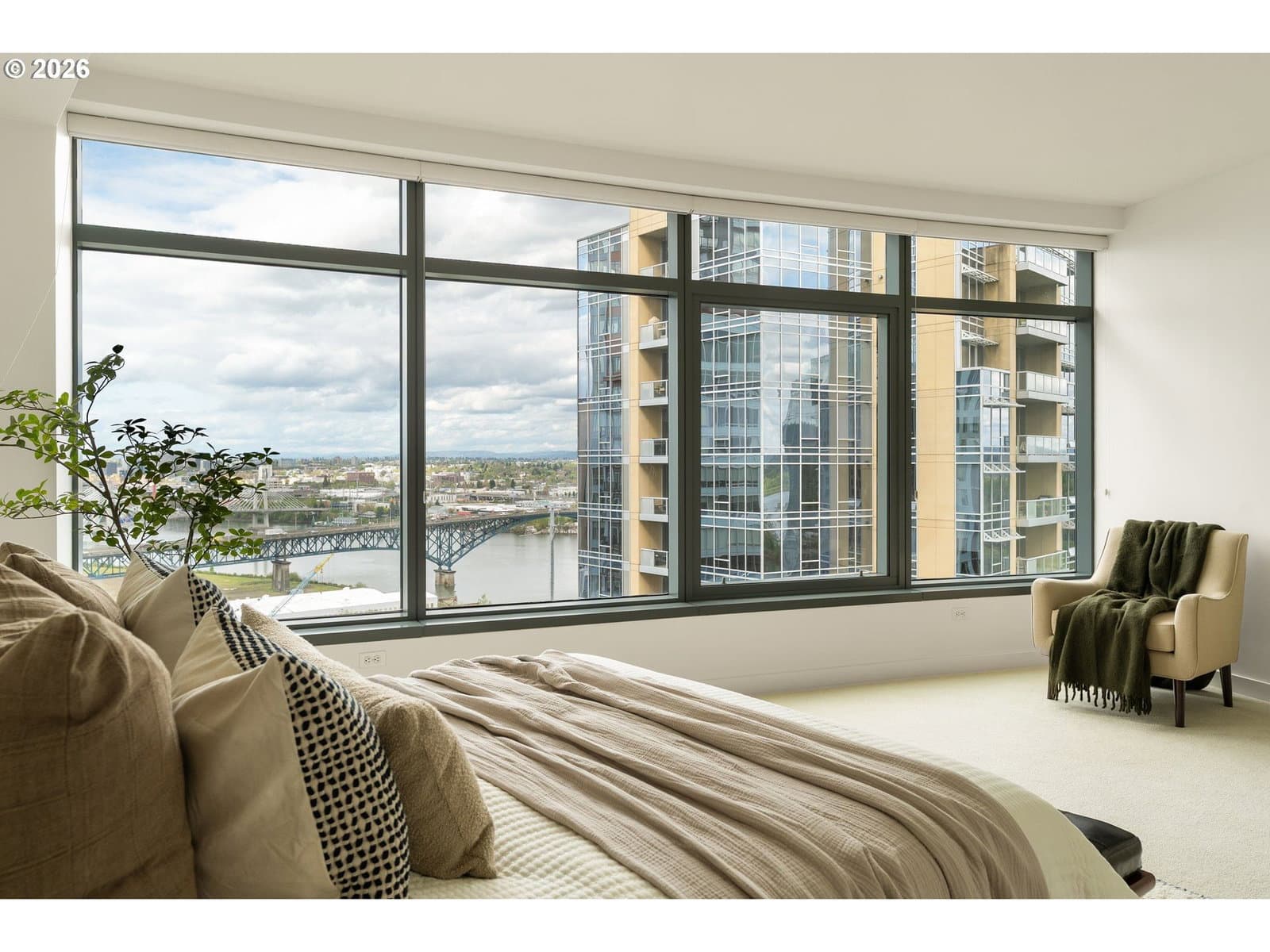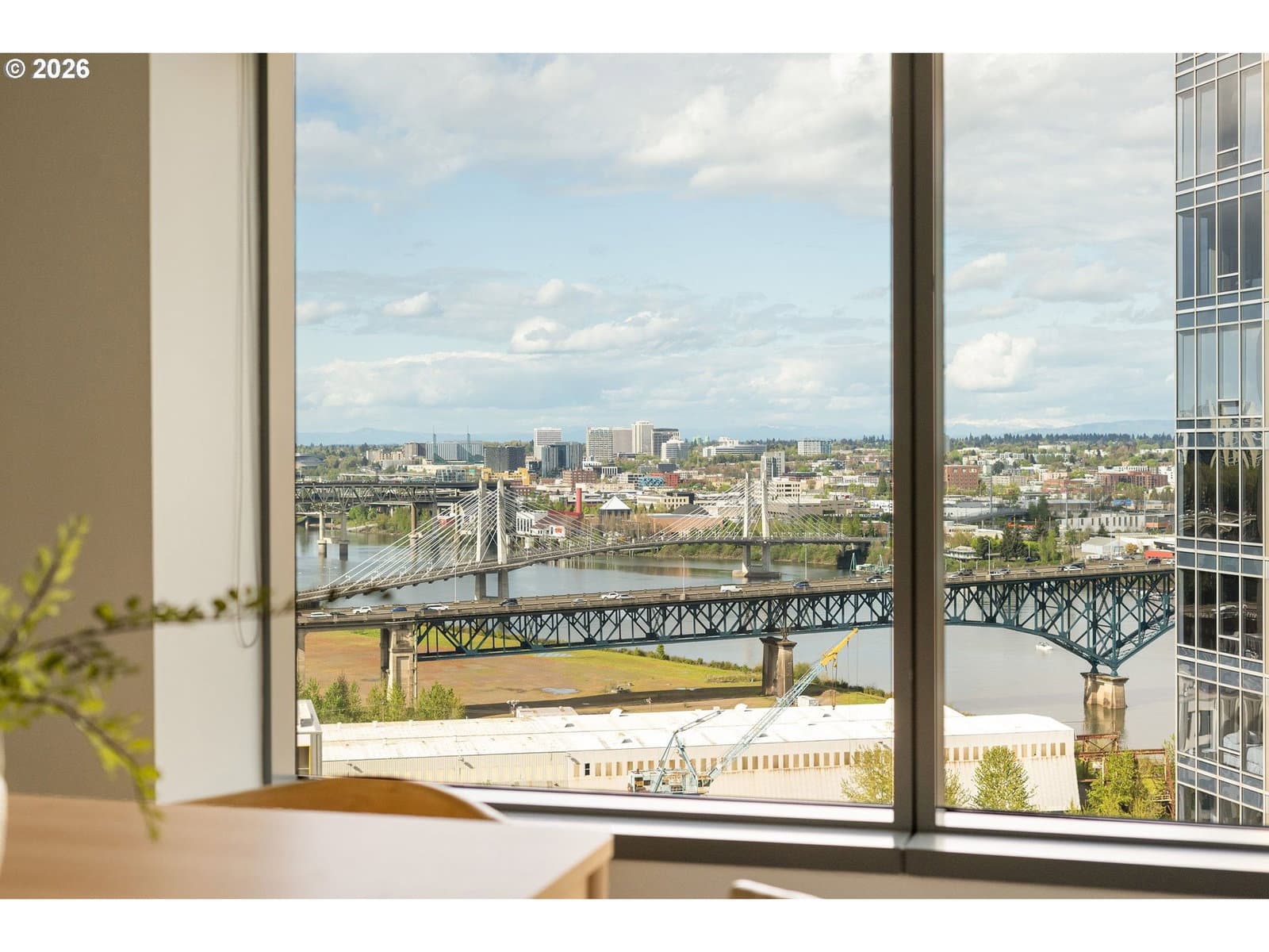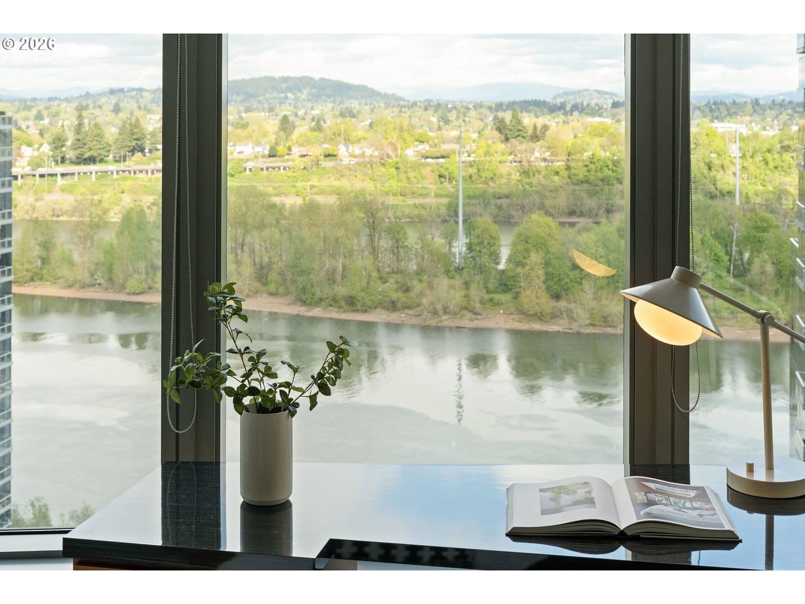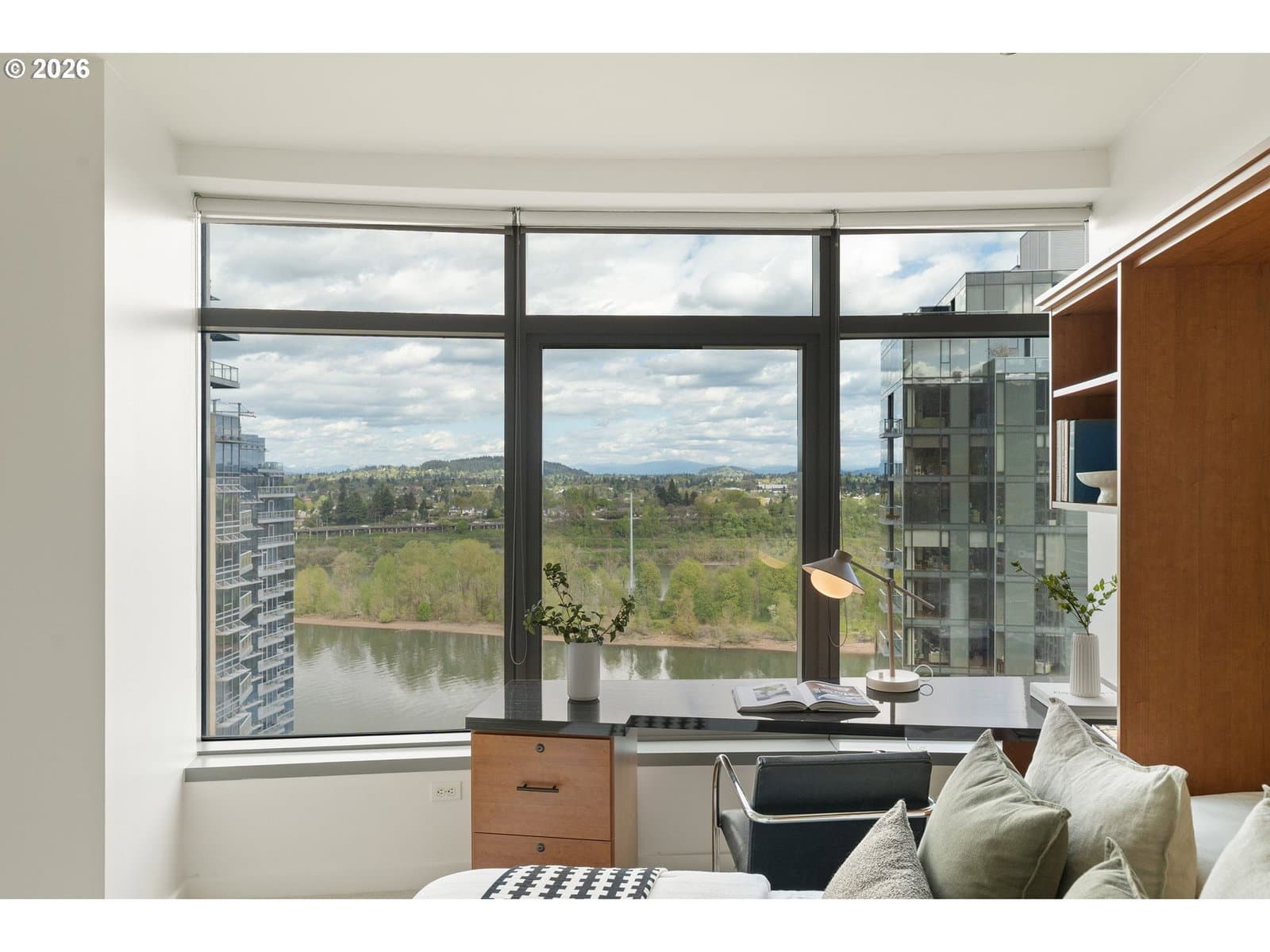 Panoramic views of the Willamette River, Mt St Helens, Mt Hood, Tilikum Bridge and more from the 21st floor at the iconic John Ross. This special home features a highly desirable floor plan with spacious open living, a grand primary suite with an upgraded marble bath and luxurious walk-in closet, and a separate 2nd bedroom/office with Murphy bed - all featuring wall to wall windows and amazing views from sunrise to sunset. The gourmet kitchen features upgraded penthouse level finishes including Viking appliances and abundant storage. In pristine condition with all new paint, and complete with 2 parking spaces. The John Ross features 24/7 concierge, and beautiful indoor and outdoor amenity spaces. Located in the beautiful South Waterfront, an urban oasis along the river with OHSU, tram, Streetcar, parks, trails, restaurants, fitness studios and more right out your front door.