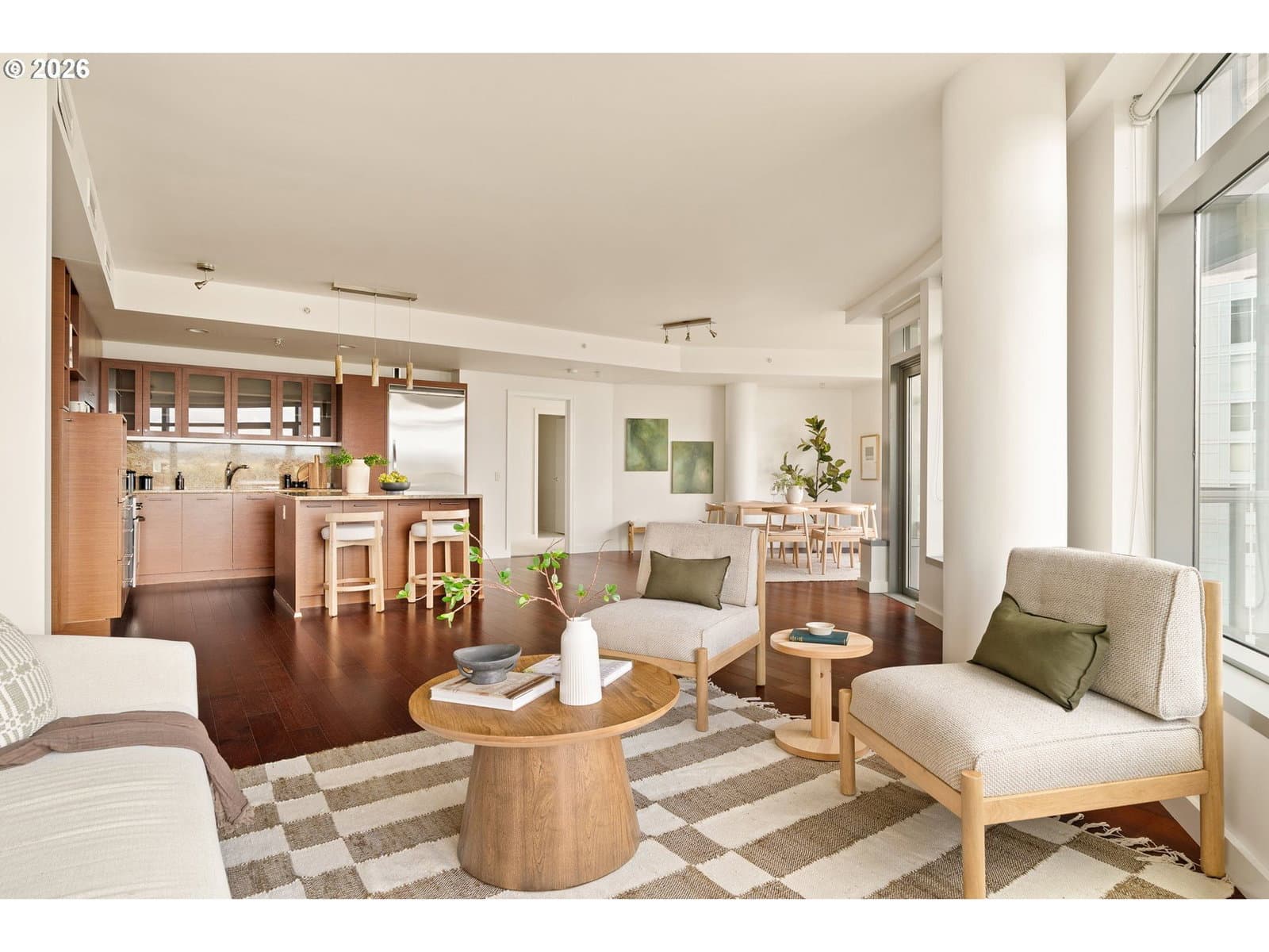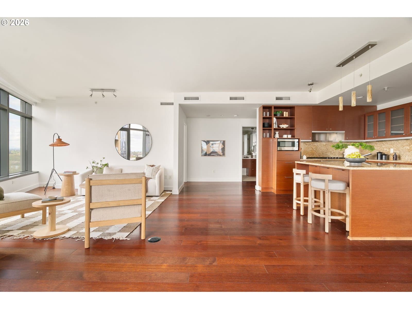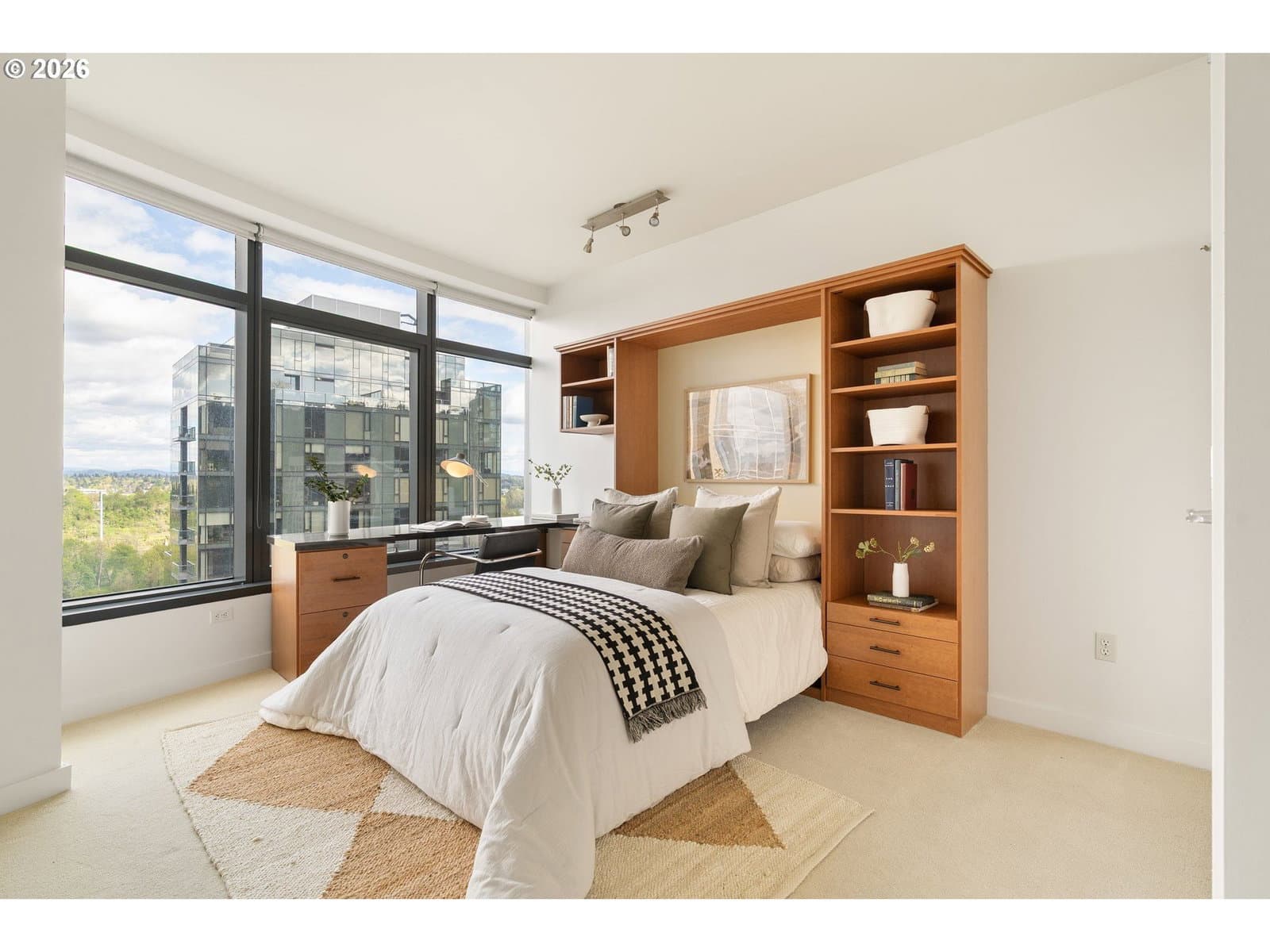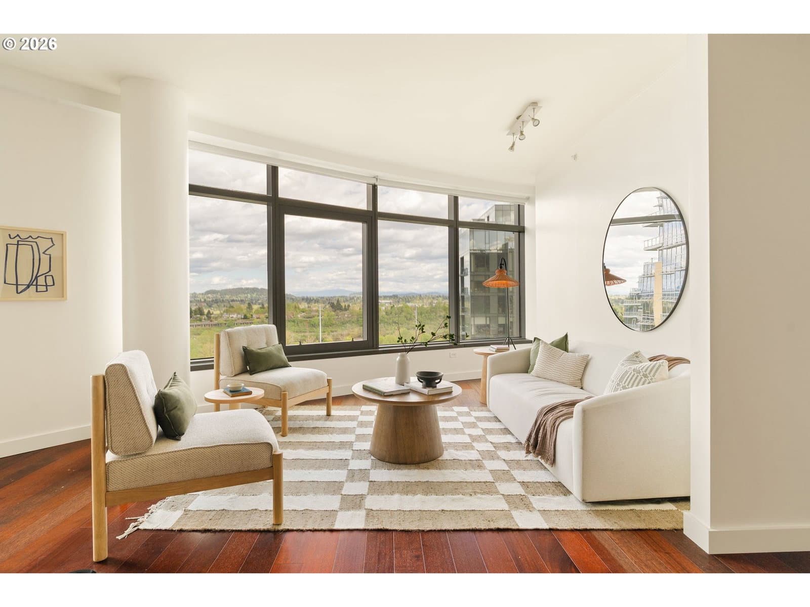 Panoramic views of the Willamette River, Mt St Helens, Mt Hood, Tilikum Bridge and more from the 21st floor at the iconic John Ross. This special home features a highly desirable floor plan with spacious open living, a grand primary suite with an upgraded marble bath and luxurious walk-in closet, and a separate 2nd bedroom/office with Murphy bed - all featuring wall to wall windows and amazing views from sunrise to sunset. The gourmet kitchen features upgraded penthouse level finishes including Viking appliances and abundant storage. In pristine condition with all new paint, and complete with 2 parking spaces. The John Ross features 24/7 concierge, and beautiful indoor and outdoor amenity spaces. Located in the beautiful South Waterfront, an urban oasis along the river with OHSU, tram, Streetcar, parks, trails, restaurants, fitness studios and more right out your front door.