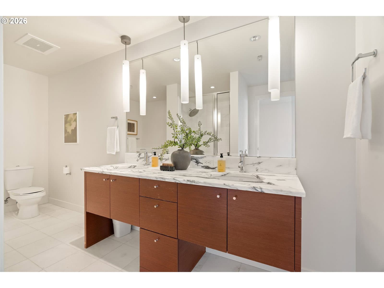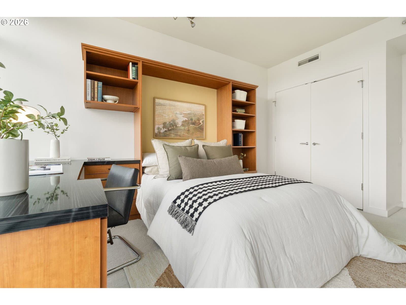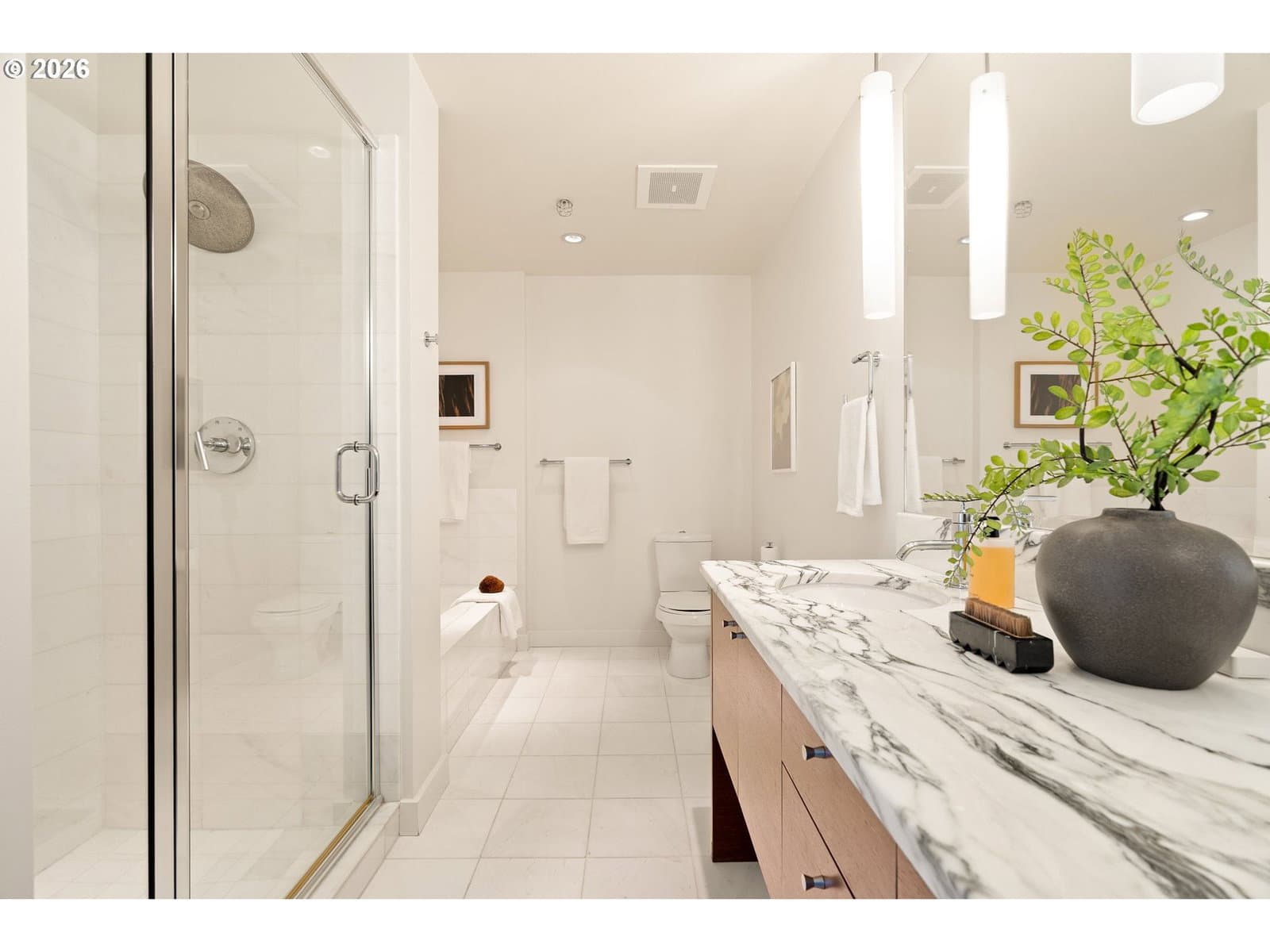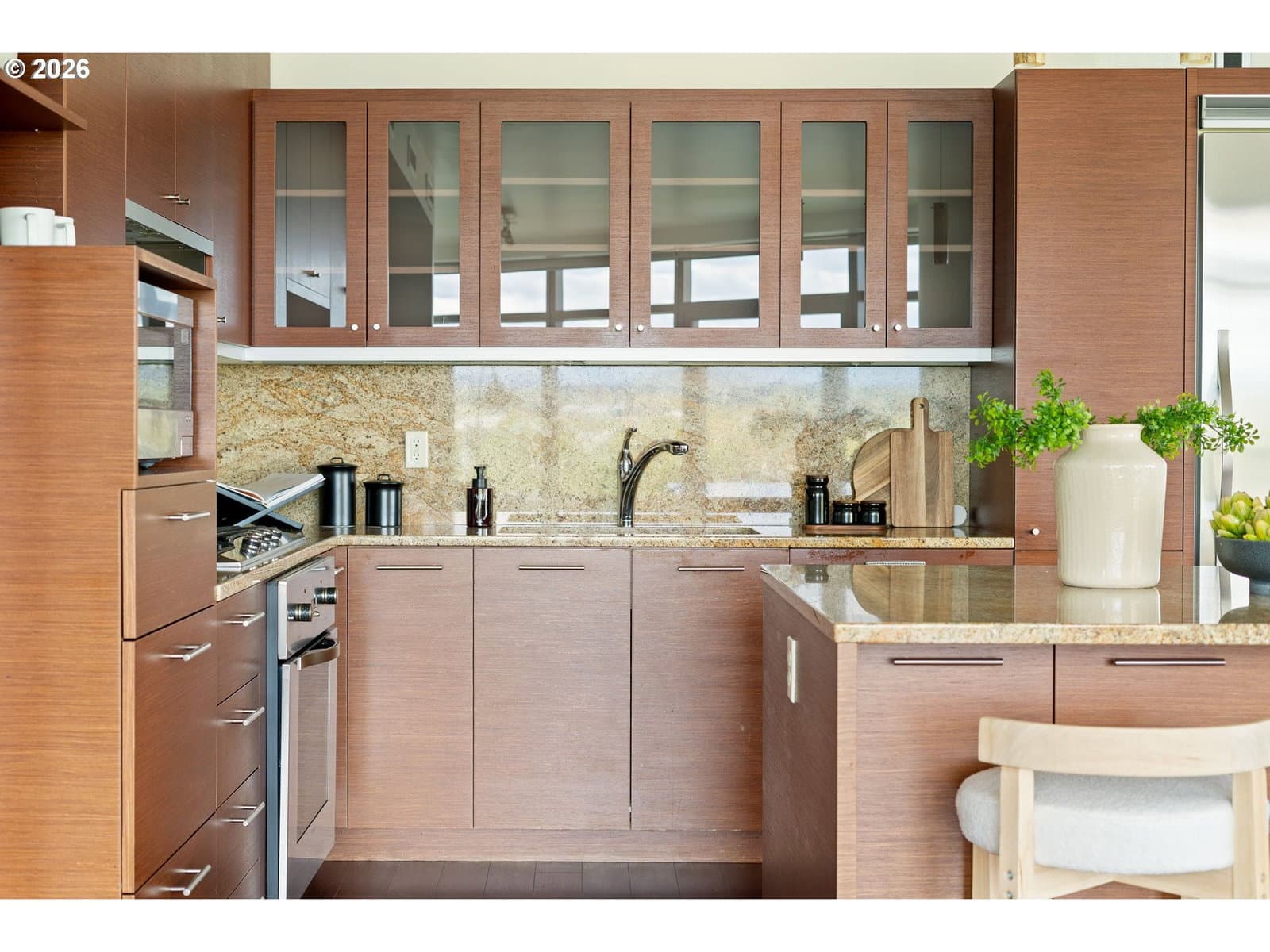 Panoramic views of the Willamette River, Mt St Helens, Mt Hood, Tilikum Bridge and more from the 21st floor at the iconic John Ross. This special home features a highly desirable floor plan with spacious open living, a grand primary suite with an upgraded marble bath and luxurious walk-in closet, and a separate 2nd bedroom/office with Murphy bed - all featuring wall to wall windows and amazing views from sunrise to sunset. The gourmet kitchen features upgraded penthouse level finishes including Viking appliances and abundant storage. In pristine condition with all new paint, and complete with 2 parking spaces. The John Ross features 24/7 concierge, and beautiful indoor and outdoor amenity spaces. Located in the beautiful South Waterfront, an urban oasis along the river with OHSU, tram, Streetcar, parks, trails, restaurants, fitness studios and more right out your front door.