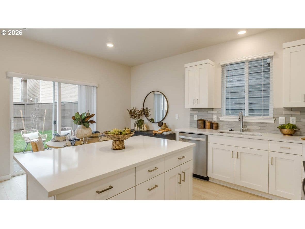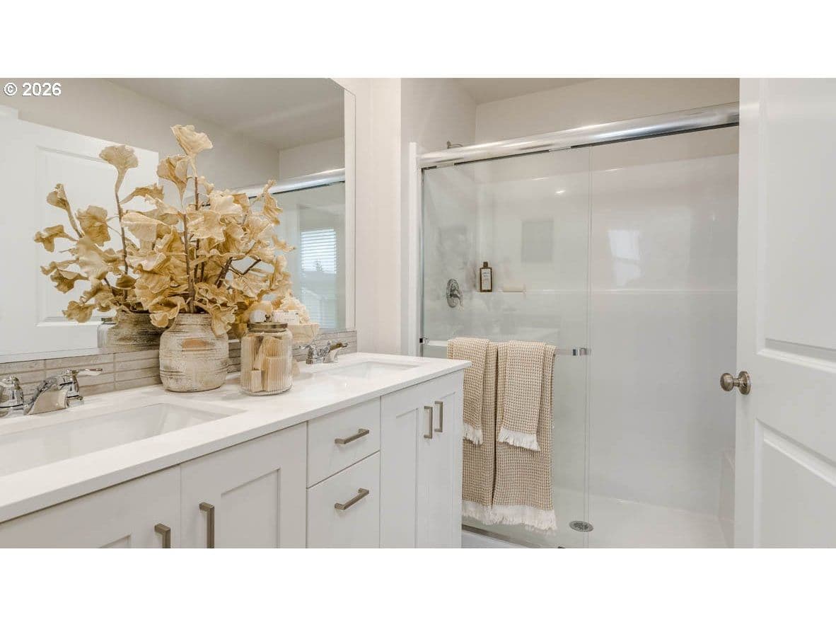 Welcome to the fabulous 2,042 square feet Rockwood floor plan at Butler Creek Crossing in Gresham featuring 5 bedrooms, 3 bathrooms, and an attached 2-car garage. This two-story layout includes a full bedroom and bathroom on the main floor, ideal for a guest room or home office with added privacy. The open concept design flows through the living room, dining area, and kitchen, where you’ll find stylish shaker cabinetry, solid surface countertops, stainless steel appliances, a large kitchen island, pantry, and a free-standing range oven. Cozy up by the fireplace for the perfect movie night setting. Upstairs, four additional bedrooms provide space for everyone, while the convenient upper-level laundry room makes daily routines easier. The primary bedroom is a relaxing retreat with an en suite bathroom, double vanity, walk-in shower, and a walk-in closet. The upstairs hall bathroom is centrally located for easy access. Located between Happy Valley and Gresham, Butler Creek Crossing offers the best of both towns. Receive a closing cost credit with use of builder’s preferred lender, reach out for more details. Photos are representative of plan only and may vary as built. Schedule a tour today and secure your gorgeous new home at Butler Creek Crossing!