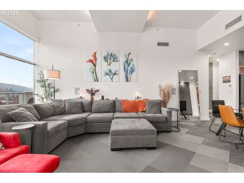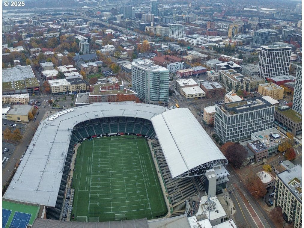 Experience elevated urban living in this exceptional 16th-floor penthouse at The Civic, where a rare 42-foot private balcony offers sweeping views of Portland’s skyline and Providence Park. From this vantage point, enjoy front-row access to Portland Timbers and Thorns matches, concerts, and city lights. Recently remodeled, the residence features a chef-inspired kitchen with high-end appliances, quartz countertops, and custom cabinetry. The open-concept great room is enhanced by floor-to-ceiling windows, premium flooring, and an upgraded wet bar—perfect for entertaining. The primary suite is a luxurious retreat with a spa-like en-suite bath, soaking tub, walk-in shower, and a spacious walk-in closet. A versatile second bedroom provides space for guests, a home office, or additional living. With soaring 12-foot ceilings and an oversized storage area, this penthouse combines comfort and sophistication. The Civic is a LEED Gold-certified building offering 24-hour concierge service, secured entry, and a pet-friendly environment. Two deeded parking spaces are included. Located in the heart of Goose Hollow, this residence provides easy access to NW 23rd Avenue, the Pearl District, MAX light rail, and Portland’s finest restaurants, cafés, and shops. This is a rare opportunity to own a premier penthouse with unmatched views, luxury finishes, and unbeatable urban access.Bike Score: 91. Walk Score: 98.