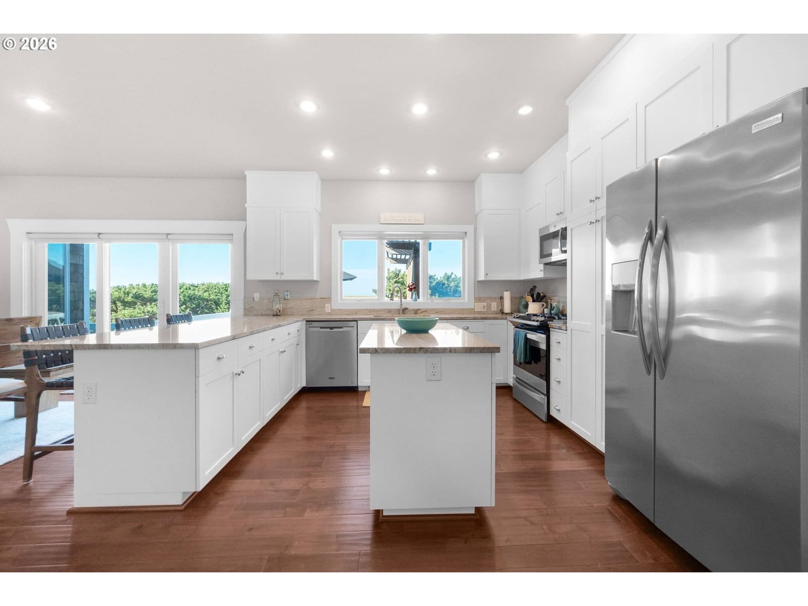 OCEANFRONT in the The Highlands! A gated & Premier Coastal- 9 Hole Executive Golf course Community located in Gearhart, OR. Direct beach access out your door!This beautiful home is perfectly sited between the Pacific Ocean & the pristine Golf Course. Embodying Coastal Charm throughout & encapsulating a serene and natural setting. Thoughtfully designed with an inviting open floor plan bringing the spacious living area gracefully into the dining and kitchen areas. Large west facing deck, ideally located off the dining area, to enjoy gathering, outdoor dining, ocean breezes, and amazing sunsets! Outdoor firepit. Boasting 4 bedrooms -{w/ 2 ensuites} w/ 1 bedroom which could also be a bonus room or office. 4 bathrooms. Amenities include a Community board walk, + tennis, pickleball & basketball courts.A truely special neighborhood!