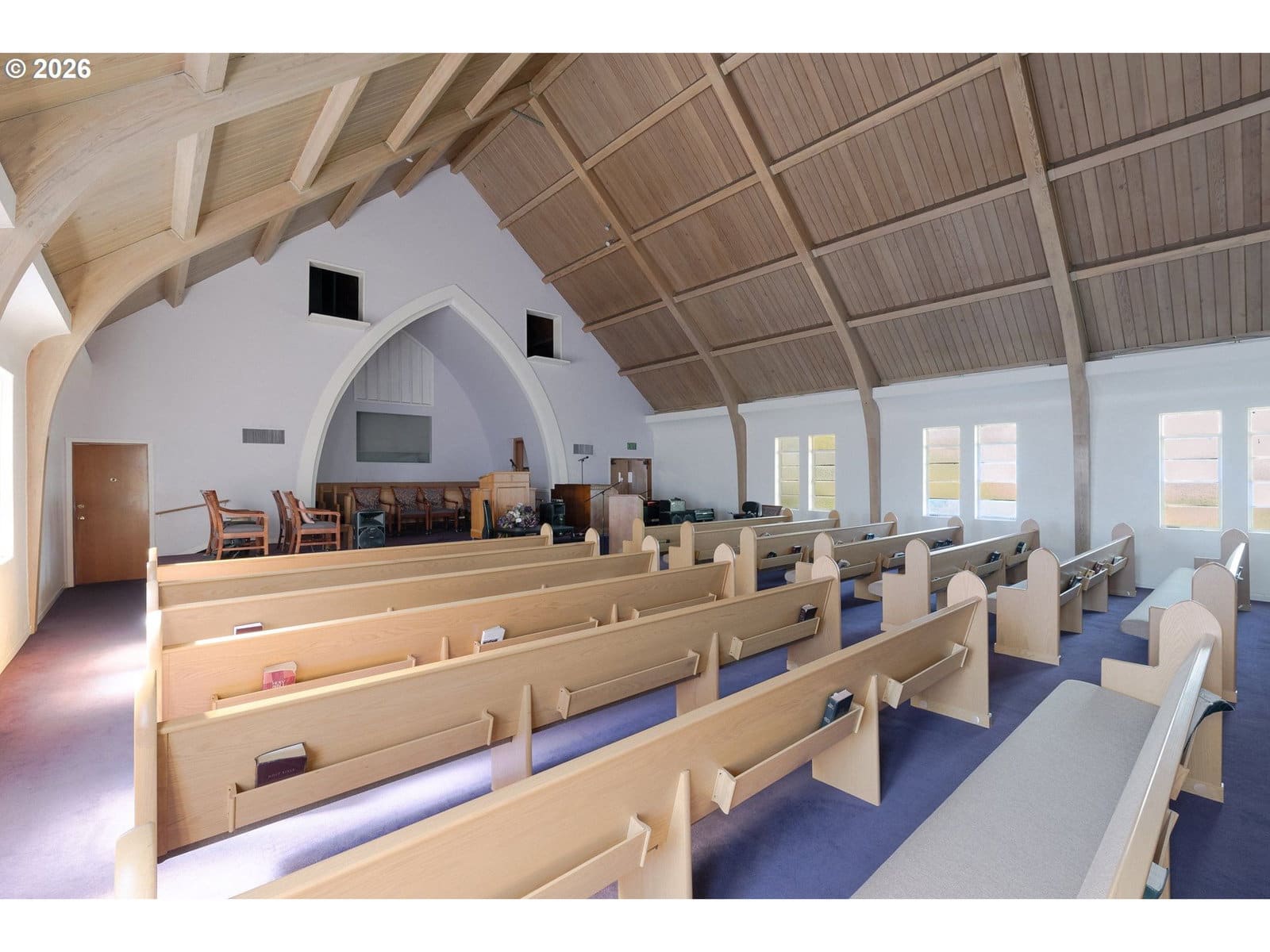 16days on marketCharming church property in Northeast Portland’s desirable Concordia neighborhood, situated on a prominent corner lot spanning two tax lots totaling 0.53 acres. This unique offering includes the main church building and an adjacent lot, both zoned R5 (Residential 5,000), presenting exciting potential for future development such as middle housing options (cottage clusters, triplexes, fourplexes, sixplexes, and more). Buyer to perform all due diligence regarding development possibilities. The property includes Tax Lots R191035 (0.34 acres), featuring the church building and parking area, and R191036 (0.19 acres), both to be sold together. Inside, the main-level sanctuary seats approximately 160 and includes additional office space. The lower level features a kitchen that opens to a large multi-purpose area, along with two restrooms. An additional half bath is located on the upper level. The building offers abundant space and storage throughout. This property is being sold as-is, with no repairs to be made by the seller. Shown by appointment only. With its flexible layout and prime location, this property also presents excellent potential for alternative uses such as a childcare center, private or charter school, or other community-focused opportunities.
