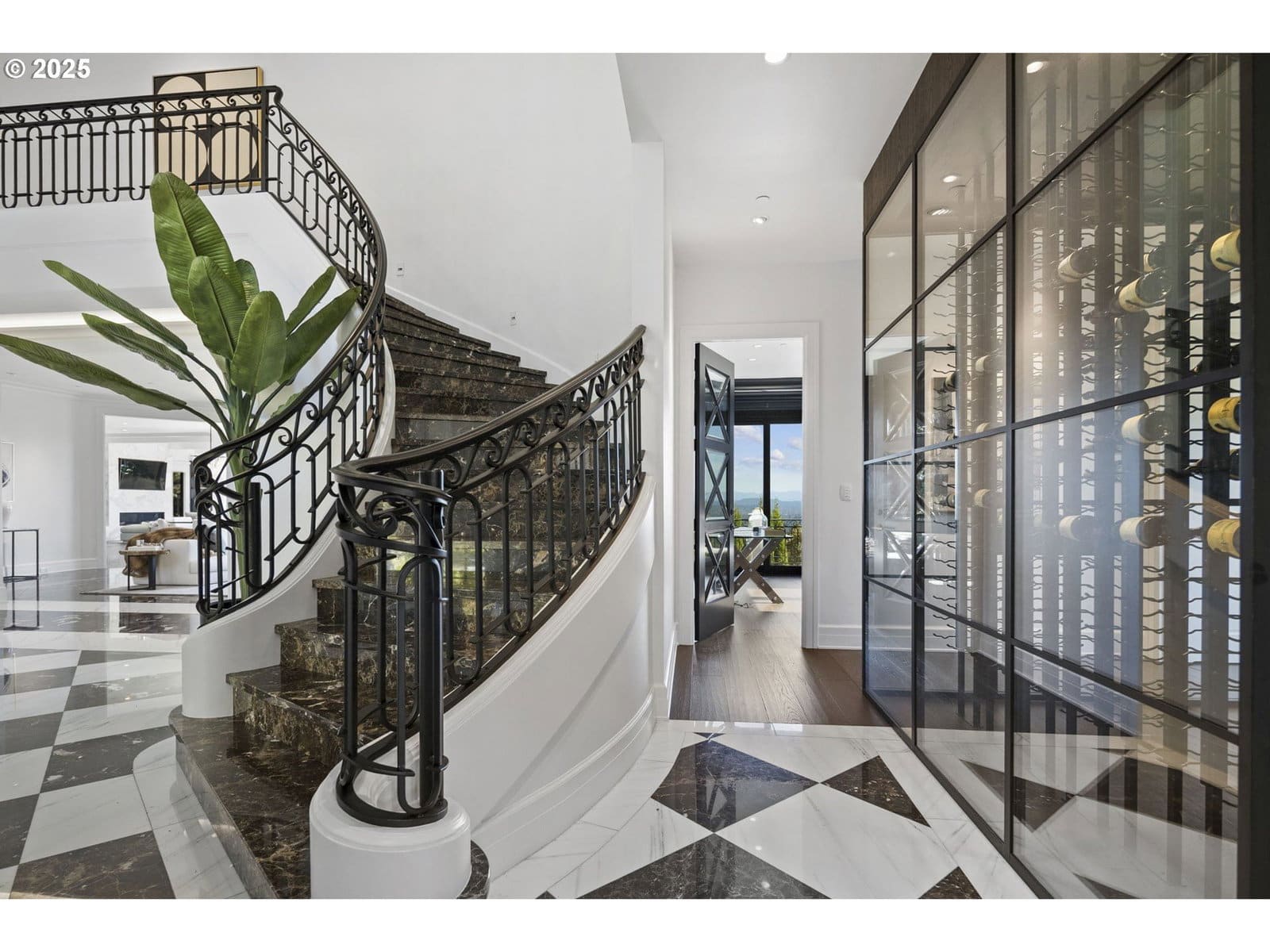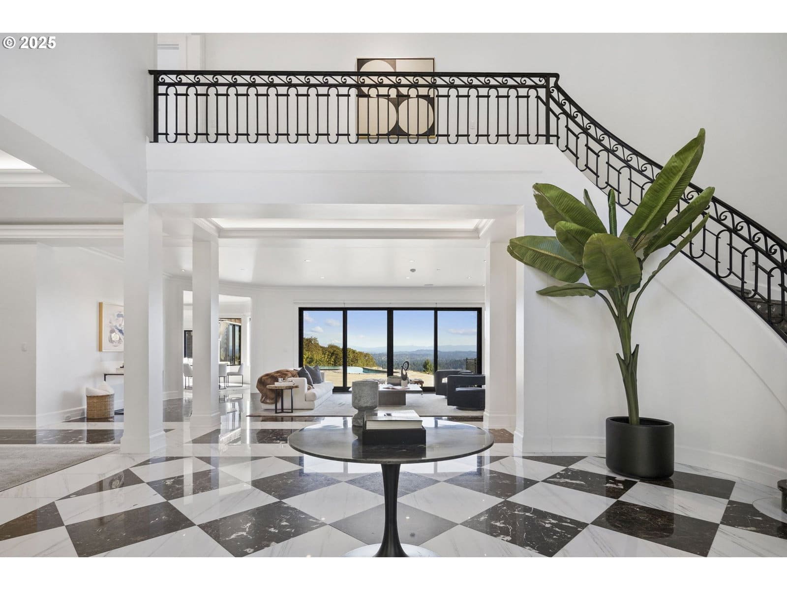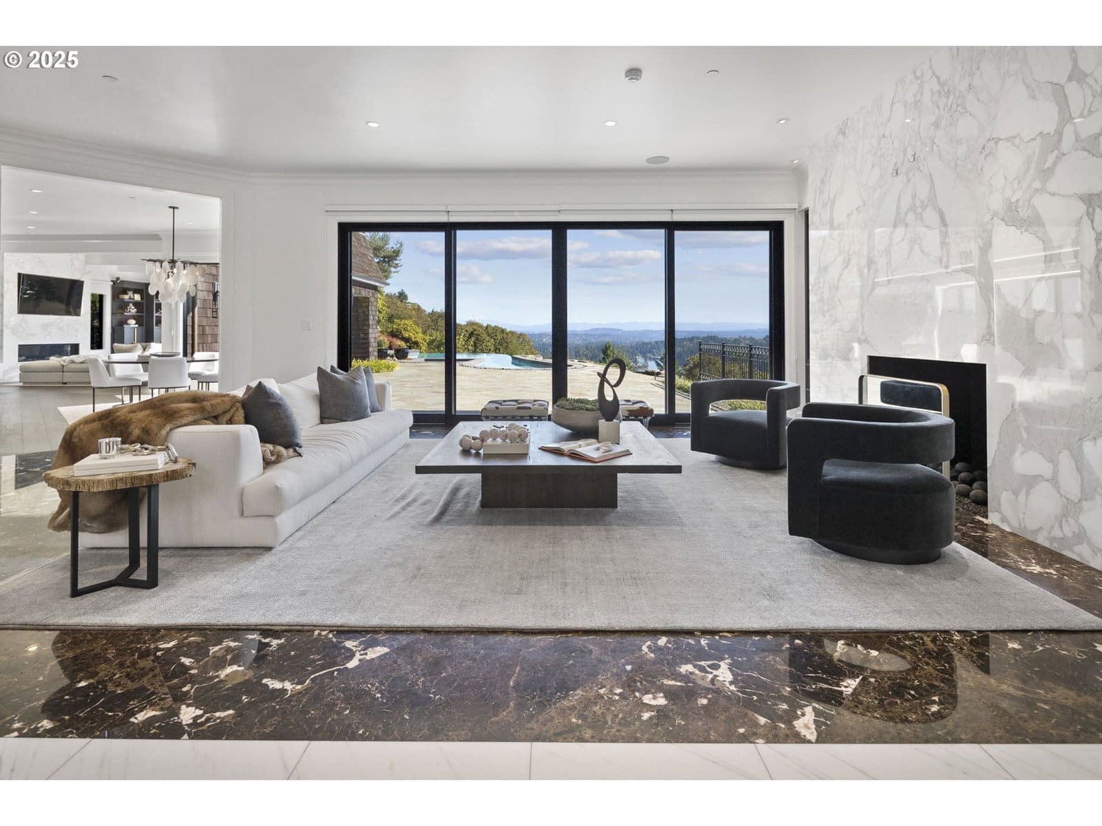 Reimagined, refined, and refreshed, this five-star resort-style estate atop Uplands Ridge at the crest of Iron Mountain is a masterwork of design and a celebration of Pacific Northwest beauty. Set on 1.38 acres with sweeping views of Mt. Hood, Oswego Lake, and the Willamette Valley, this 7,568 sq. ft. With 4 bedrooms, 6.1 baths, all guest bedrooms feature en suites, and the primary suite boasts heated floors, steam shower, and his and hers walk in closets. Originally designed by Dale Lumpkin and featured in Architectural Digest & the feature film 'Extraordinary Measures', has been re-envisioned by John Tercek and Stoneridge Custom Development. The transformation features a 93-foot infinity-edge pool and spa over looking Iron Mountain Park, Oswego Lake and beautiful Mt. Hood. Inside you'll find a glass-enclosed wine gallery, a reimagined baths and kitchen with Miele and Sub Zero appliances, Carrara marble, designer lighting, 4 fireplaces and striking black-frame windows and doors. With its gated entry, four-car garage, home theater, gas generator, gym, sauna, and seamless connection between indoor and outdoor living, this home stands as one of Lake Oswego’s most distinguished estates, where timeless architecture, modern refinement, and breathtaking views converge. Uplands lake easement.