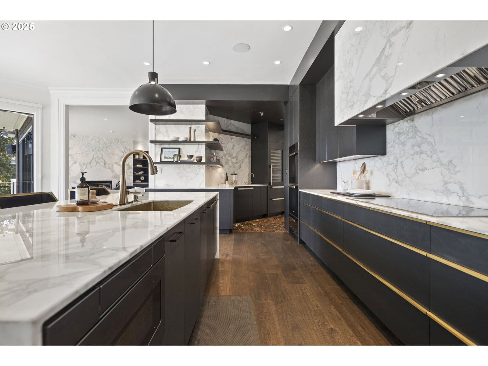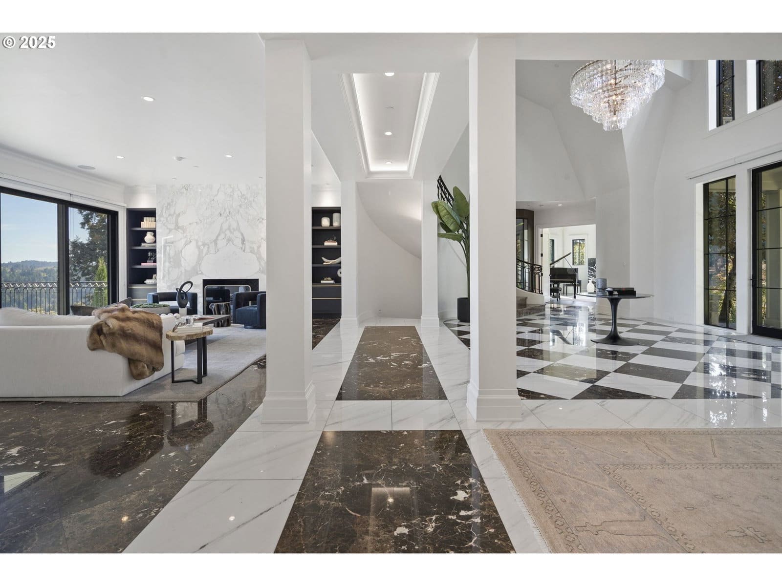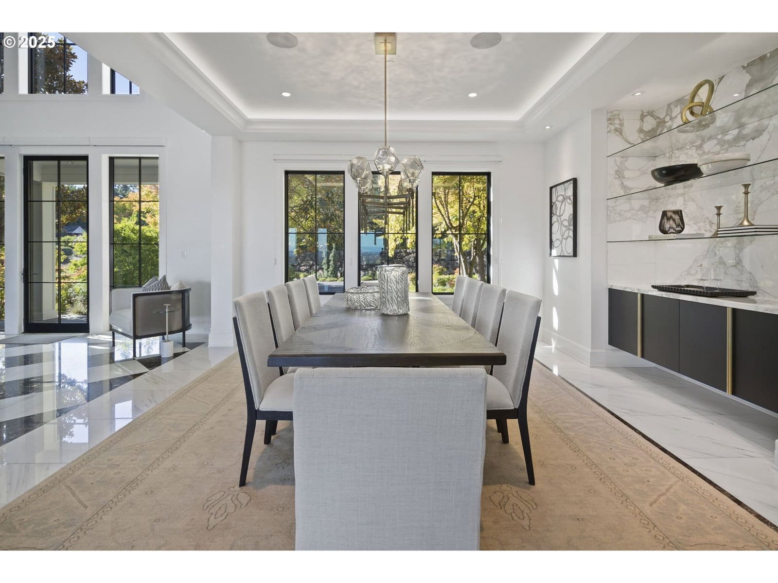 Reimagined, refined, and refreshed, this five-star resort-style estate atop Uplands Ridge at the crest of Iron Mountain is a masterwork of design and a celebration of Pacific Northwest beauty. Set on 1.38 acres with sweeping views of Mt. Hood, Oswego Lake, and the Willamette Valley, this 7,568 sq. ft. With 4 bedrooms, 6.1 baths, all guest bedrooms feature en suites, and the primary suite boasts heated floors, steam shower, and his and hers walk in closets. Originally designed by Dale Lumpkin and featured in Architectural Digest & the feature film 'Extraordinary Measures', has been re-envisioned by John Tercek and Stoneridge Custom Development. The transformation features a 93-foot infinity-edge pool and spa over looking Iron Mountain Park, Oswego Lake and beautiful Mt. Hood. Inside you'll find a glass-enclosed wine gallery, a reimagined baths and kitchen with Miele and Sub Zero appliances, Carrara marble, designer lighting, 4 fireplaces and striking black-frame windows and doors. With its gated entry, four-car garage, home theater, gas generator, gym, sauna, and seamless connection between indoor and outdoor living, this home stands as one of Lake Oswego’s most distinguished estates, where timeless architecture, modern refinement, and breathtaking views converge. Uplands lake easement.