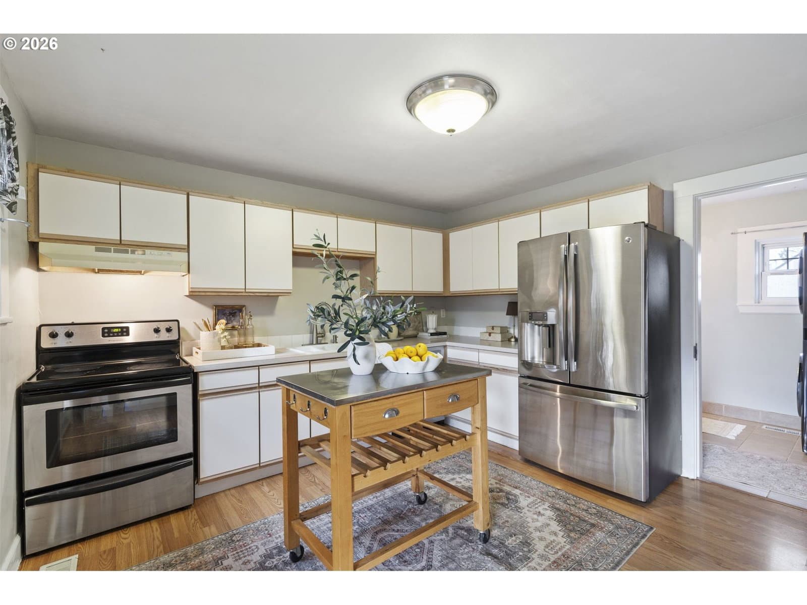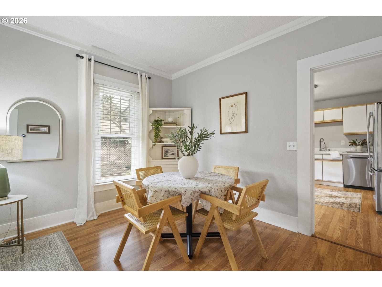 This 2-bedroom home at 7035 N Catlin Avenue captures everything people love about St. Johns living. Natural light pours through the windows, the backyard is an entertainer's dream, and you're walking distance to everything that makes this neighborhood special.The living room flows beautifully into the kitchen featuring stainless appliances and a brand-new dishwasher. The refreshed bathroom includes convenient in-unit laundry with new washer and dryer. A two-year-old high-efficiency heating and AC system with Nest controls keeps you comfortable year-round.But the real magic happens outside. The current owners transformed the fully fenced backyard into a gardener's paradise that's hosted countless summer BBQs, birthday celebrations, and dinner parties under the stars. Established garden beds line the space, while a generous paver patio provides the perfect stage for outdoor dining. There's covered parking for your RV or boat, an extra-deep detached garage that's been freshly painted and refinished, and exterior basement access for storage.The home sits on an oversized corner lot in the heart of St. Johns, putting you steps from Cathedral Park with its stunning St. Johns Bridge views. Downtown St. Johns' eclectic restaurants, coffee shops, and boutiques are an easy stroll away, while quick access to downtown Portland and the Pearl District means you're never far from the city's best offerings.This is the kind of home where you can picture your life unfolding naturally. Morning coffee in the kitchen, afternoons tending your garden, evenings hosting friends on the patio, and weekends exploring one of Portland's most walkable neighborhoods. The current owners built the beginning of their life together here. Now it's ready for your story. [Home Energy Score = 4. HES Report at https://rpt.greenbuildingregistry.com/hes/OR10215320]