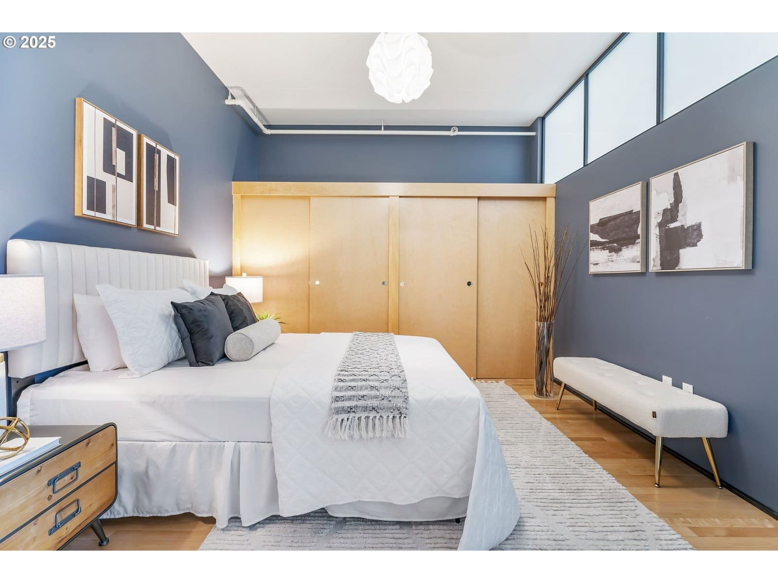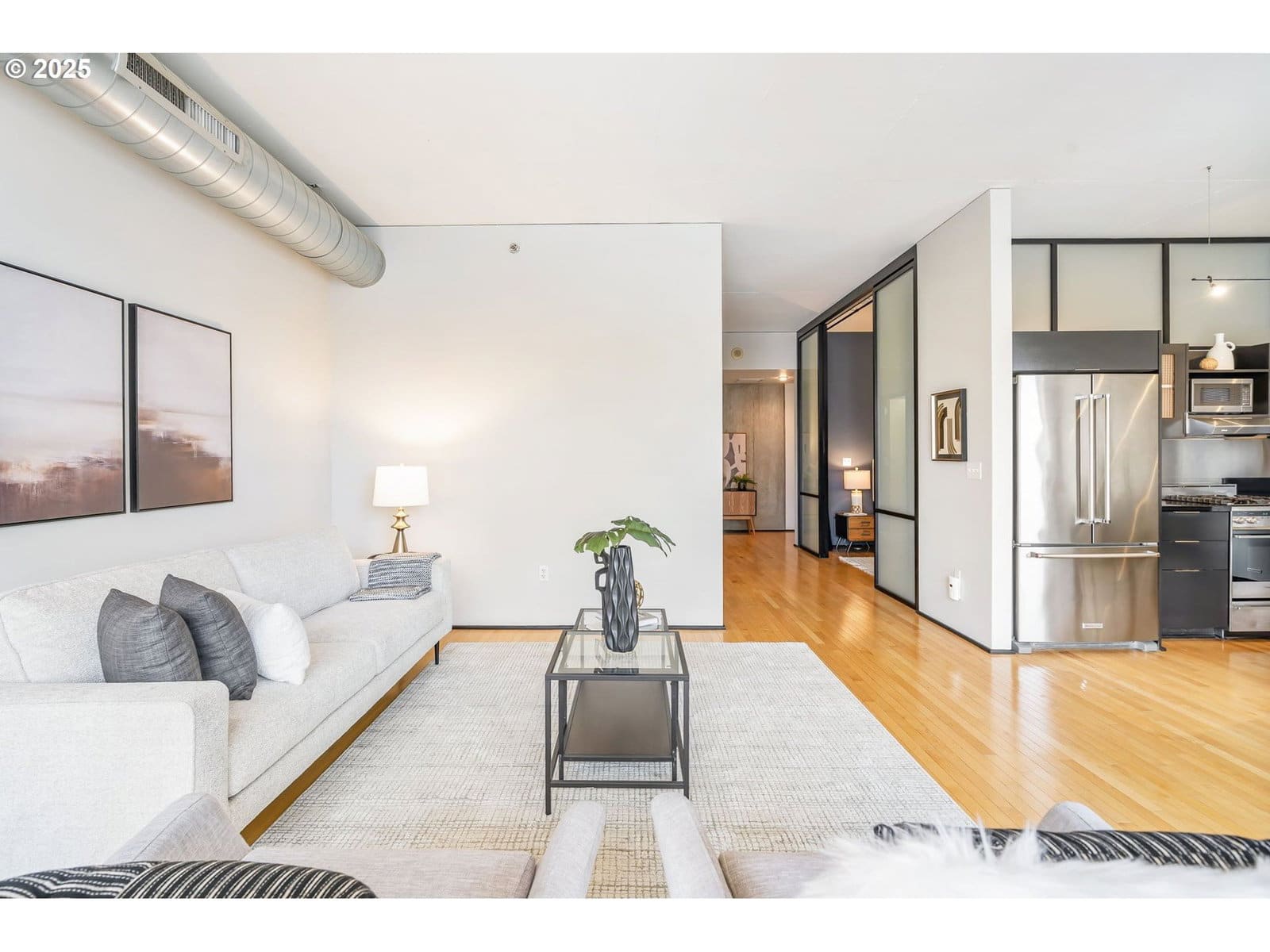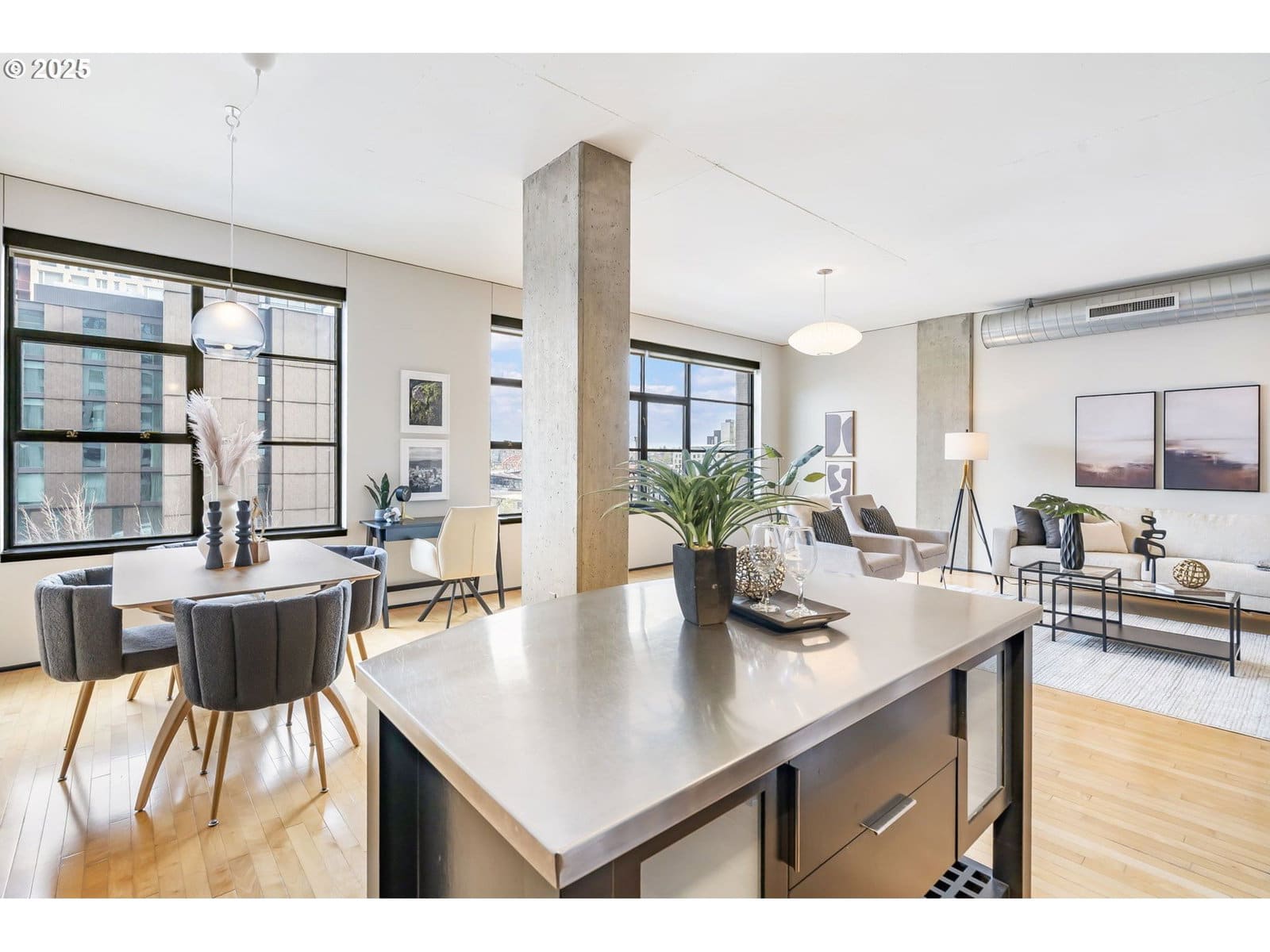 PRICED TO SELL! Stunning, light-filled 1BR condo with expansive city views of Portland landmarks, including Union Station, the Broadway Bridge, and Mt St Helens! Enjoy the very best of city living in the Pearl District at the Elizabeth! This immaculate 1-bed, 1-bath loft is move-in ready. Enjoy bright, open living with tall ceilings, gorgeous North-facing views, generous living spaces, and a Juliet balcony. This home has many enhancements and updates, including a state of the art kitchen, designer tile in the bathroom, and built-in storage options. The kitchen features granite counters, stainless steel gas appliances, and a rolling island. This unit has one of the best layouts, with a spacious living room that has room for a desk if you need to work from home. Designer lighting, hardwood floors, A/C, and an in-unit laundry/storage room that can double as a walk in closet. All appliances (including washer, dryer, and refrigerator) are included. Comes with a deeded parking spot for maximum convenience. The Elizabeth offers a full-time concierge, a community room with a library, outdoor grilling space, and bike parking. Don’t miss out on this lovely home in one of the best buildings in the Pearl. Come check it out today. Call for your private showing. MUST SEE!