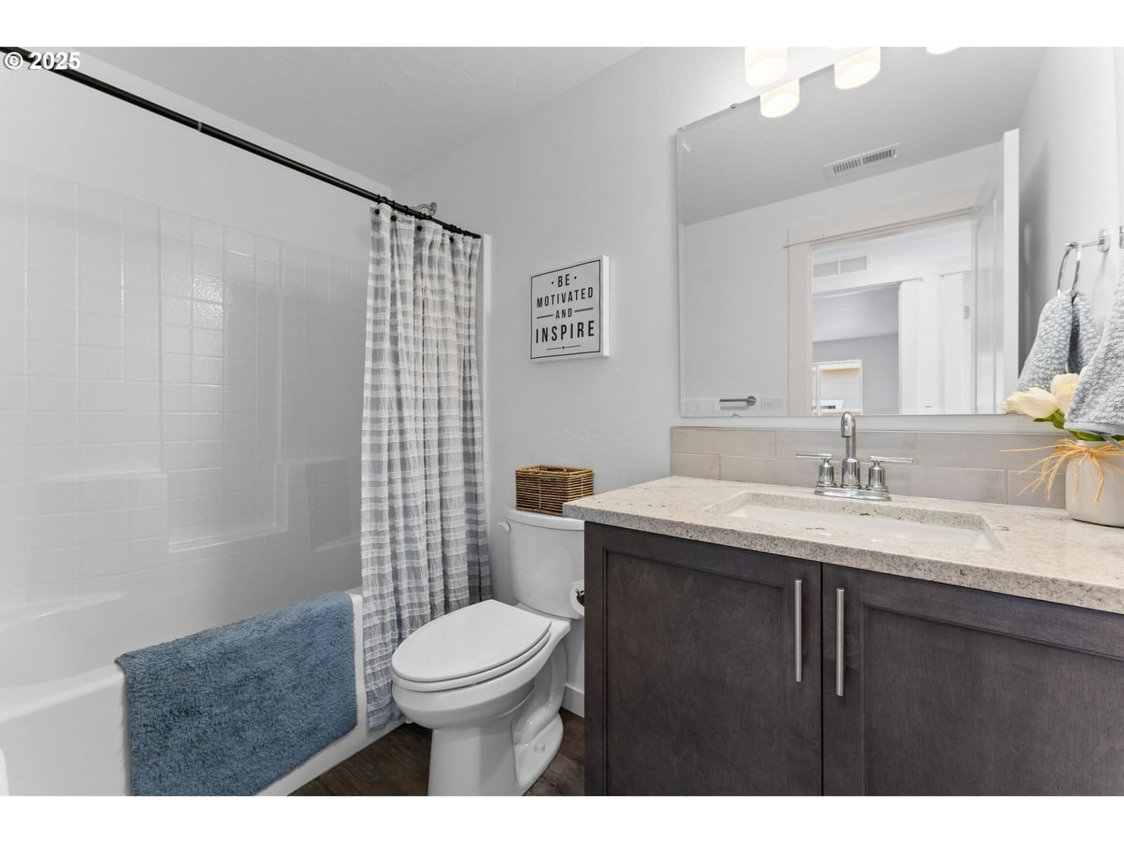 The Harrison is an designed two-story home that lives larger than most mid-sized plans. The main level offers a spacious suite with an ensuite bath and dual vanity. The open living room flows easily into the dining area and kitchen, featuring generous counter space, abundant cabinetry, and plenty of natural light from extra windows. Upstairs, two bedrooms with large closets share a full bathroom— Loft area great for hobbies, or a home office. Home also includes 4" Craftsman-style trim and dual-zone heating for year-round comfort, landscape front and backyard with sod and underground sprinklers. Located in Thurston and nearby schools, hospitals, grocery stores, and scenic trails, all within a welcoming community setting.*Photos are of like home. Estimated completion early Spring 2026.