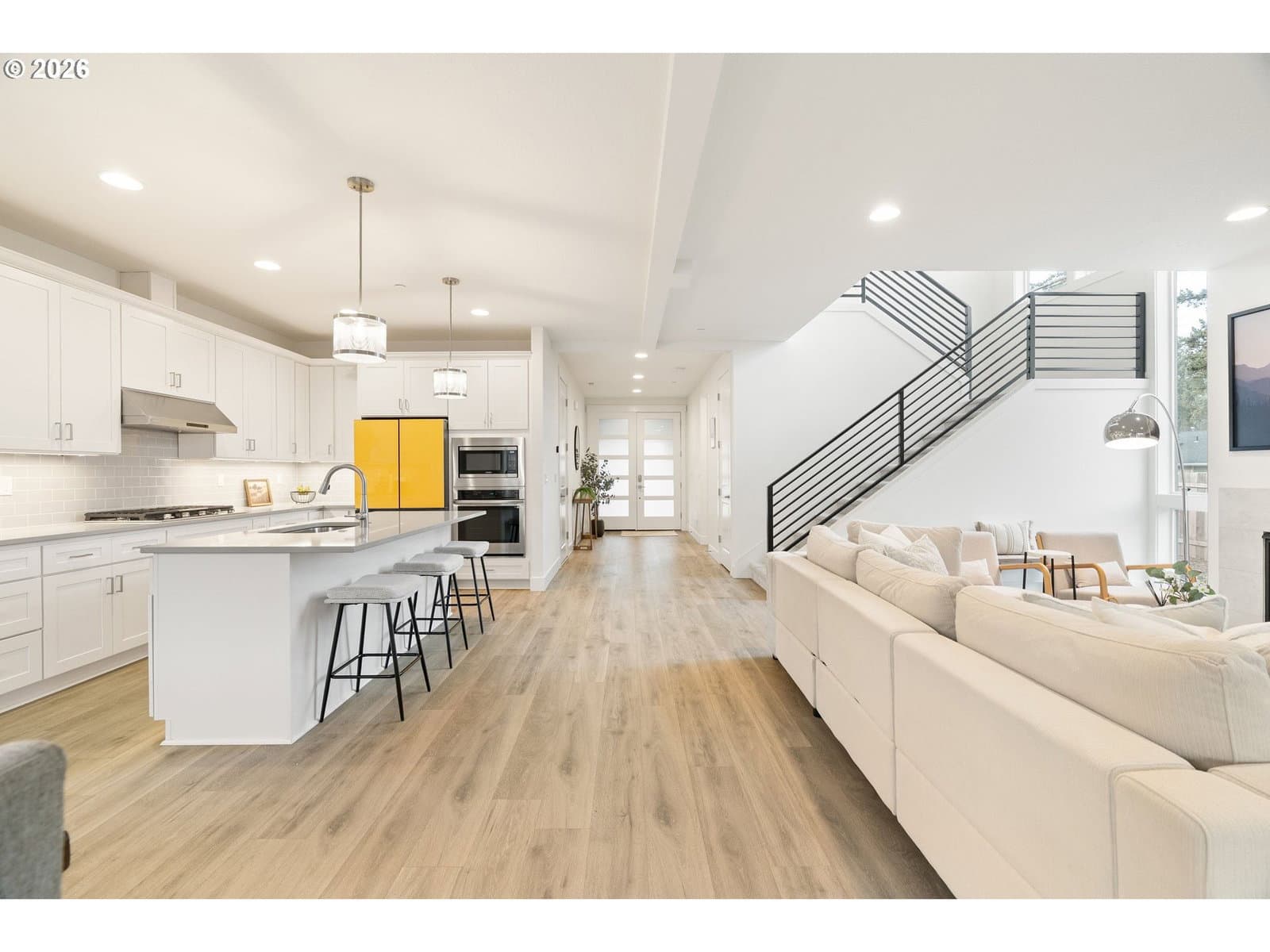 Better Than New – Built in 2022 | Designer Upgrades Throughout!Stylized contemporary home built in 2022 — like new, only better. This stunning open-concept design features soaring ceilings and luxury vinyl plank flooring throughout the main level.The gourmet kitchen is a true showstopper, offering abundant cabinetry, a large center island, and high-end finishes — perfect for entertaining or everyday living. The formal dining area overlooks the backyard, creating a seamless indoor-outdoor feel.The inviting great room impresses with dramatic high ceilings, walls of windows that flood the space with natural light, and a cozy gas fireplace as the focal point.Custom metal stair railings, designer lighting, and thoughtfully selected finishes elevate the entire home.Additional highlights include: Covered front entry, oversized garage with extra-large storage space. EV charger in garage. Covered patio ideal for outdoor entertainingModern design, functional layout, and premium upgrades all minutes to downtown, OHSU, New Seasons, and more! Unincorporated WA Co/COP. [Home Energy Score = 5. HES Report at https://rpt.greenbuildingregistry.com/hes/OR10243863]