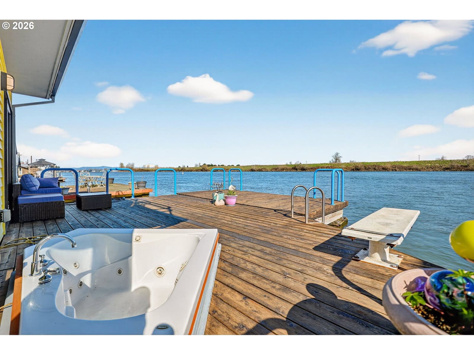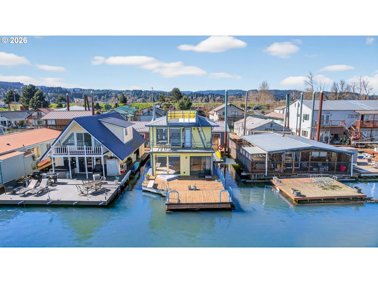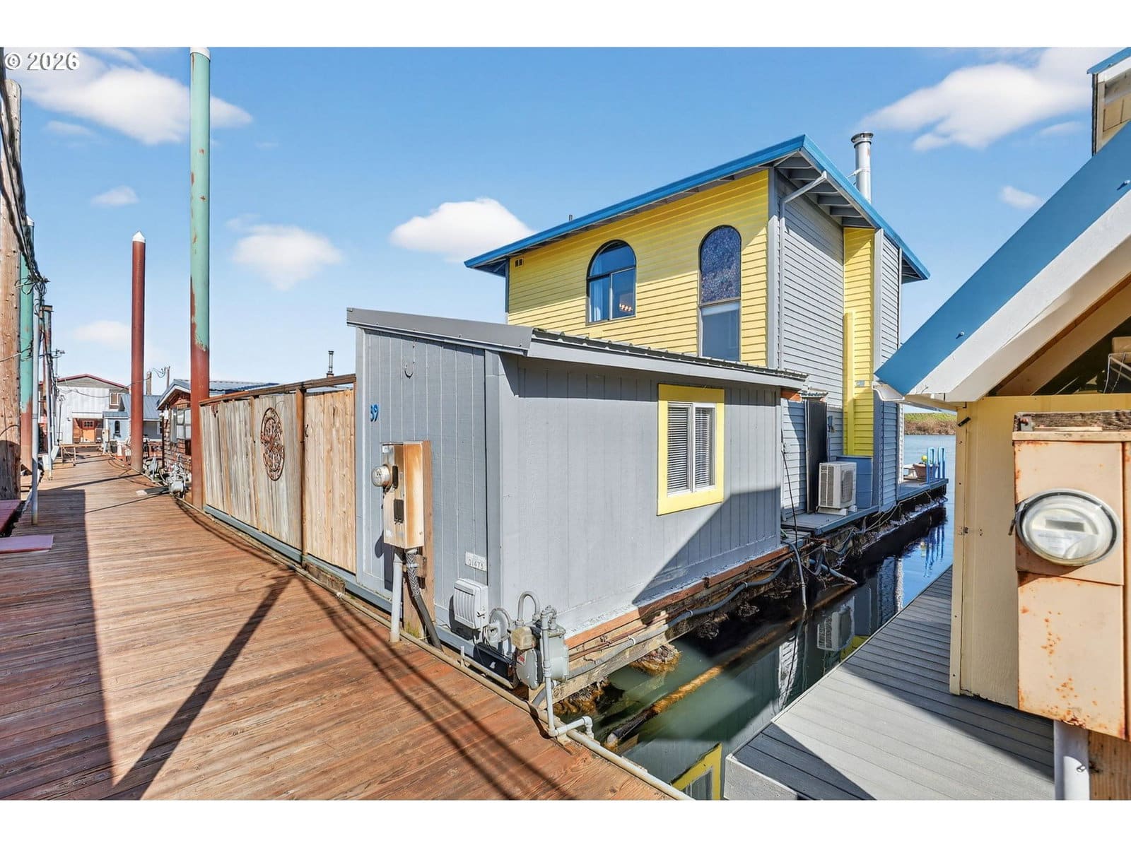 Rare slice of paradise! Enjoy your coveted spot on the open channel in Paradise Moorage. What does paradise mean to you? Water and mountain views plus ever-changing wildlife scenery outside your floor-to-ceiling windows? Boating, kayaking or paddle boarding anytime you want? Room to park your boat next to the swim float, plus extra space and ramp to pull in and dry dock your kayak, canoe, or paddle board on the side of the house. Or, is your version of paradise fishing for salmon, steelhead, walleye, bass, and sturgeon right off your back deck? Grab the binoculars, you are directly across from Sauvie Island, giving you the best birdwatching (think bald eagles, swans, sandhill cranes). How about a hot whirlpool bath overlooking the river? Or just enjoying the laid back vibe of living on water? Being at this floating home is like a vacation everyday with wonderful outdoor living spaces, including main floor deck with whirlpool tub, swim float, gated and fenced front courtyard, 2nd floor balcony with views of the mountains and 3rd floor crows nest, roof-top deck, with 360 degree views. This special house has two beds and two baths plus bonus living space in the detached structure, can be used for home office, bunk house, or extra storage. Rare gated and fenced front courtyard offers some privacy and a shady spot for coffee and breakfast in the morning. Recently updated kitchen has custom cabinets, newer stainless steel appliances and beautiful granite countertops. Energy efficient mini-split heating and cooling on both levels. Upstairs you can watch the sunrise over Mt Hood from your bed in the morning. There is a Jack and Jill bath (enter from either bedroom) with double sinks, granite and a newly refinished tub/shower combo. Downstairs is another full bath with stand up shower. Full size washer and dryer included. New custom Bali blinds can be pulled down for total privacy, but keep them up for rainbows and sunrises! This home is financeable, float rating 3. 2 reserved car parking spaces, boat parking on water or gated RV and boat parking also available through moorage. Dogs have a 30 pound limit.
