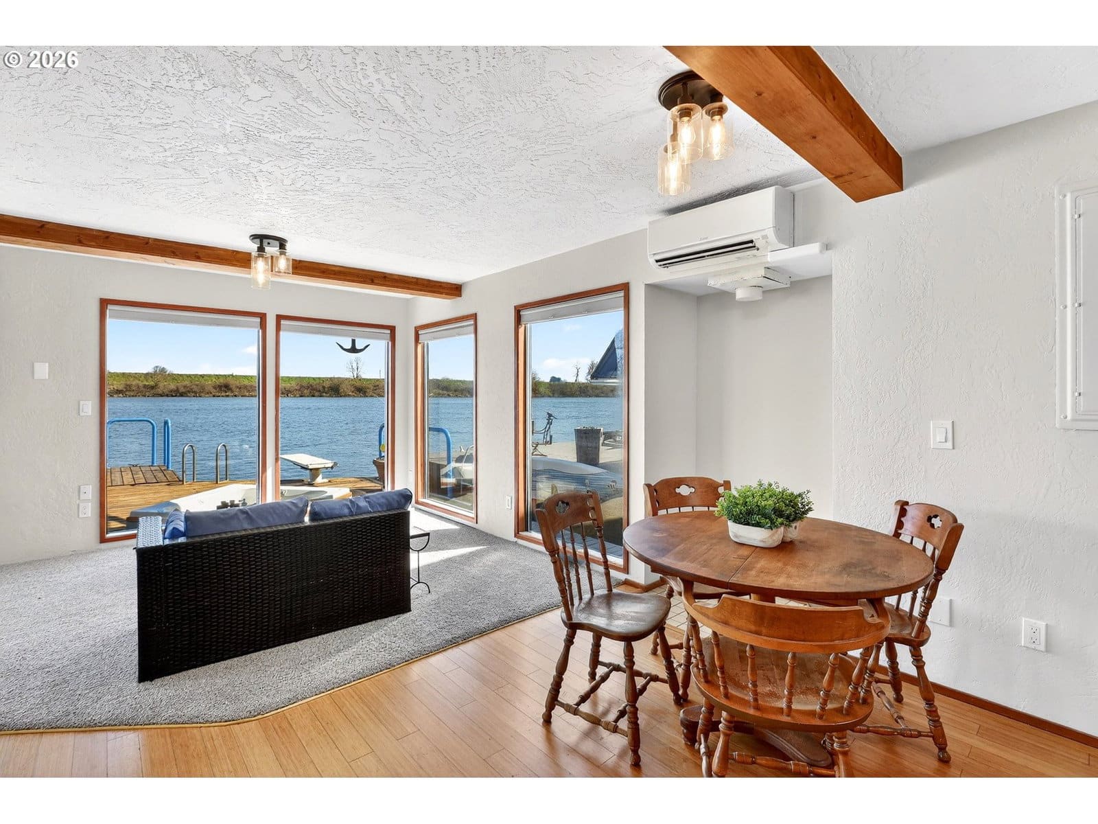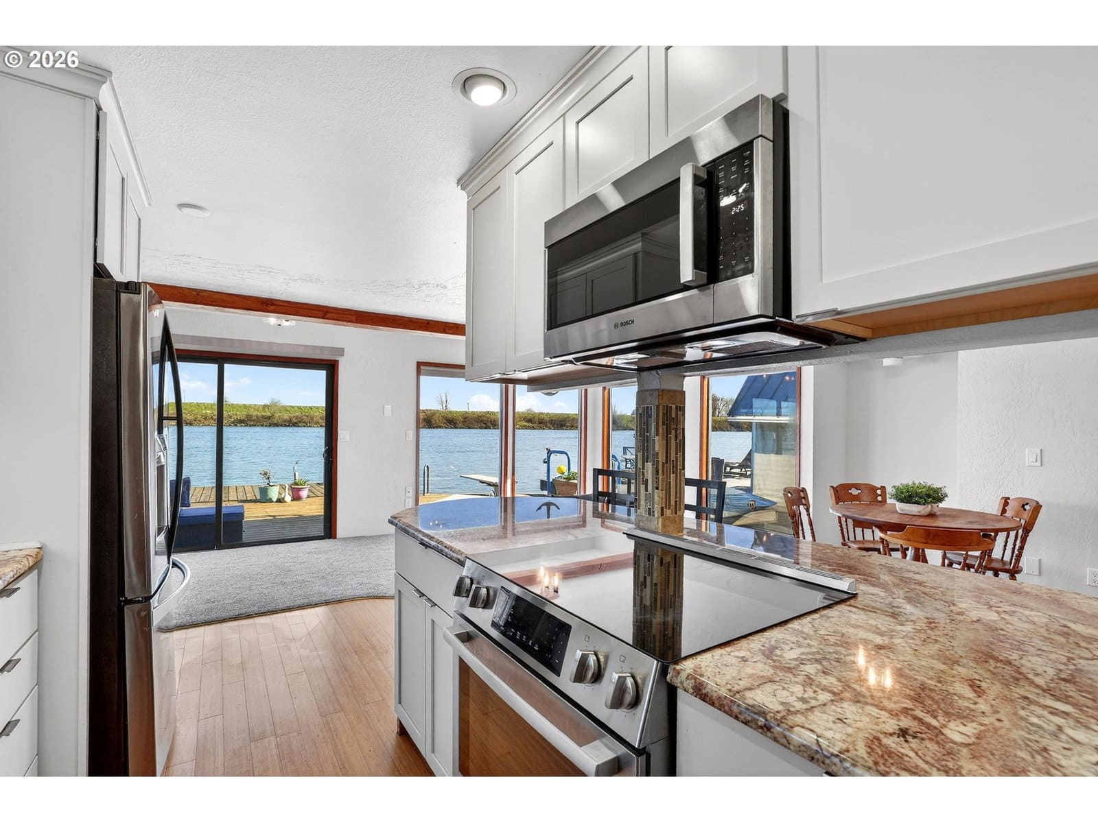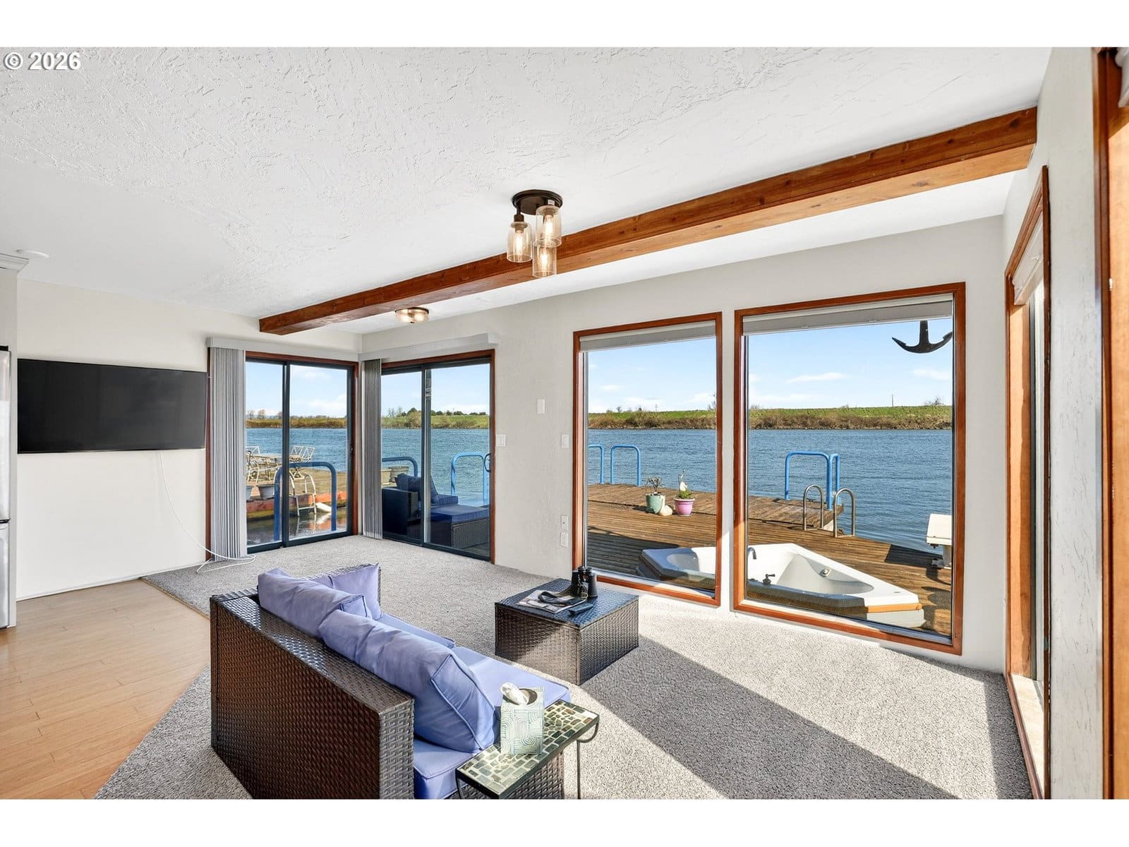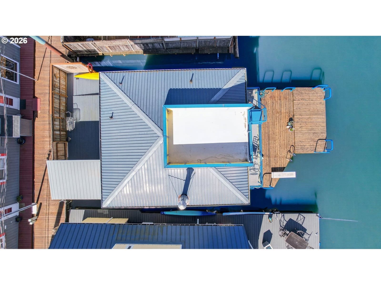 Rare slice of paradise! Enjoy your coveted spot on the open channel in Paradise Moorage. What does paradise mean to you? Water and mountain views plus ever-changing wildlife scenery outside your floor-to-ceiling windows? Boating, kayaking or paddle boarding anytime you want? Room to park your boat next to the swim float, plus extra space and ramp to pull in and dry dock your kayak, canoe, or paddle board on the side of the house. Or, is your version of paradise fishing for salmon, steelhead, walleye, bass, and sturgeon right off your back deck? Grab the binoculars, you are directly across from Sauvie Island, giving you the best birdwatching (think bald eagles, swans, sandhill cranes). How about a hot whirlpool bath overlooking the river? Or just enjoying the laid back vibe of living on water? Being at this floating home is like a vacation everyday with wonderful outdoor living spaces, including main floor deck with whirlpool tub, swim float, gated and fenced front courtyard, 2nd floor balcony with views of the mountains and 3rd floor crows nest, roof-top deck, with 360 degree views. This special house has two beds and two baths plus bonus living space in the detached structure, can be used for home office, bunk house, or extra storage. Rare gated and fenced front courtyard offers some privacy and a shady spot for coffee and breakfast in the morning. Recently updated kitchen has custom cabinets, newer stainless steel appliances and beautiful granite countertops. Energy efficient mini-split heating and cooling on both levels. Upstairs you can watch the sunrise over Mt Hood from your bed in the morning. There is a Jack and Jill bath (enter from either bedroom) with double sinks, granite and a newly refinished tub/shower combo. Downstairs is another full bath with stand up shower. Full size washer and dryer included. New custom Bali blinds can be pulled down for total privacy, but keep them up for rainbows and sunrises! This home is financeable, float rating 3. 2 reserved car parking spaces, boat parking on water or gated RV and boat parking also available through moorage. Dogs have a 30 pound limit.