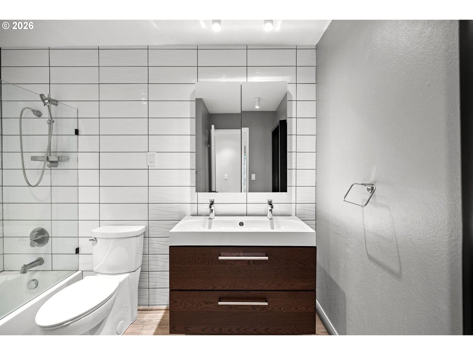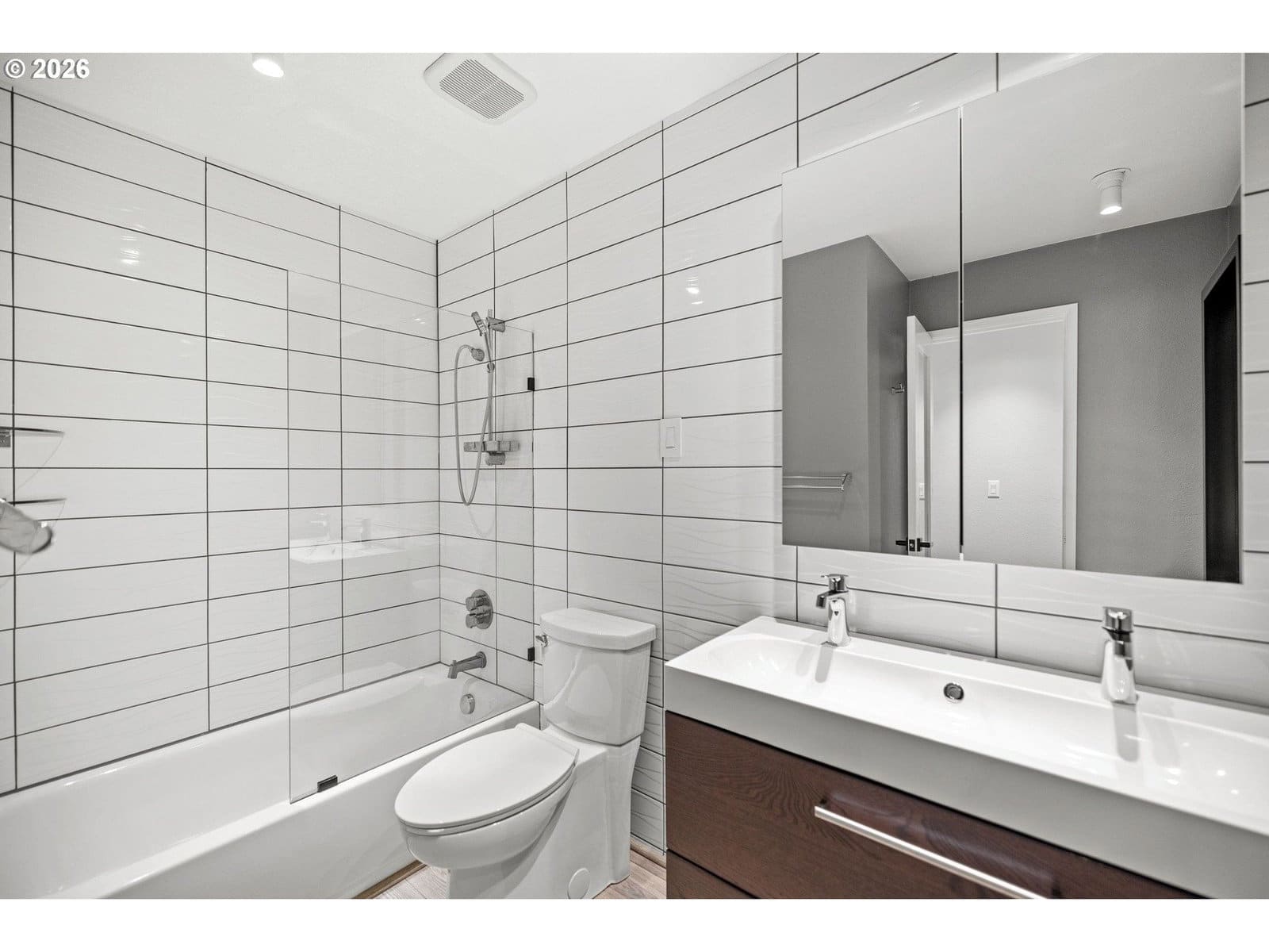 Nestled in a peaceful, established community, this beautifully updated end-unit condo blends modern style with everyday comfort. The open concept layout invites abundant natural light and creates an effortless flow between indoor and outdoor living spaces. The remodeled kitchen serves as the heart of the home, opened up for a more connected feel and featuring deep cabinetry, new stainless steel appliances, an induction range with convection oven and built-in air fryer, and both under and over cabinet lighting. A breakfast bar adds extra seating and functionality. The vaulted living room leads to a private, covered back patio—your own secluded retreat for relaxing or entertaining. The spacious primary bedroom includes a custom closet organizer and the second bedroom is thoughtfully positioned on the opposite end for added privacy. Located just steps from the renovated community pool and one block from Holly Farm Park. This home also offers easy access to schools, shopping, PCC Sylvania, and I-5. This is a must see home!