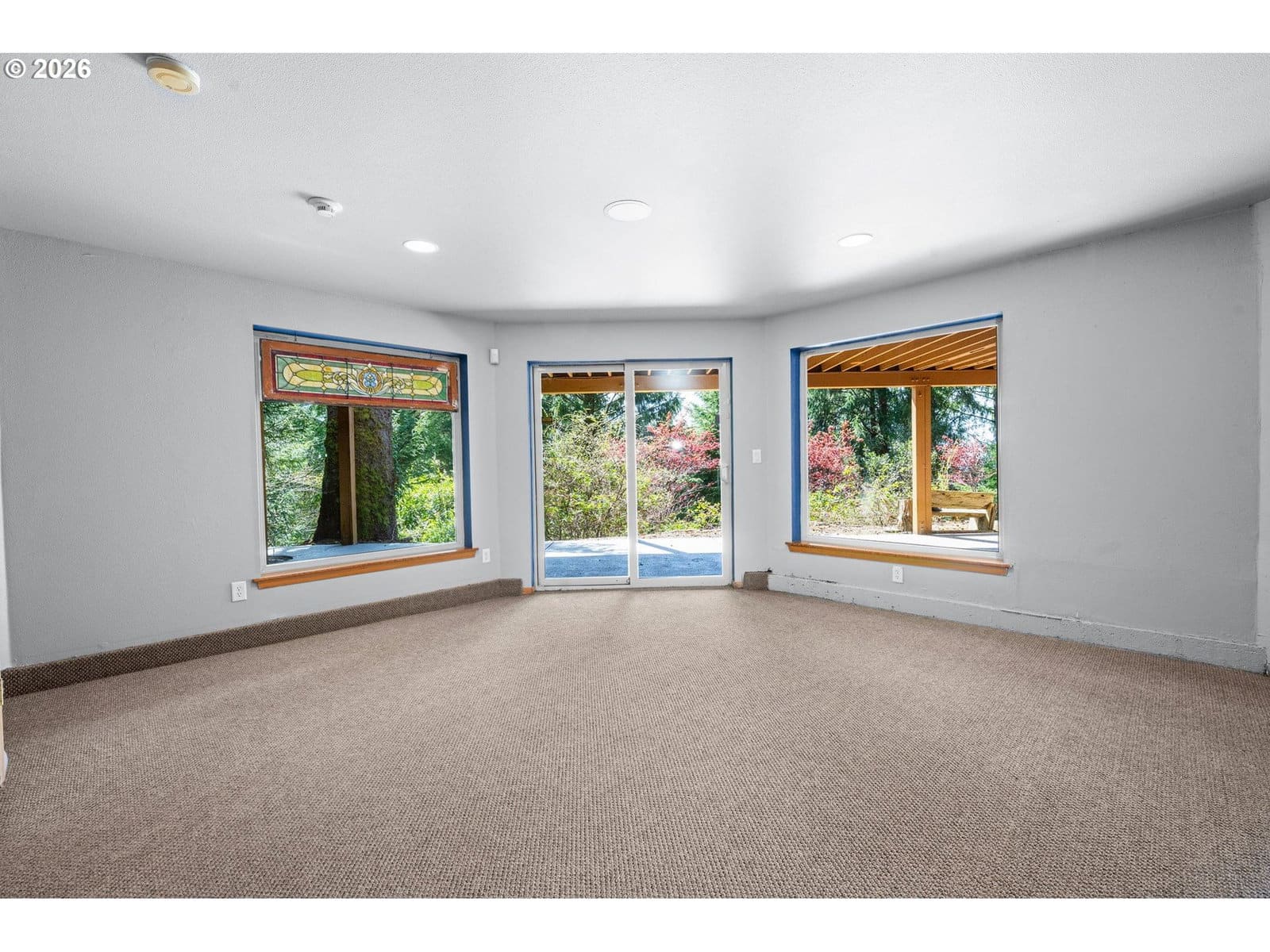 Step into this custom home where ocean views greet you. Vaulted knotty pine ceilings and expansive picture windows flood the space with natural light, seamlessly blending the indoors with the beauty outside. The main floor boasts two master ensuites and a full bath with a relaxing sauna. Versatile rooms with Murphy beds and built-in shelving invite endless possibilities, whether you dream of a craft room, home office, or a welcoming space for guests. The gourmet kitchen is equipped with high-end Viking appliances, while slate floors and a cozy fireplace create a warm, inviting atmosphere. Entertain on the sprawling ocean-view deck, complete with a hot tub and covered patio. Downstairs, a spacious family room an additional two bedrooms offer even more room to unwind. This secluded retreat sits on a generous lot, offering privacy and space to savor coastal living.