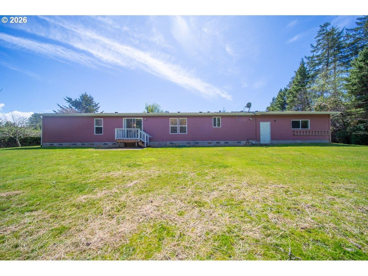 BANDON COUNTRY HOME SWEET HOME! At the end of the lane on the warm side of town yet minutes to everything Bandon has to offer, this Marlette 1782 sq. ft. home on .62 acre with many amenities: 3 bedrooms plus a bonus office or hobby room, an open floor plan with a living room plus a family room, a master suite with a bonus office area, walk-in closet & its own bathroom with a step in shower & skylight, a laundry room with Kenmore frontloading washer & dryer, lots of built-in cabinetry, shelves & storage, a dreamy south facing deck, fiber cement siding, an oversize 2 car garage with a workbench, 2 garage door openers & a handicap ramp, a huge, flat, useable yard with a fenced garden, raised beds, blueberries, fruit trees, apple & plum & drop dead gorgeous flowering perennials!
