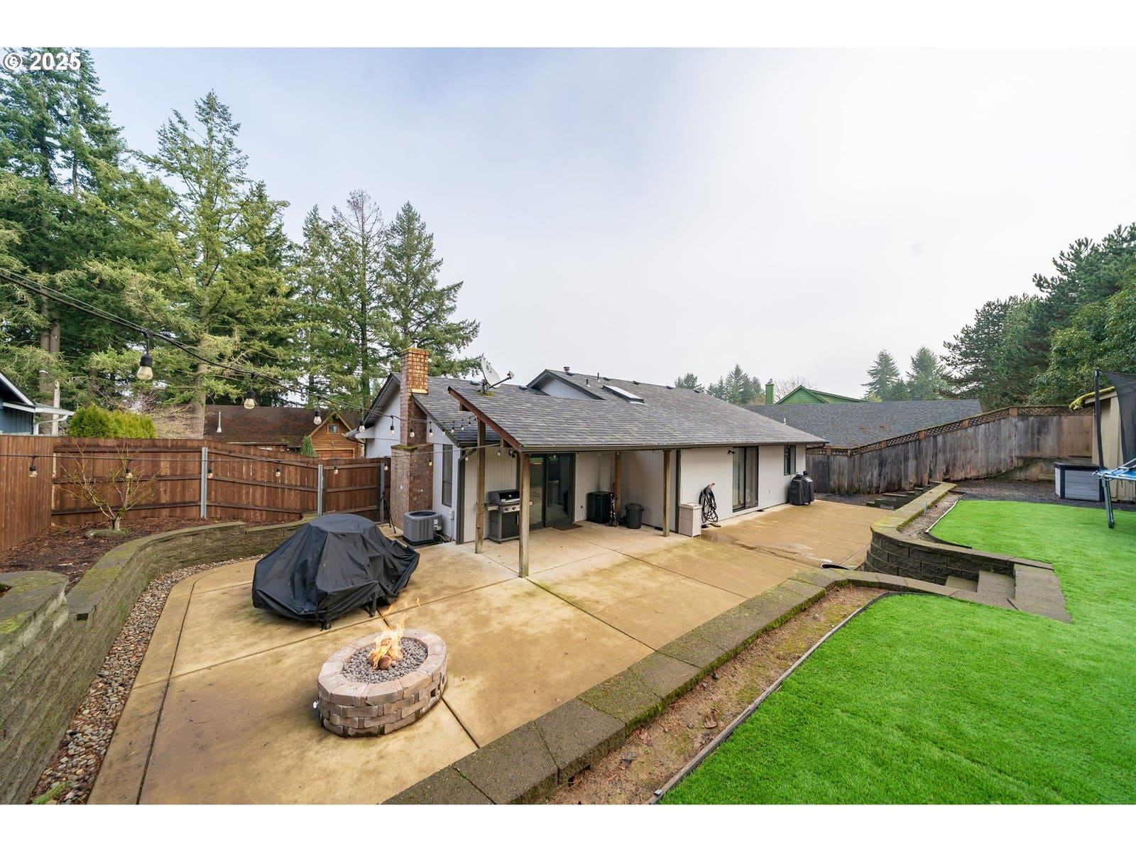 Beautiful 3 BD, 2 BA home with 1,369 sq ft & an entertainer’s dream backyard! Feats include an updated kitchen w/gas range, vaulted ceilings, cozy pellet stove, & A/C. The outdoor living space truly shines with a covered patio, built-in gas firepit, expansive concrete entertaining area, and fully terraced yard with low-maintenance artificial grass. The property backs up to Christmas tree farmland, offering privacy and amazing views. A perfect blend of comfort, style, and lifestyle — this home is a must-see!