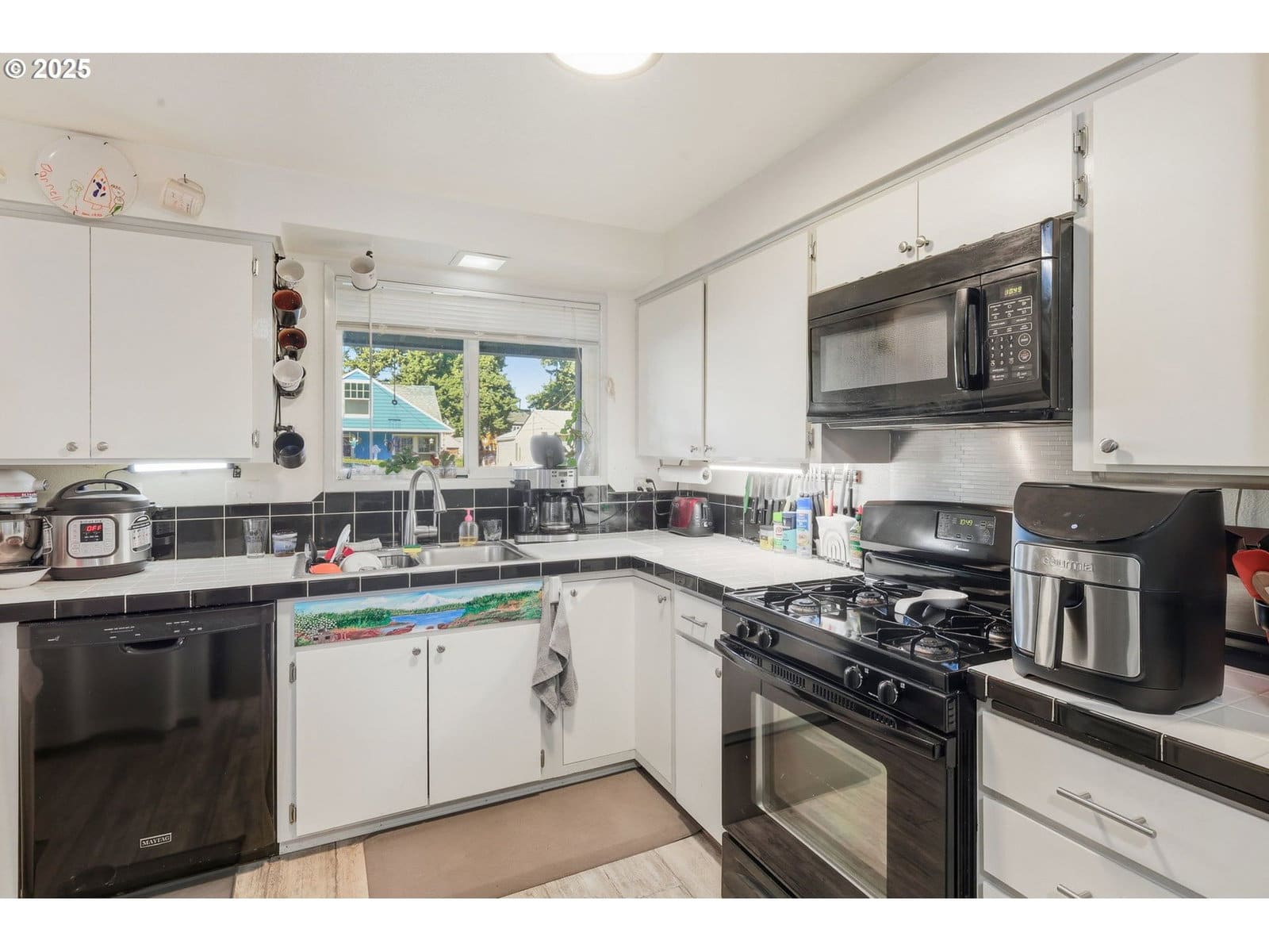 Single-level Milwaukie ranch with huge fenced yard, covered outdoor living & workshop/shed. A brand-new roof and solar panels bring peace of mind and energy efficiency. The home has been thoughtfully updated and is move-in ready, this 3-bedroom gem offers a warm, inviting vibe with the perfect blend of style, function, and outdoor living. Inside, durable LVP flooring flows through sunlit spaces designed for connection. The open living and dining areas create a natural gathering spot, while the bright kitchen with its tile counters, backsplash, and gas range makes every meal a joy. Sliding doors lead seamlessly to the backyard, where covered patios and garden beds invite you to unwind and entertain. The spacious primary bedroom offers a private escape with direct patio access perfect for a quiet morning coffee. Outside, a fully fenced yard provides space for pets and play, complemented by low-maintenance landscaping and a freestanding shed ready for hobbies or storage.