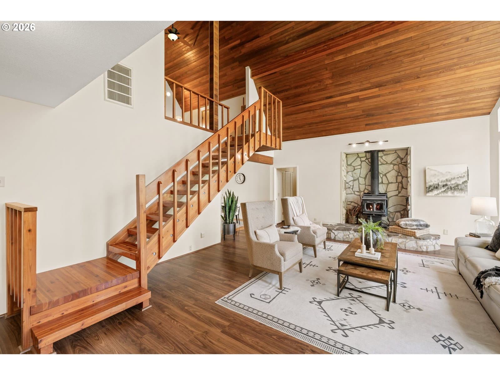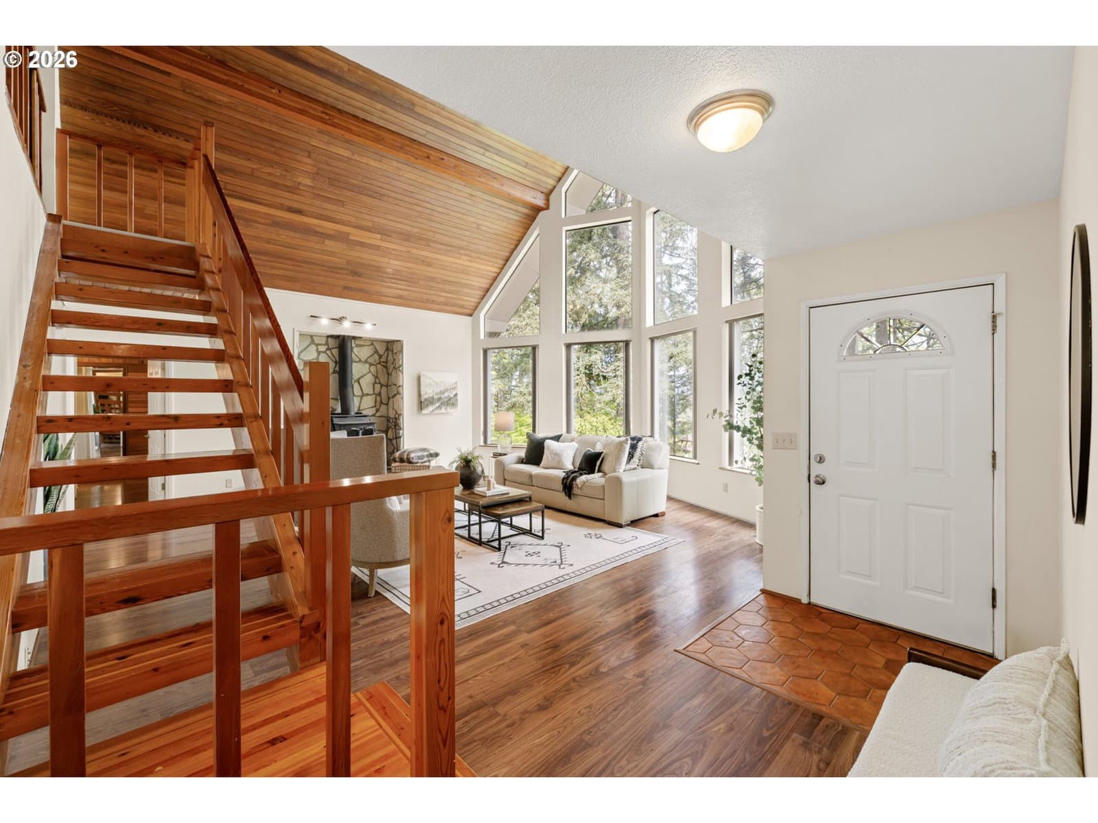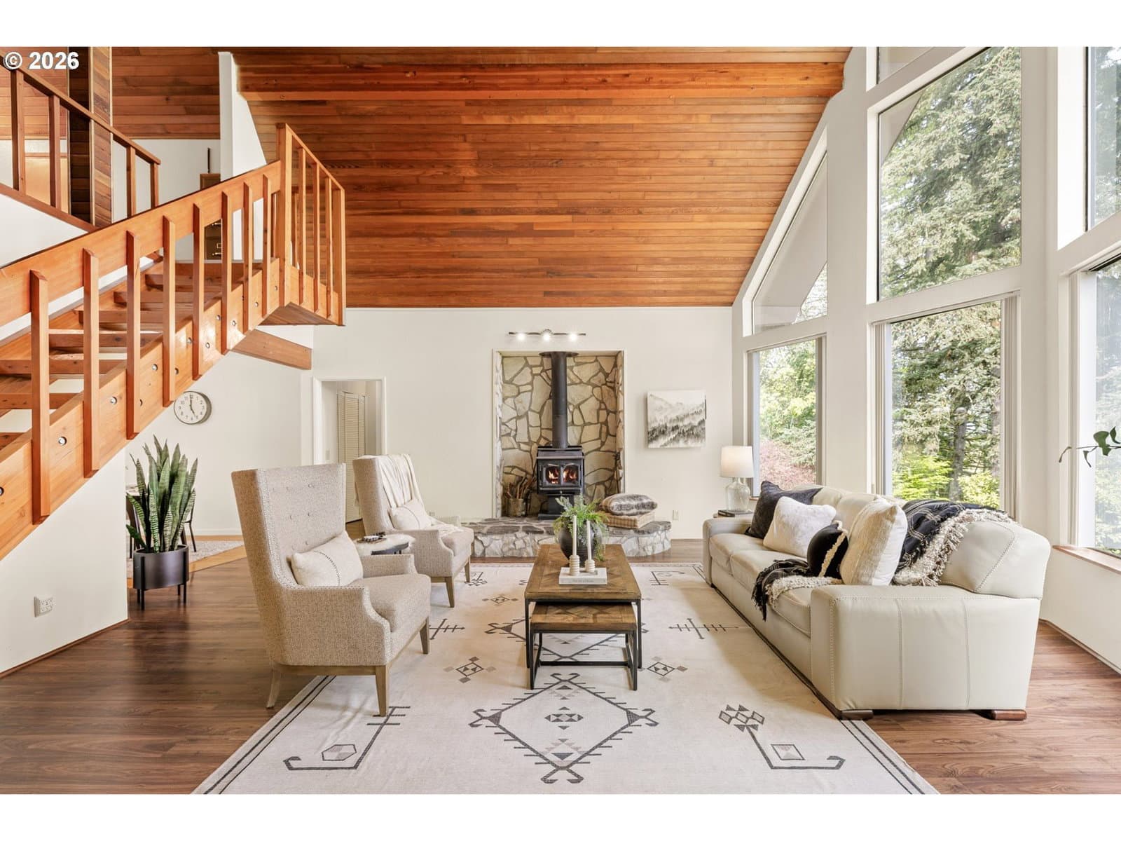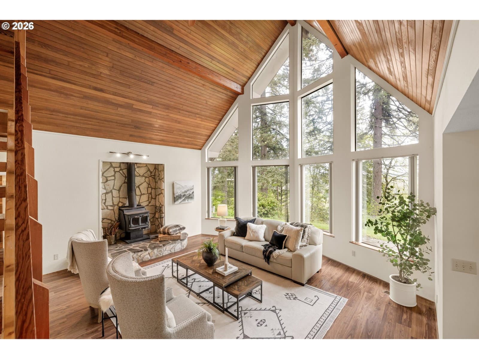 Offer Received - Offer Deadline for Sunday (4/19) at 10am. NO OPEN HOUSE HAPPENING.Tucked away on nearly 2 acres in Molalla, this private retreat offers the perfect mix of peace, seclusion, and convenience just a short drive to everyday amenities. Surrounded by nature, it’s an ideal place to unwind and enjoy country living. Inside, you’ll find soaring wood ceilings, exposed beams, and expansive windows that fill the home with natural light. A cozy sunroom overlooks the back deck and lush greenery, creating a relaxing year-round space. Major updates are already done, including a new roof (2018), propane tank (2019), well pump and piping (2020), heat pump (2021), furnace (2022), and a 22KW whole house generator (2022). Recent upgrades also include a new garage door opener, built-in oven/microwave (2023), plus brand new crawl space work and drainage (2026) for added peace of mind. The property offers incredible versatility with a workshop, garden shed with 220 power, chicken coop, woodshed, and abundant storage throughout. Enjoy your own outdoor oasis with a koi pond, terraced gardens, rock patio, and multiple decks including a private, tree-lined retreat. A rare blend of privacy, functionality, and charm perfect for those seeking space, hobbies, and a quieter lifestyle.