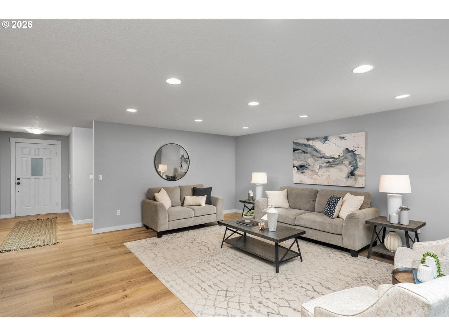 OPEN HOUSE SAT 3/14 & SUN 3/15 1-3 PM! Thoughtfully designed one-level ranch home offering approximately 1,757 square feet with four bedrooms and three full bathrooms in a comfortable, functional layout. The bright kitchen features quartz countertops, under-cabinet lighting, gas cooking, and stainless steel appliances. The dining room with built-in buffet adjoins the kitchen and family room, creating an easy flow for everyday living and entertaining, while a separate formal living room provides additional space for gatherings or quiet relaxation.The primary bedroom suite includes double closets and a private bathroom. Central air conditioning provides year-round comfort. A permitted remodel completed in 2021 offers modern updates, including the main plumbing line under the house, and the 50-year Presidential roof installed in 2015 adds long-term peace of mind.Situated on a 7,841 square foot lot, the large fully fenced backyard offers plenty of space to garden, play, or design your ideal outdoor living area. The property also includes a spacious two-car garage.Conveniently located near Nike Headquarters, transportation, shopping, and excellent schools, the home also enjoys a neighborhood path next door providing easy walk access to the elementary school. Community amenities include a pool, spa/hot tub, recreation room, and common areas. HOA includes insurance and professional management. Taxes are $7,639.14 with annual HOA dues of $714.