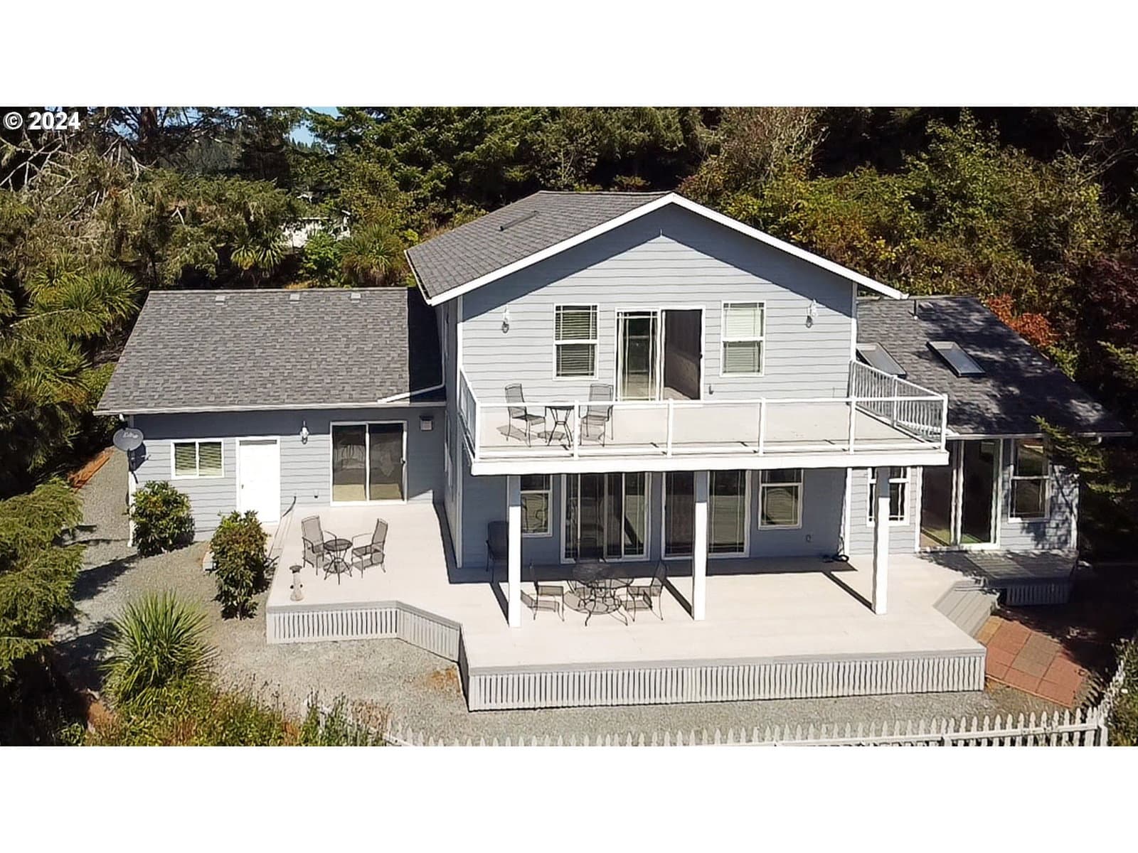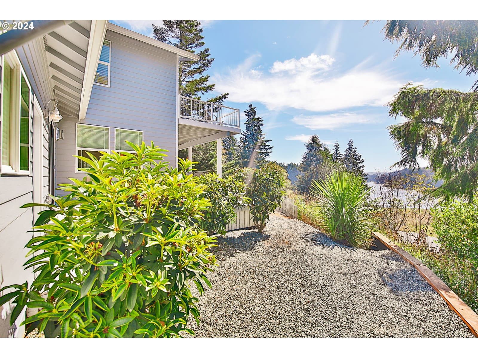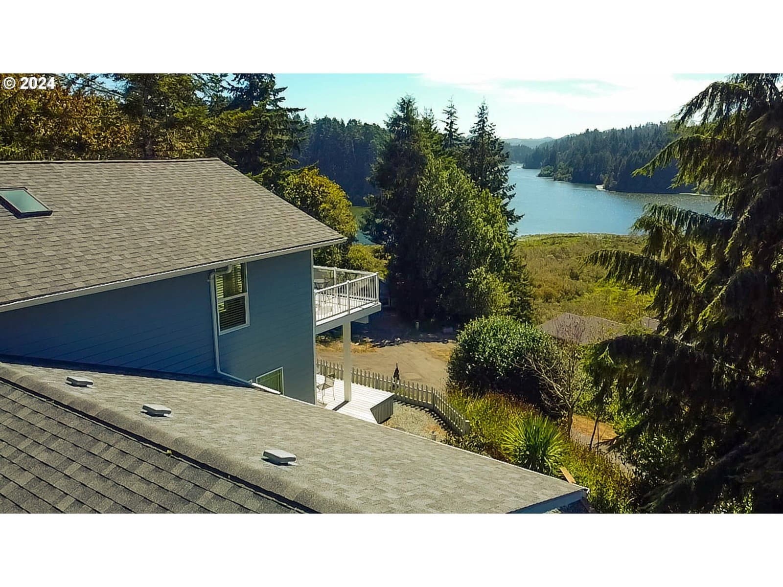 Unique Porte Cochere house perched high above Ten Mile lake built to take advantage of the huge 10 Mile lake views & Southern Sun Exposure. Professionally landscaped w/palm trees, flowers, shrubs, extensive parking, Rhino Decking, Wood Composite Siding & Double pane windows. This perfect sanctuary has Plenty of room to gather, unwind & make memories that will last longer than the forever lake views. Some Complementary features include Master suite on the main, Bonus Studio, Granite countertops, SS appliances, inlaid lighting, custom solid wood cabinetry, with a porte cochere the vehicle can be parked for passengers to depart or unload while being protected from the elements! The living room has a wall of windows w/panoramic views of the Lake & City of Lakeside. The Light filled Media room is the perfect family fun room wired for surround sound w/lots of windows & a slider to the Flex Room offering ingress/egress to the multiple outdoor entertainment areas. Enjoy Peace of Mind living in a Gated Community that is private & secluded yet so conveniently close to town. This home boasts many thought out details sure to please the most discerning Buyer. The matching 280sf outbuilding has custom built storage lockers & it many different functions such as an art studio, wood shop or gardening shed. It offers the perfect storage space away from the home for all of your miscellaneous treasures. Council Hill community is built on the shores of Ten Mile Lake located on the Southern Oregon Coast. The area has its own eco system offering Mild year around weather. Perfect for Boating, Lake/Ocean/River Fishing, Legal ATV riding & Off Roading, Dunes, Beach Combing, Hiking, Golfing, miles of Bike trails & more. Locals enjoy their quirky-quaint little town w/constant ongoing events on the Lake, the Dunes & the Coast. This home shouts lets throw the very best holiday party ever yet still manages to whisper peace & privacy every time you walk thru the door. This one is Move in Ready! Gate & Road maintenance