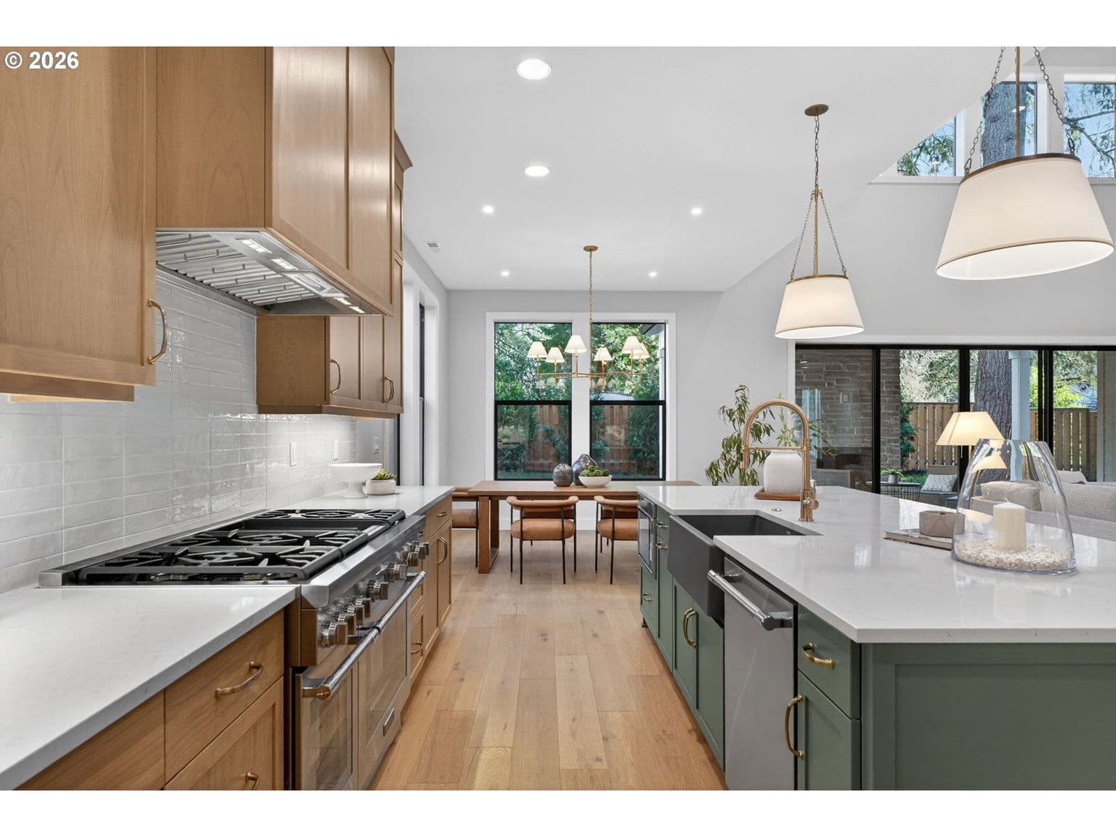 New custom home by Westwood Homes secluded and nestled on a private, charming, large lot in the Garden Home neighborhood. Thoughtful details, peaceful surroundings, and a setting that feels like a true escape - yet still close to everything you need. The great room showcases a gas fireplace with built in cabinetry and opens up to outdoor living for expansive entertainment. Covered outdoor living includes outdoor heaters and a stone fireplace. The gourmet kitchen is equipped with high-end Thermador stainless steel appliances, including a 48" gas range with cabinet hood, built-in microwave, built-in dishwasher, built-in fridge, with a large walk-in pantry with custom cabinets and plumbed for a second refrigerator. Primary suite is on the main with curb-less shower, tile flooring, access to outdoor living, and generous designer finishes, also plumbed for washer/dryer in the large walk-in closet. Bonus room upstairs has built in dry bar. JR suite upstairs has mud set shower. Additional bedrooms upstairs with walk-in closets. Three-car garage. EV/solar-ready, offering modern convenience and sustainability. Hot tub pre-wired. Generator hook up. Additional concrete parking. Driveway and landscape lighting. Fully landscaped and flat, useable, fully fenced and private rear yard. House is move in ready!