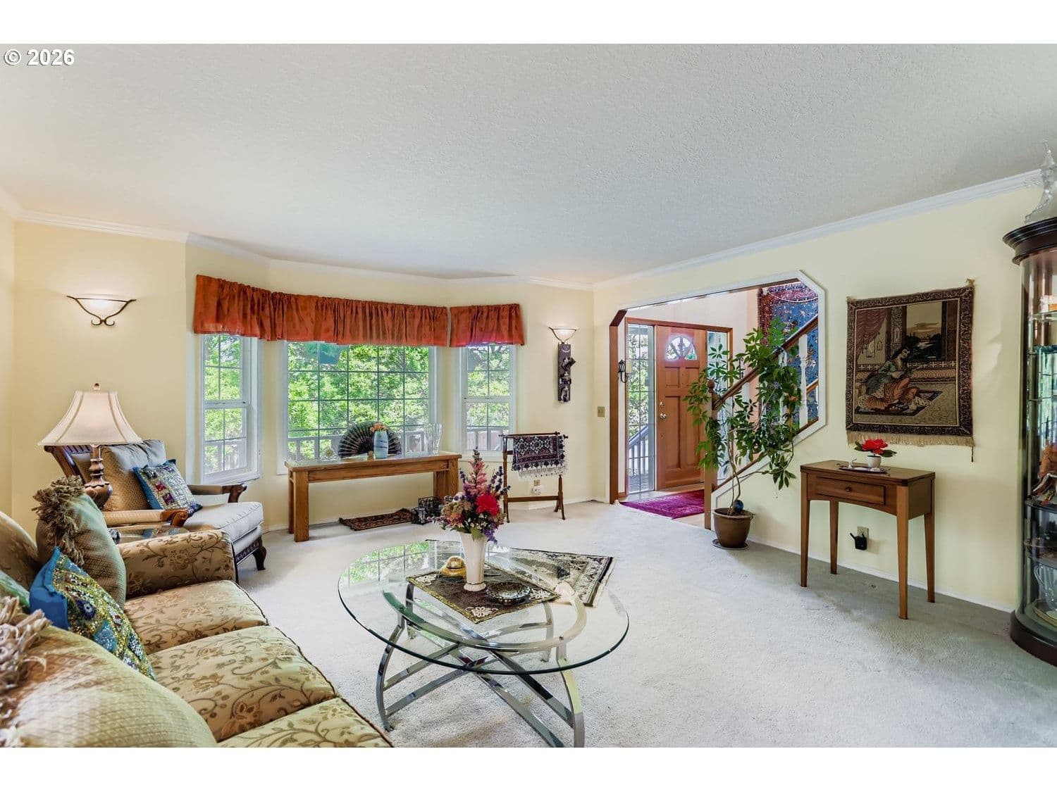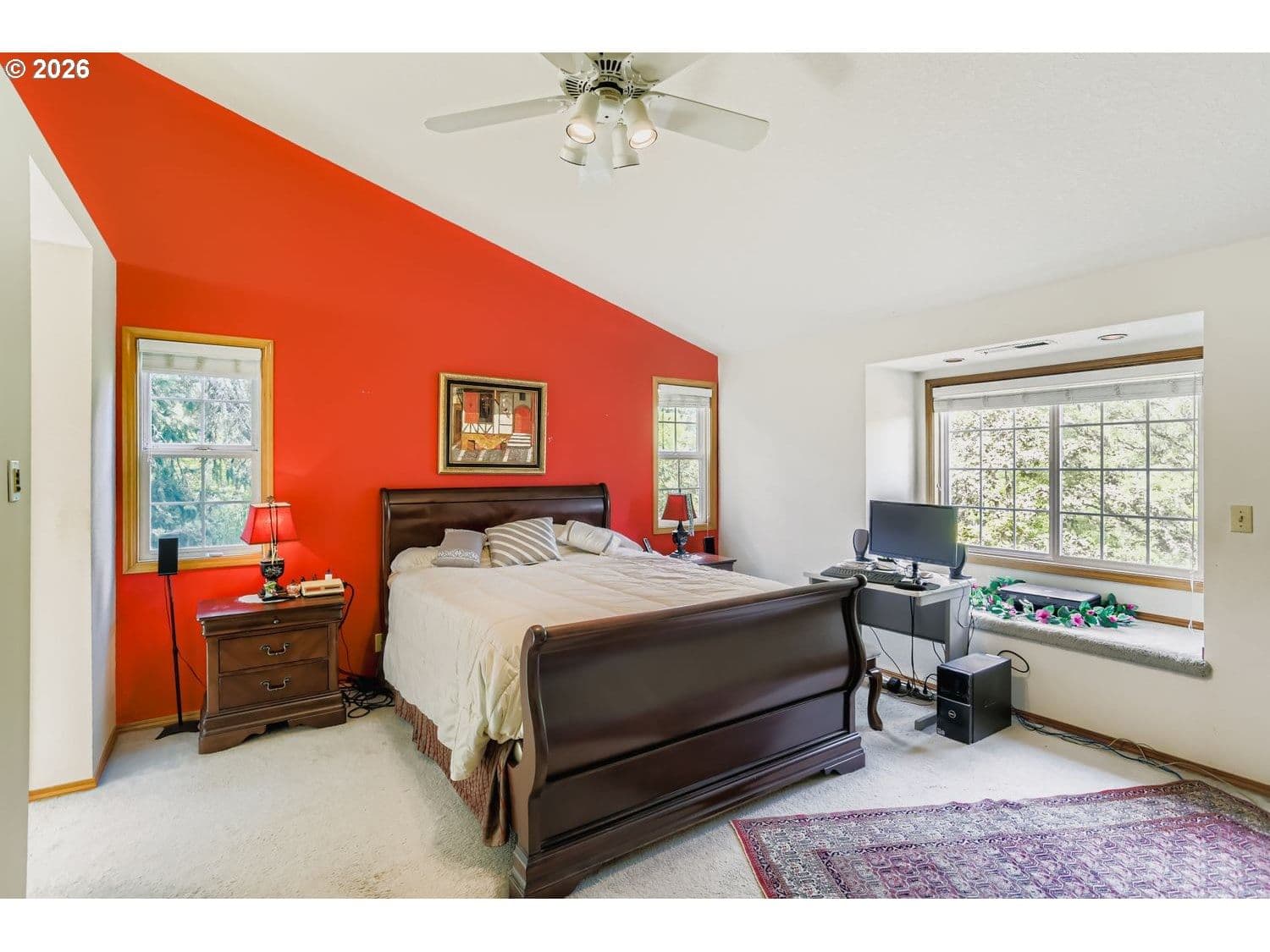 Five bedroom Sexton Mountain view home on 1/4 acre lot with automatic sprinkler system offers comfortable covered front porch. Two-story hardwood entry welcomes you inside with open staircase/railings. Spacious, bayed front room opens to generous formal dining room with coffered ceiling. Large hardwood cook-island kitchen has gas downdraft cooktop, built in oven/microwave, glass-front cabinets, wine rack, built-in desk, dishwasher, disposal, and freestanding refrigerator. Sunny eating nook overlooks private backyard and opens to spacious family room with masonry gas fireplace and a slider to covered backyard patio with privacy/sun shades. Laundry offers storage cabinets and a walk-in shower for main-floor pet/sports cleanup. Generous upstairs bedrooms, many with ceiling fans and a vaulted primary suite with double closets, one walk-in, large dual vanity, skylight, soaking tub, walk-in shower, and gorgeous seasonal valley views. Newer Presidential roof, recent exterior paint, new attic insulation and vents, and brand new 95% furnace and AC, and water heater. Seller will replace all carpets prior to close of escrow or provide a credit in lieu of carpet replacement with acceptable offer. This spacious home is mere steps to several neighborhood parks. Make it your own, and add all your personal touches as you go!