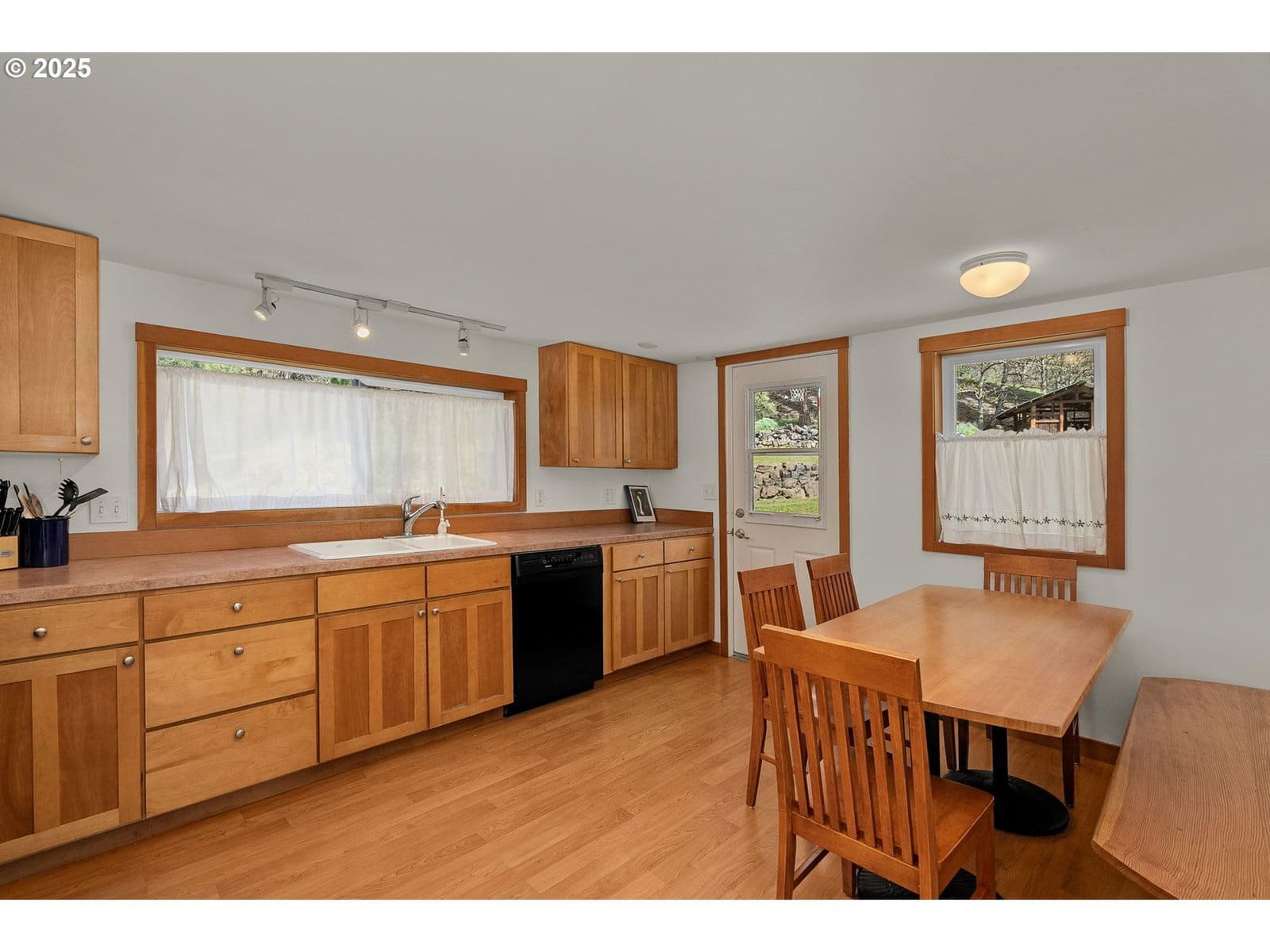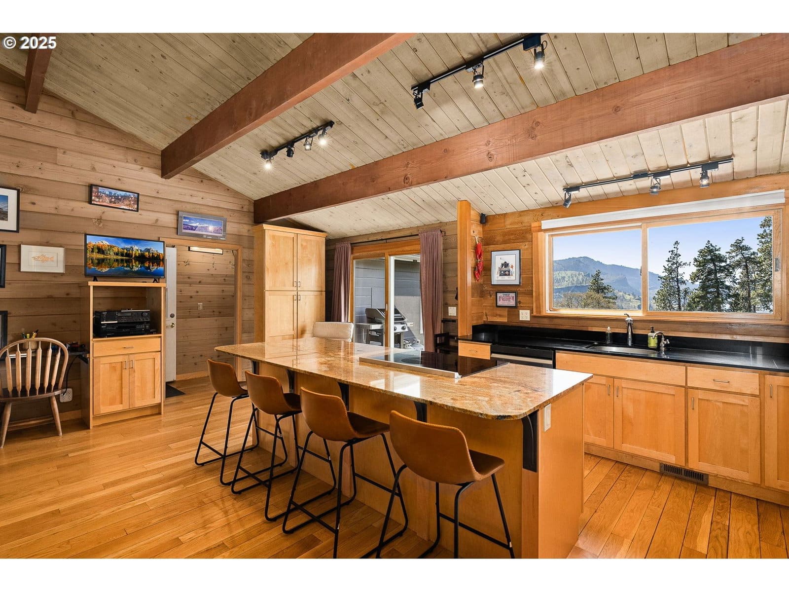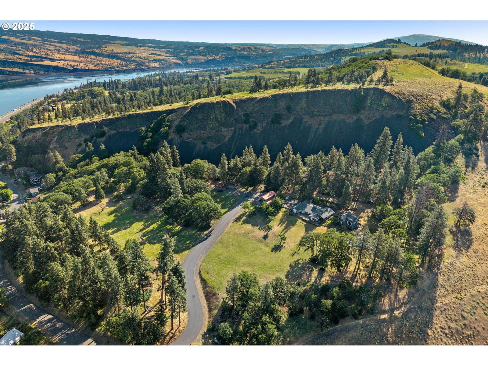 A dream retreat in the heart of the Columbia River Gorge! Set on ~7.64 peaceful acres, this one-of-a-kind property captures breathtaking panoramic views of the Columbia River, surrounded by blooming cherry trees, mature evergreens, green pastures and rolling hills. Enjoy the feeling of a private escape while being just minutes from downtown Mosier. Located within city limits and connected to public utilities, this property offers the perfect balance countryside charm with modern amenities. The main home is 4 bedrooms, 2 baths across ~2,278 square feet of comfortable single level, living space. The home showcases timeless mid-century modern character with cedar siding, vaulted, beamed ceilings, hardwood floors and charming built ins. A dramatic floor-to-ceiling stone fireplace anchors the living room, creating a warm and inviting focal point. The kitchen opens to an expansive deck, ideal for entertaining or relaxing while taking in the stunning Columbia River views. Designed for hosting and multi-use living, the property includes an in-ground pool with a cozy 1bed, 1bath pool house, perfect for guests or private retreats. A detached barn garage features an upstairs 1-bedroom apartment with its own deck to enjoy the views, currently rented and ideal for extended family, supplemental income or living quarters for on-site property manager or grounds keeper. The barn also includes a full bathroom and flexible studio space, well-suited for a home office or creative flex space. Plus ample storage for cars, equipment and gear. Find peace, privacy, and room to roam, all within close proximity to the town of Mosier at this exceptional, rare property.