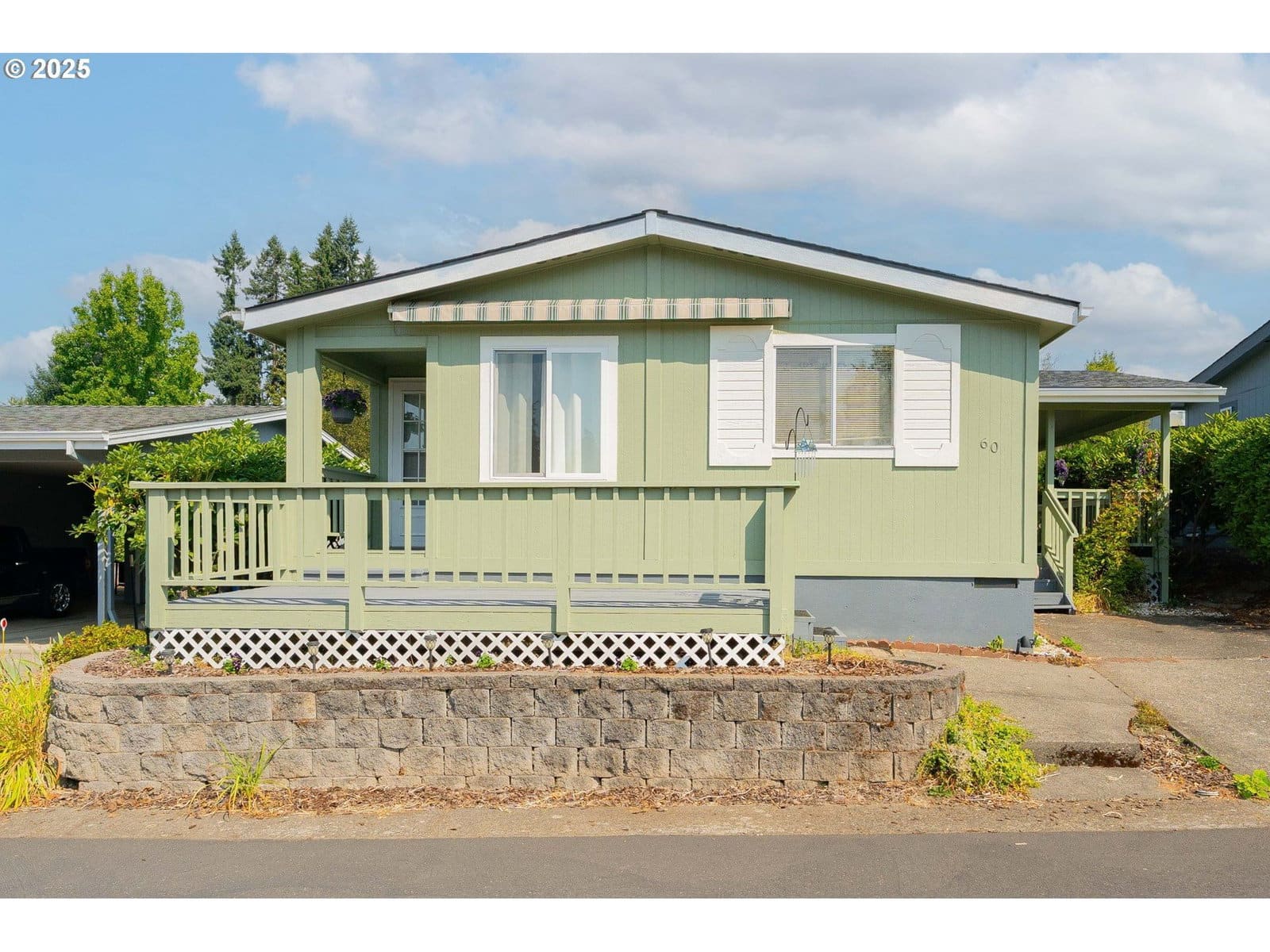 Welcome to your next chapter! This thoughtfully updated 1,412 sq ft, 3-bedroom, 2-bathroom double-wide in the desirable Oak Haven 55+ manufactured home community offers comfort and convenience with too many updates to list. Abundant natural light pours in through vaulted ceilings, three sun tunnels, a skylight, sliding glass doors, and two new front windows. Motorized blinds on the living room windows and sliding doors add modern ease. The chic, functional kitchen boasts plentiful cabinetry/storage, ample counter space, and stainless-steel appliances, including a New dishwasher, and newer free-standing range, built-in microwave, and refrigerator — all appliances included! The large owner’s suite is vaulted, includes a walk-in closet, and private en-suite with new flooring and even more storage space. Oversized laundry room includes built-ins – and washer and dryer are included! For added peace of mind, the exterior was just repainted last year (2024) and the interior freshly painted in 2023. Outdoor living shines with not one but two decks: a spacious covered side deck with a ceiling fan for added comfort, mature landscaping for added privacy, and wired lighting for evening enjoyment. Other thoughtful updates include an electric doorbell, a new security screen door, and an outdoor motorized retractable awning for added shade and comfort. Plus, all carpets freshly cleaned for move-in readiness. Additional highlights include a 2-car covered carport, large driveway, and a heated, powered workshop - ideal for projects and hobbies. Monthly park lease is $795/month. Schedule your showing today!