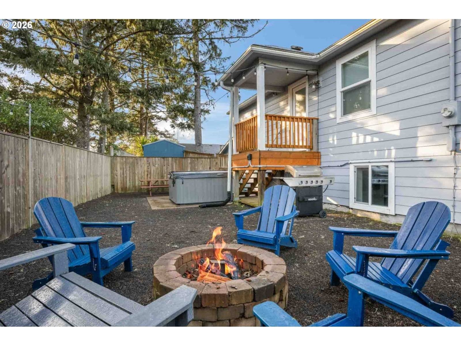Ocean view coastal retreat with investment potential! Located in a highly desirable second-row neighborhood directly across from the beach with deeded access, this beautifully updated 4 bed / 2 bath turn-key home comes fully furnished with coastal-inspired décor, offering the perfect blend of beach lifestyle and income opportunity. The open floor plan features a new kitchen, updated baths, walk-in shower, media room, and the convenience of two laundry areas. Step through double doors to an expansive front deck with ocean views, perfect for morning coffee or sunset gatherings. Outside, enjoy the fully landscaped, low-maintenance fenced yard with hot tub and fire pit—ideal after long walks on Rockaway’s famous 7-mile beach just half a block away. Additional features include an attached garage and room for everyone. Exceptional investment opportunity with a transferrable Tillamook County short-term rental permit, currently professionally managed by iTrip Vacations and nets approx. $25,000 - $27,000 annually. Turn-key and fully furnished with style, this home is ready to enjoy as a beach getaway, full-time residence, or income property.