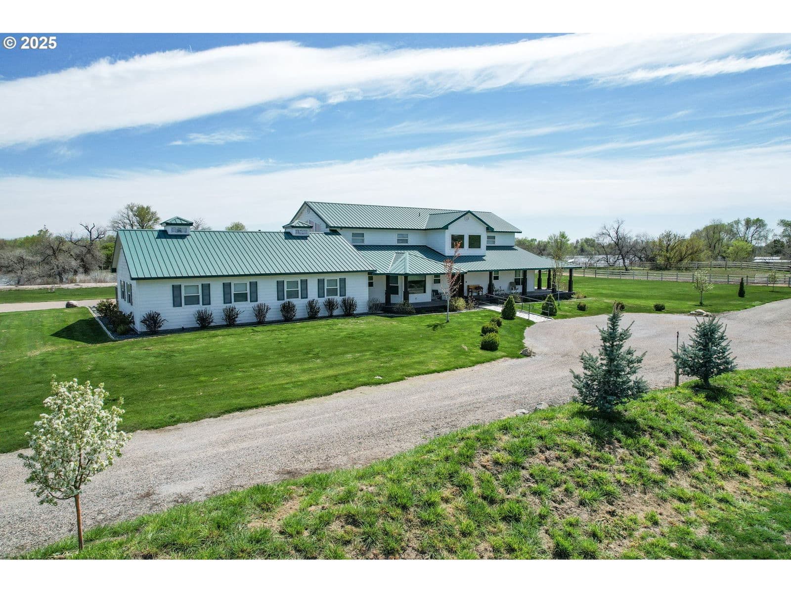 369days on marketRiverfront, On the Snake River at the Oregon-Idaho border! This 3,710± SF 4-bed, 4-bath two-story home features hardwood floors, including 3 bedrooms on the main level, one of which is a master suite. The upstairs includes a second master suite, and a library and office. Property also offers a horse corral and a 5,000± SF shop with two apartments—one serving as an office with a full bathroom, the other a finished 1,600± SF unit with a bedroom, bath, kitchen, and living area. 7± irrigated, cultivatable acres with automatic sprinklers and a 1,000± gal pump station—currently growing alfalfa and some wheat. Partial fencing with pole & post near the electric gate with wood beams. Farm, equestrian, recreation, and hunting. Just 1 hour from Boise. Owner carry considered—Make Offer! BTVAD